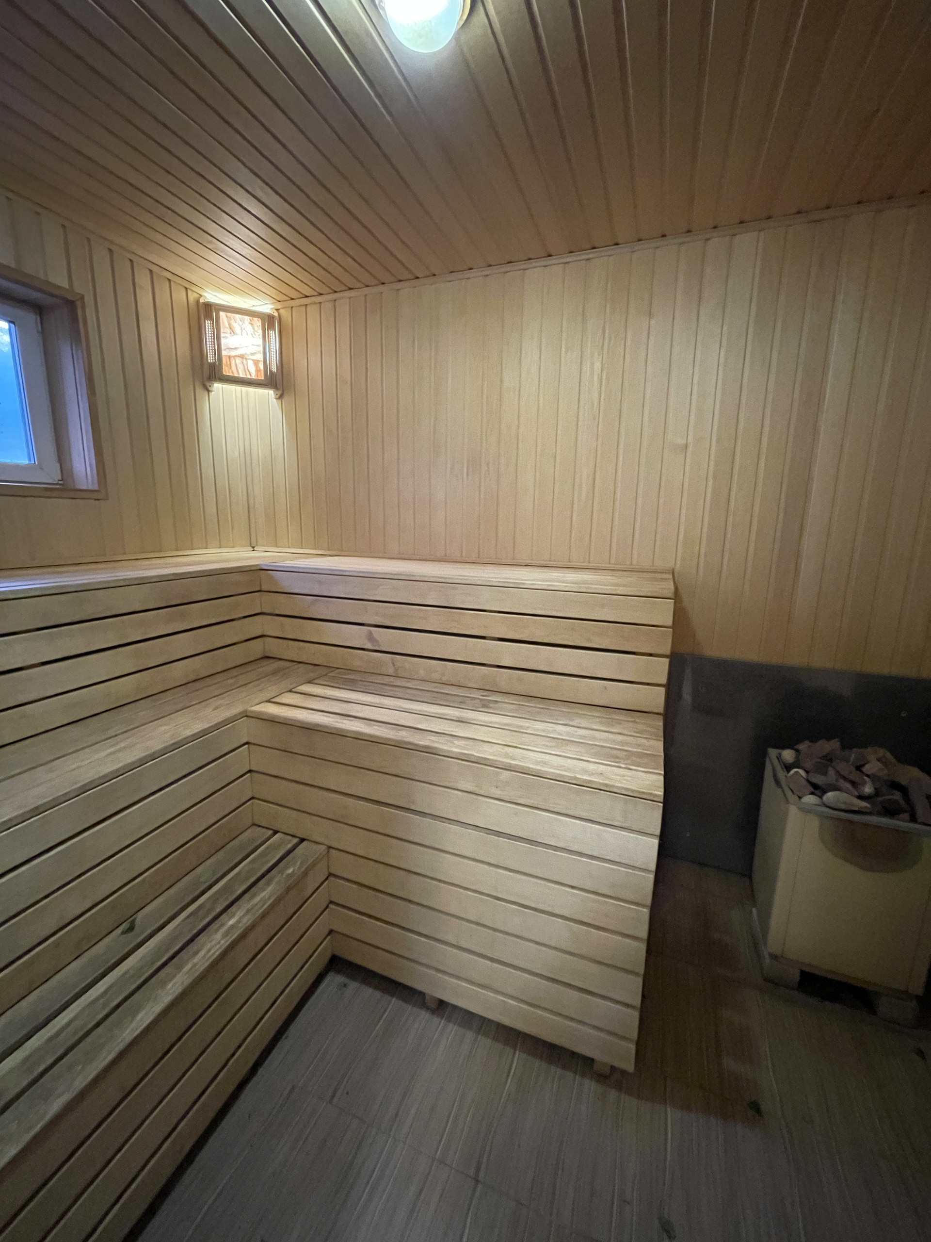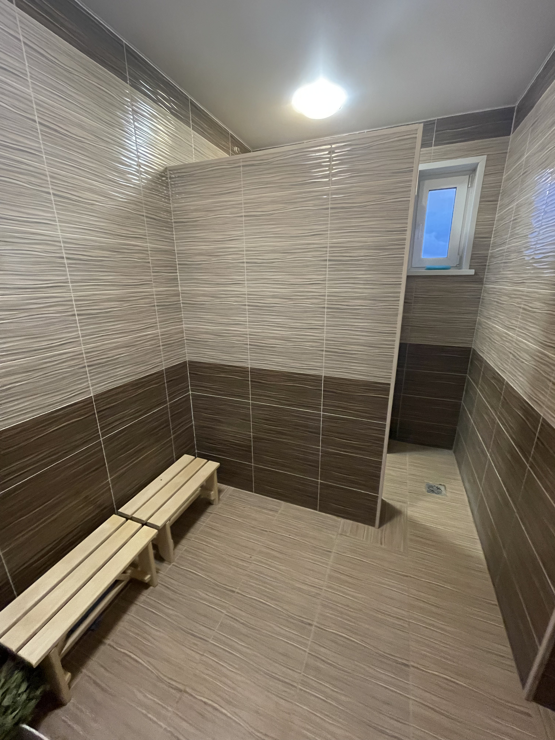 В гостевом доме находится просторный коридор, кухня, две комнаты (15 м2 и 20 м2), санузел, душевая и сауна. Везде теплый пол, что позволяет ходить босиком без страха заболеть.
