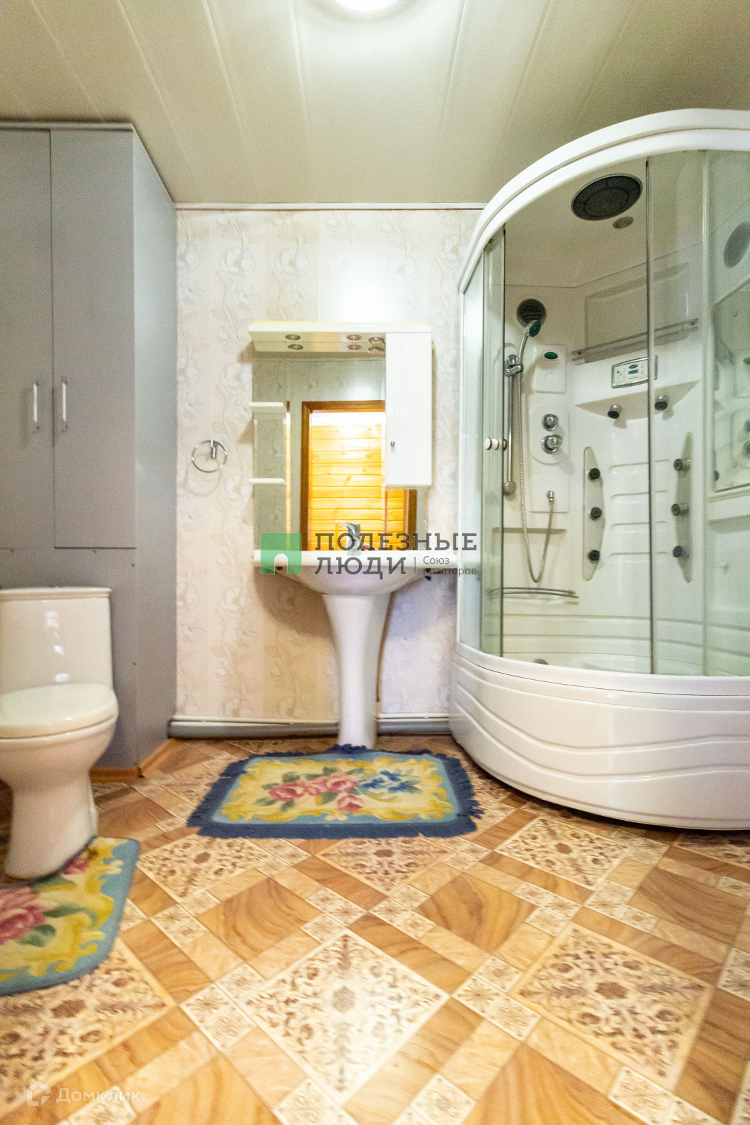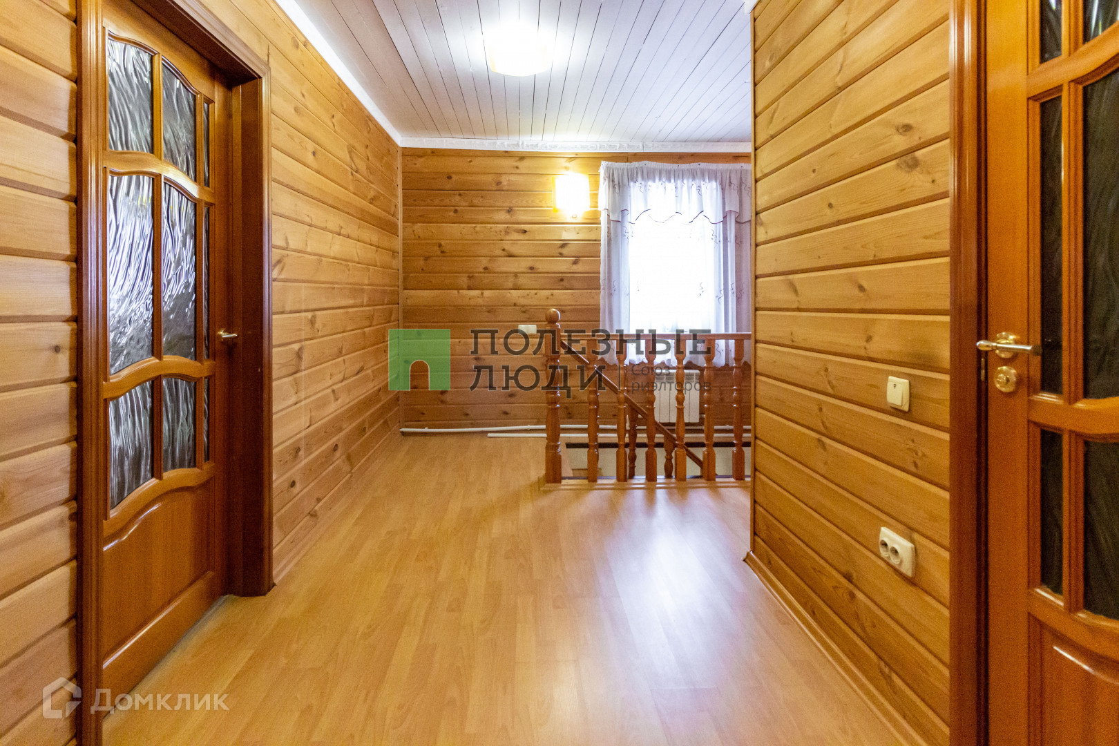 В доме на 1 этаже расположены: кухня (16 м2), кабинет (16м2), зал (33м2), туалетная комната, гардеробная комната, коридор, в котором встроены шкафы. На 2ом этаже расположены 3 спальные комнаты (22м2), (27м2), (17м2), санузел с душевой кабинкой (6 м2), гардероб, коридор. На 1ом этаже натяжные потолки, на 2-ом – потолочная доска, полы – ламинат.