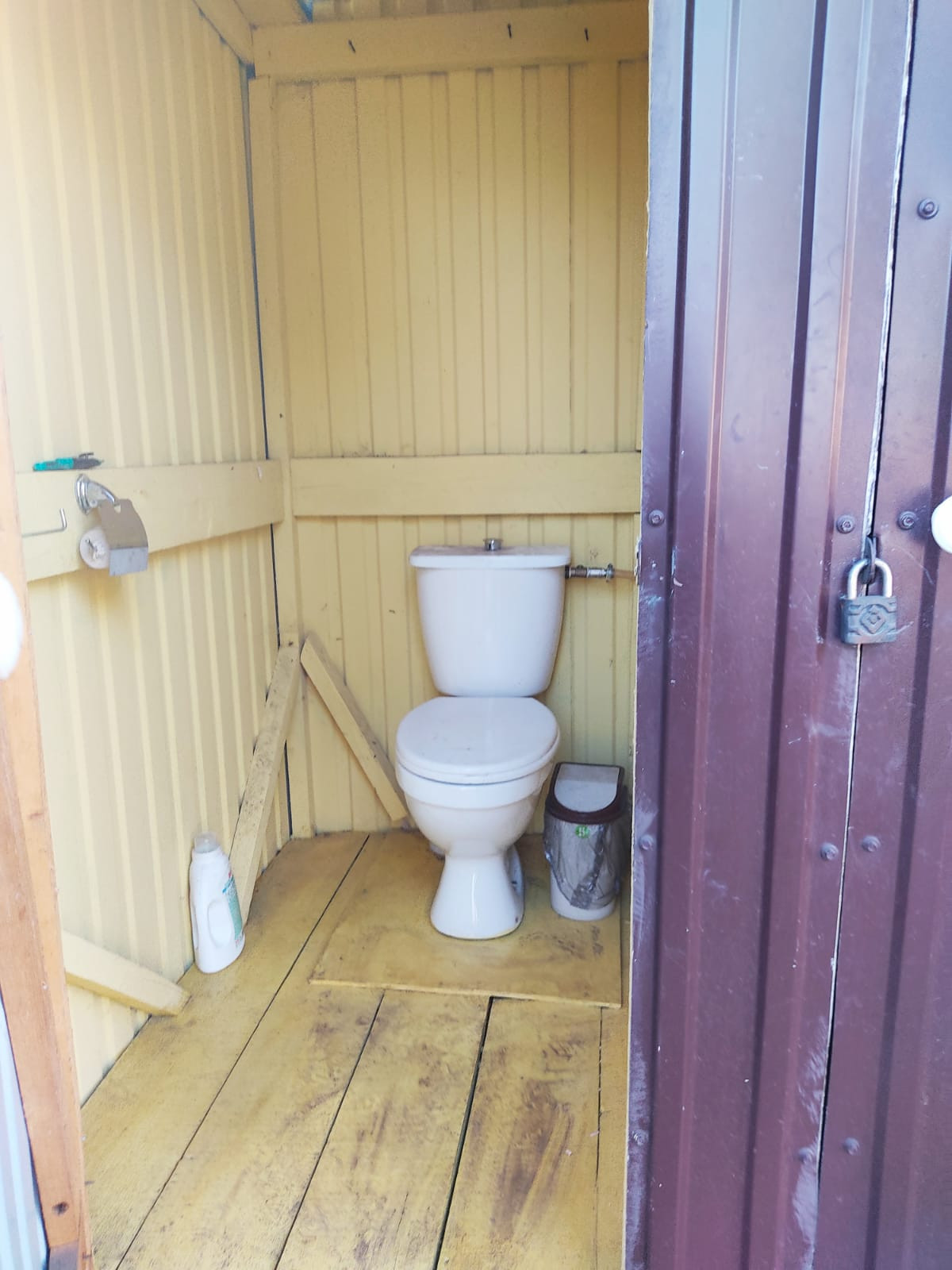 В хозблоке имеется унитаз со смывом.
