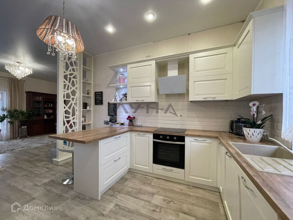 О доме. Материал стен газобетон, облицовка керамическим кирпичом Баварская кладка. Крыша- мягкая кровля. Высота потолков 3,1м. По всему дому теплые полы/радиаторы. Установлен газовый котел ARISTON, есть и элетрический Protherm, бойлер на 100 литров Zanussi. Напольное покрытие керамогранит/линолеум высокого класса прочности. Натяжные потолки, где в дополнение к основным люстрам имеются точечные светильники. Качественные межкомнатные двери. Кухонный гарнитур Астра, варочная поверхность и духовой шкаф Electrolux, посудомоечная машина Boch.