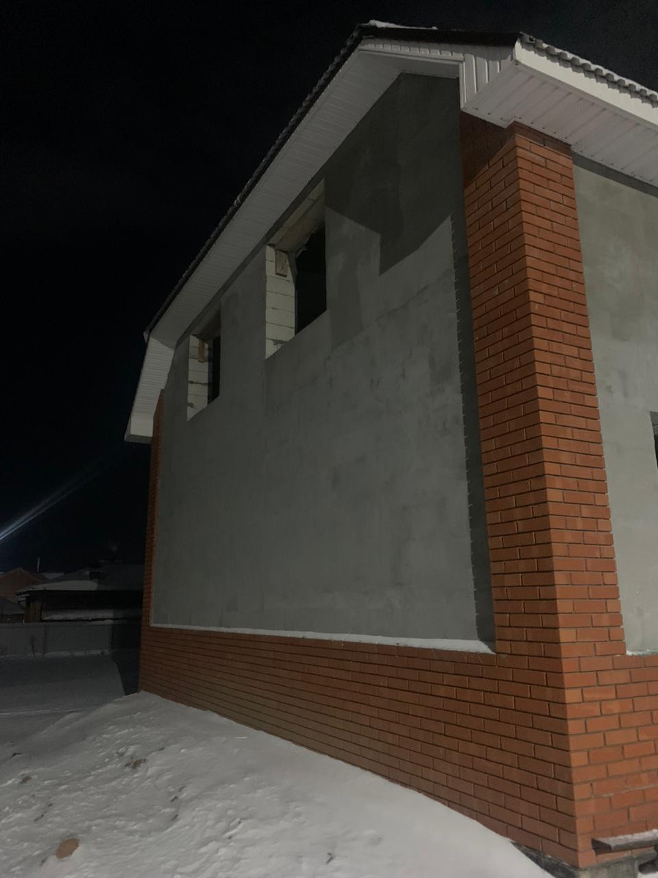 Коробка дома из газобетона 400 мм. т.м. БИКТОН, кровля с утеплением, перегородки есть, полы бетонные с утеплением, лестница – металлокаркас, электричество заведено в дом, установлен септик, разводка канализации, столбы и забор со всех сторон.