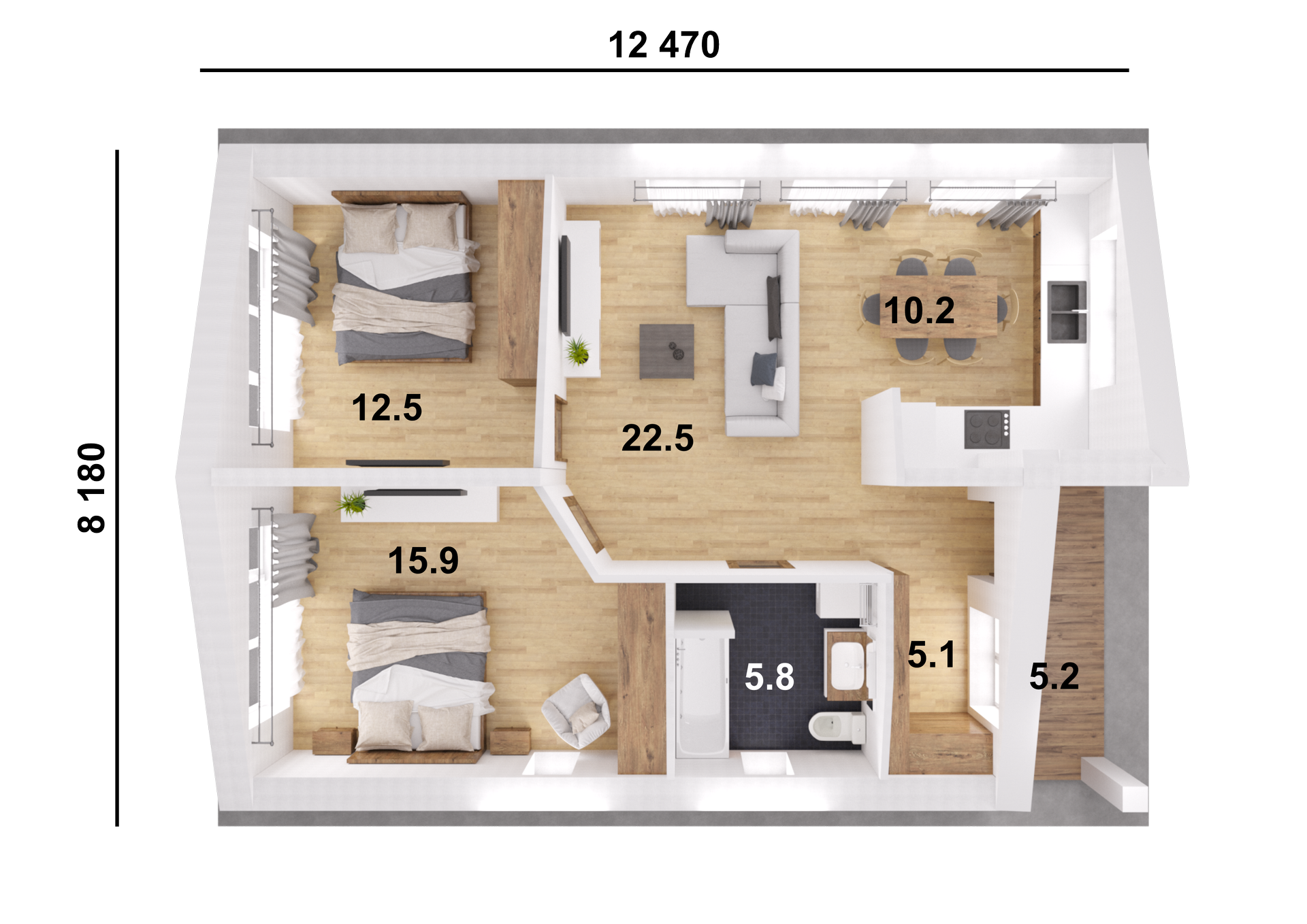 Жилая площадь 77.2 м2