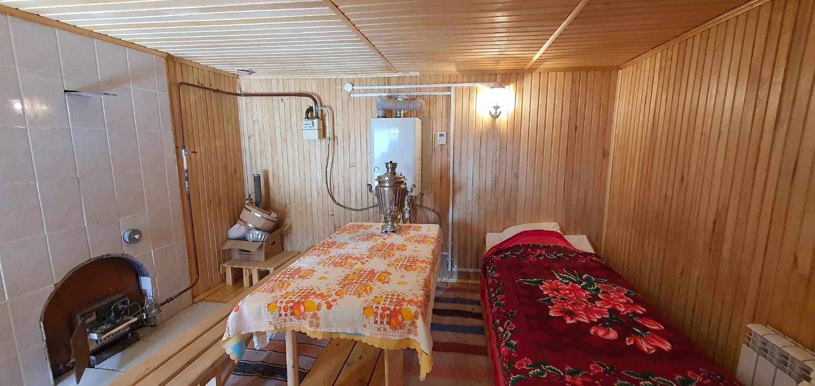 На участке рассположен свой банный комплекс с газовым отоплением, с зоной отдыха и места барбекю.