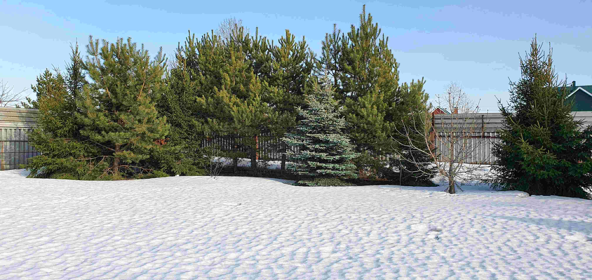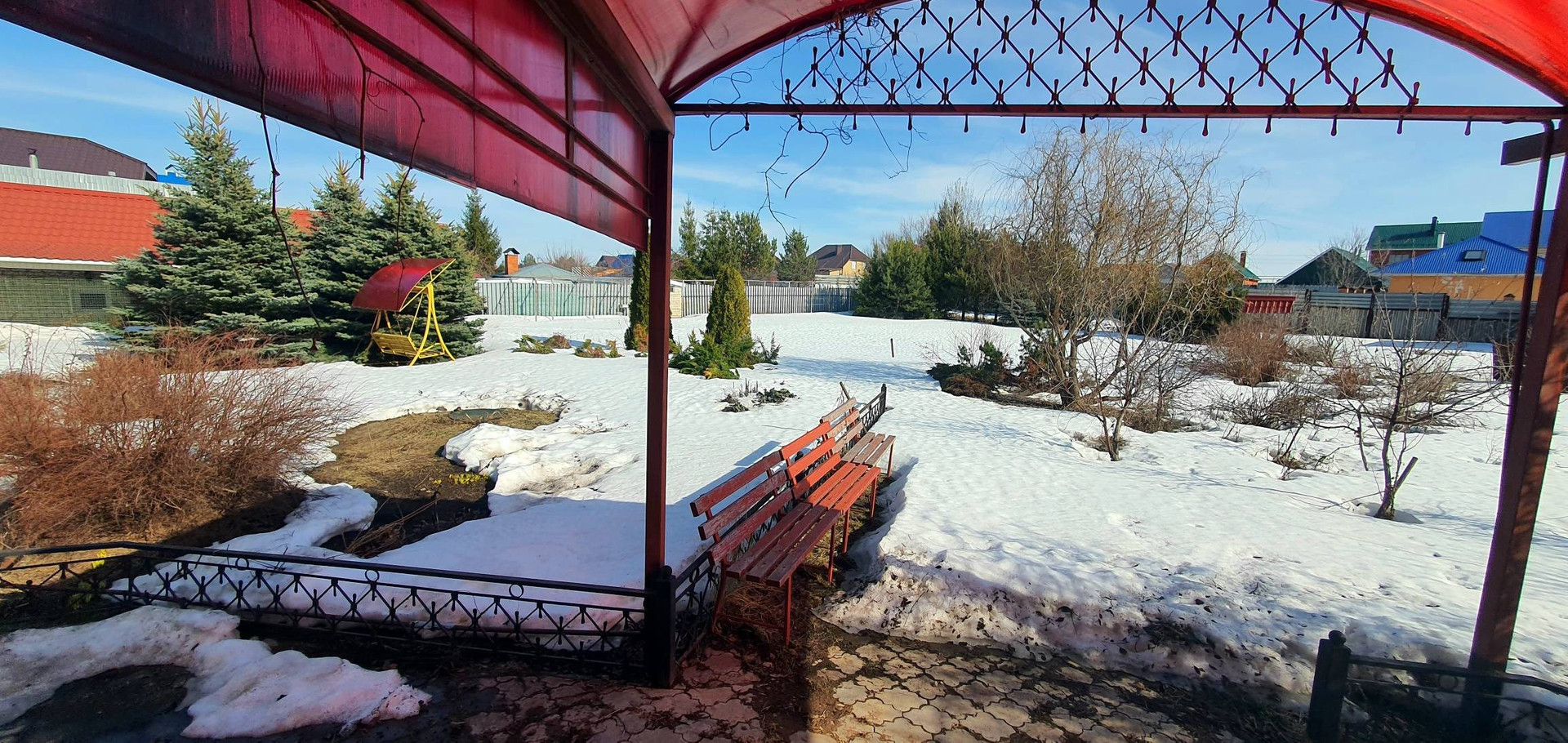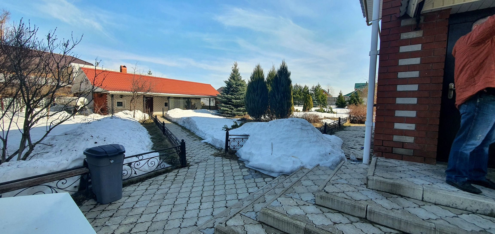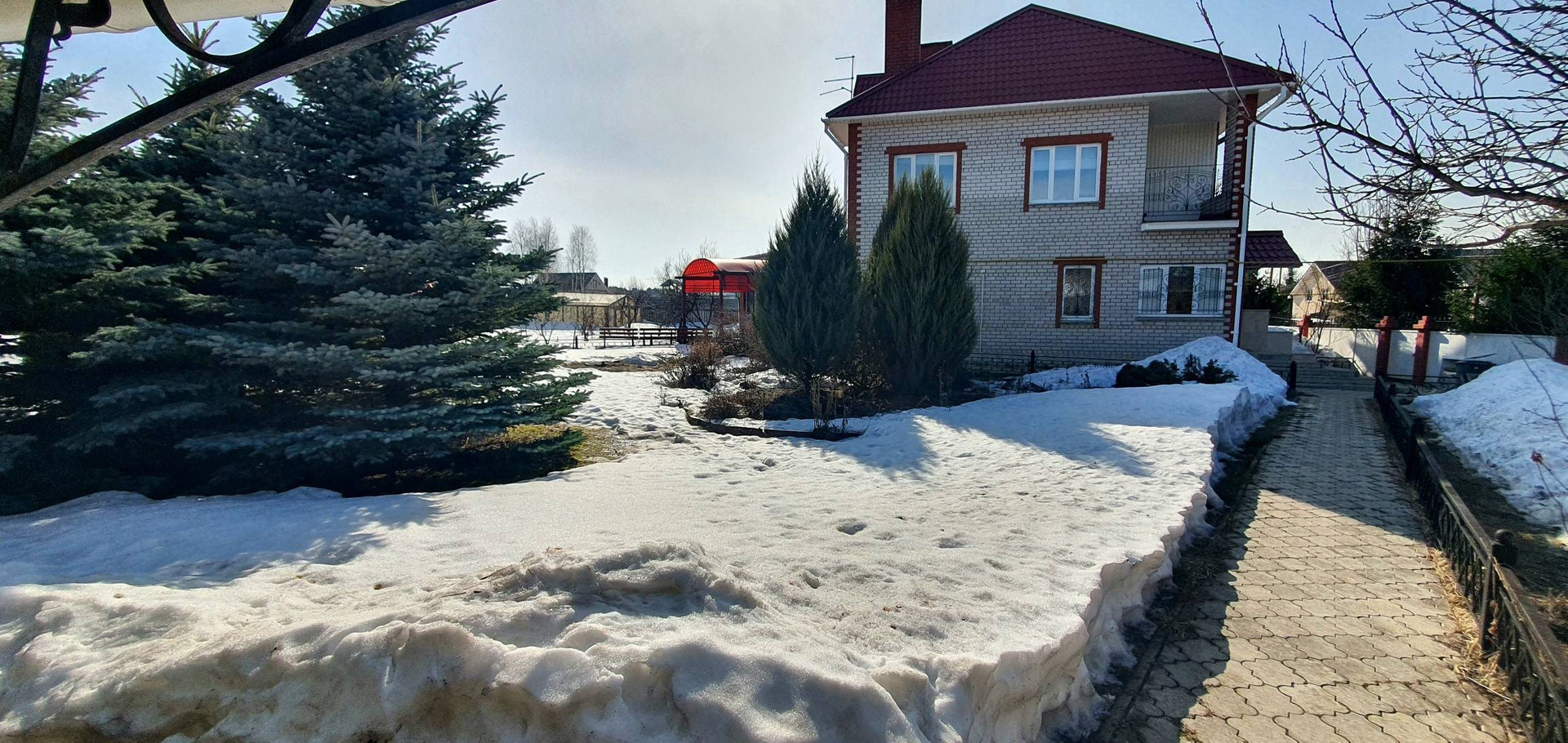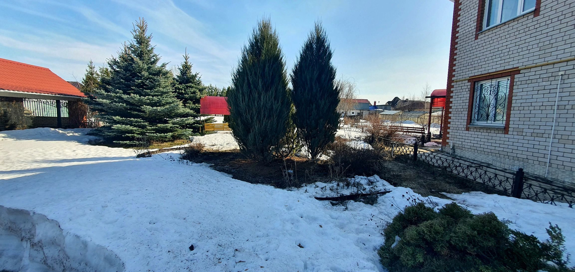 На территории дома растут голубые ели, туи, сосны, есть свои грибы