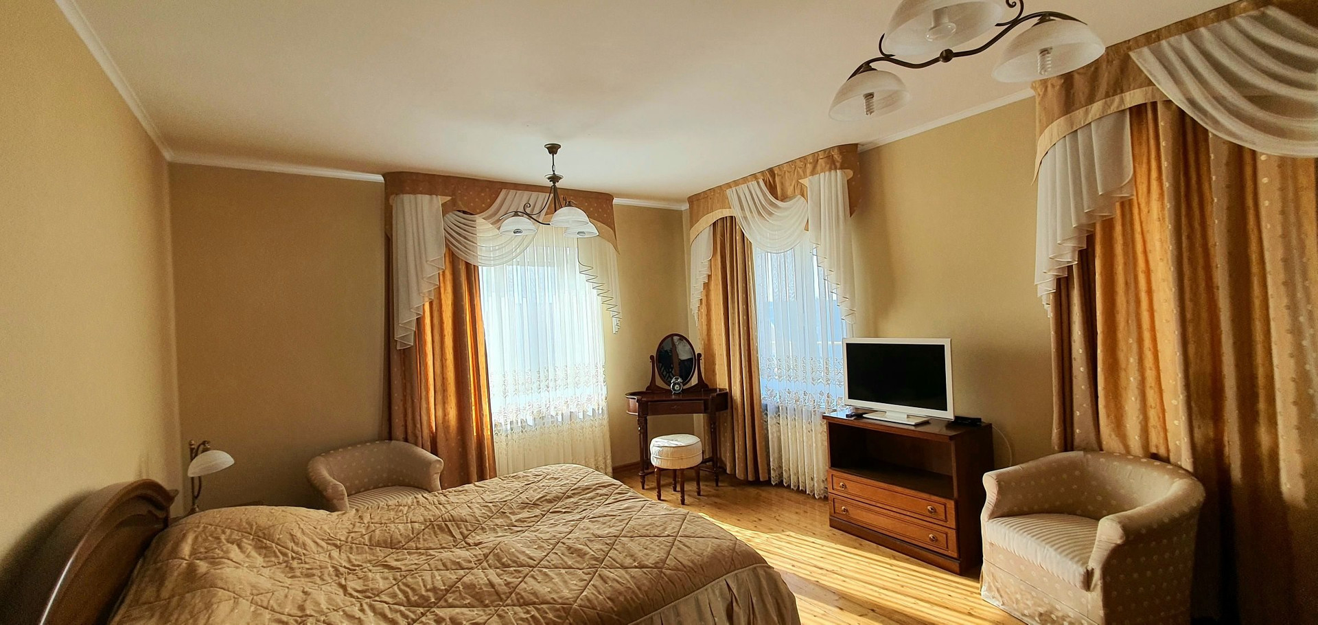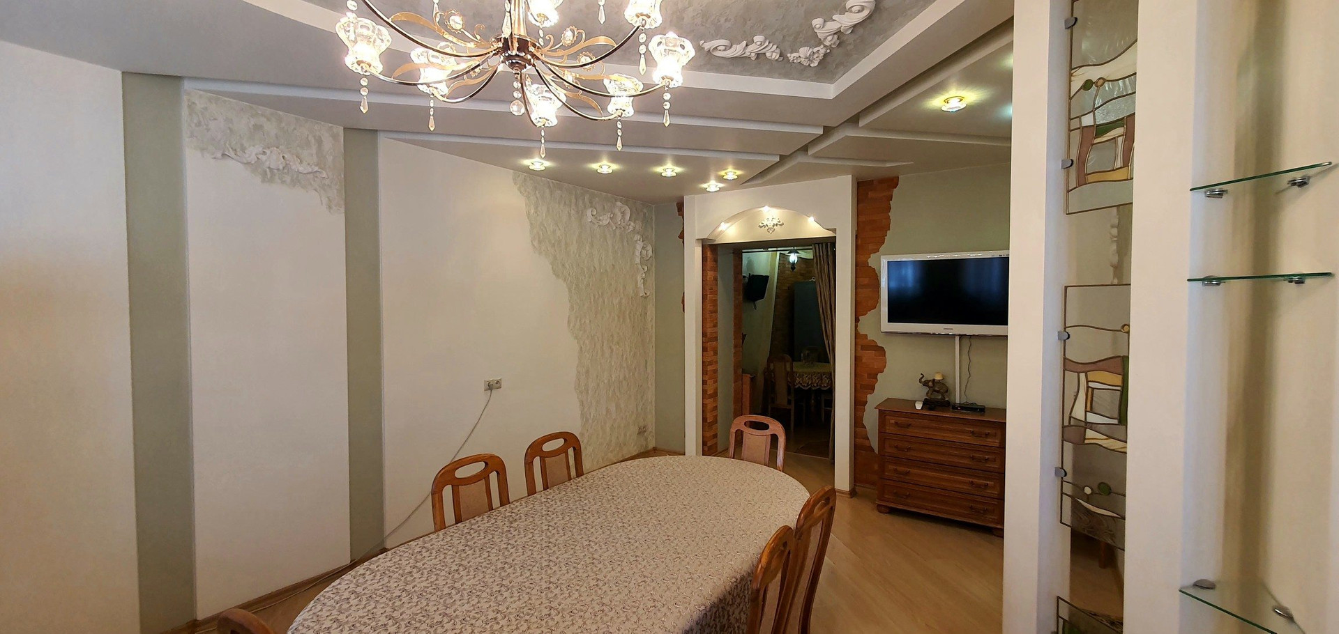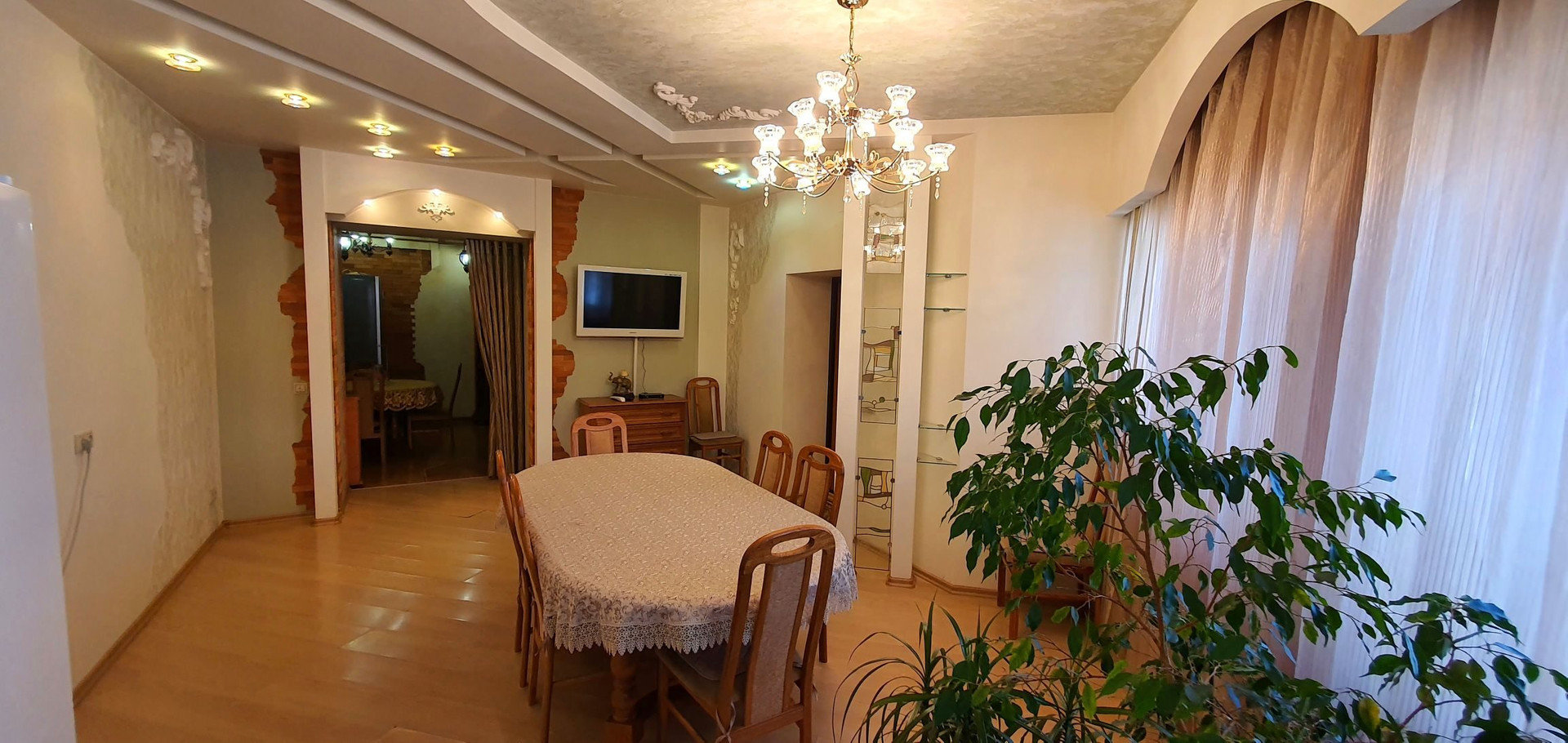 На стенах венецианская штукатурка, двухуровневые потолки.  Стены очень толстые!