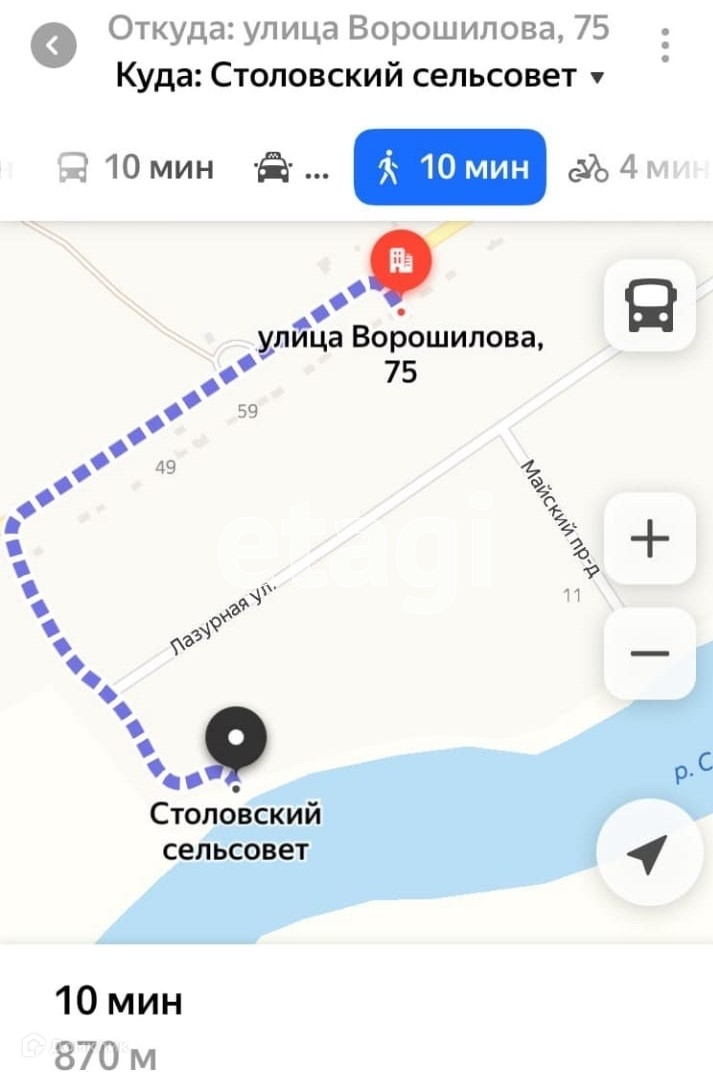 До речки 5 минут пешком идти.
