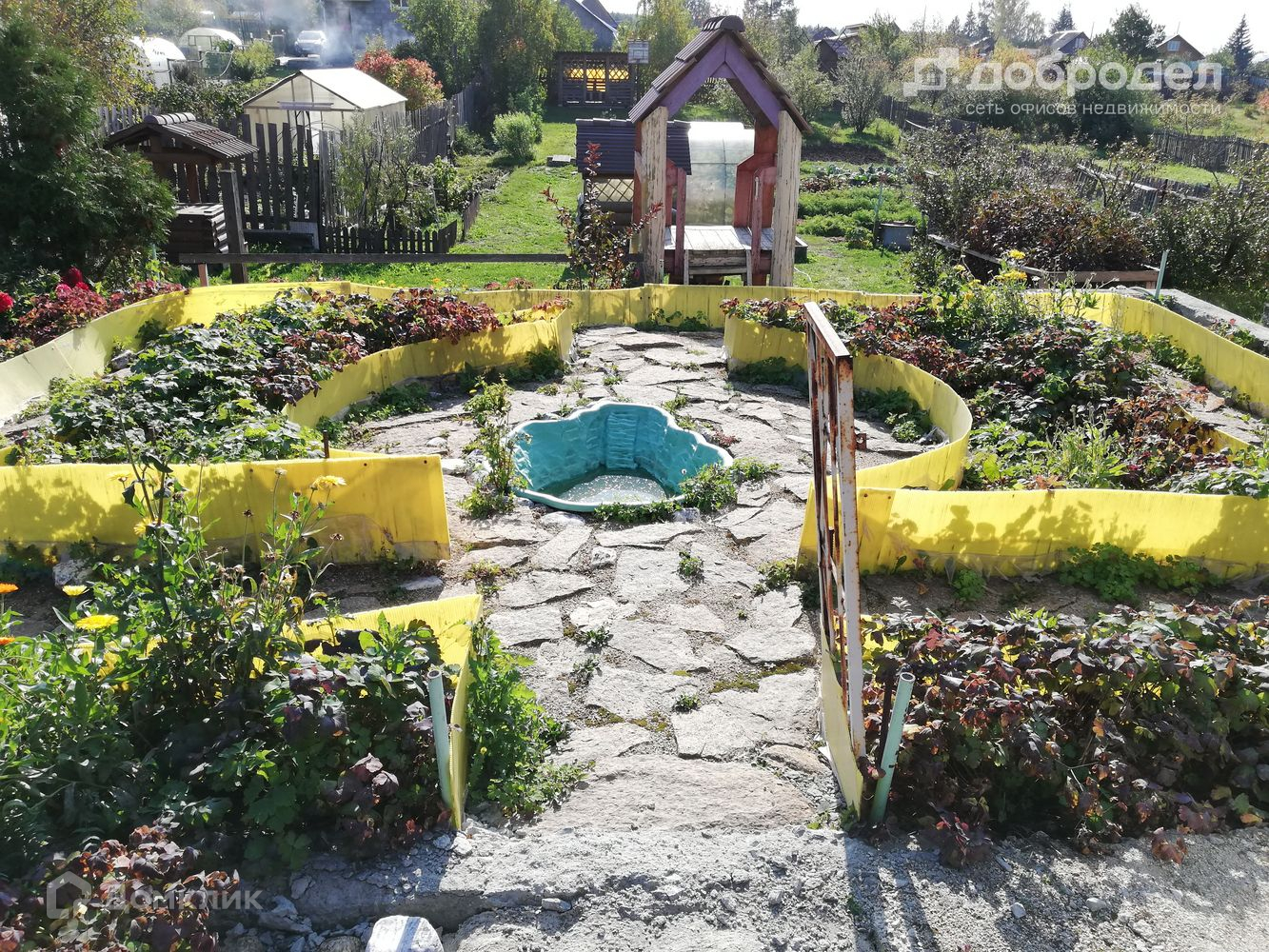 Участок: разработанный и ухоженный, имеются березы, дубы, плодовые деревья и кустарники, грядки, 2 теплицы, овощная яма, 1 уединенная беседка со спортивной зоной и лужайкой, 1 беседка с мангальной зоной из красного кирпича, навес для дров и инвентаря, колодец и декоративная мельница. Так же есть детская площадка (домик, песочница, горка и качели). Вдоль участка проходит устье маленького ручейка.