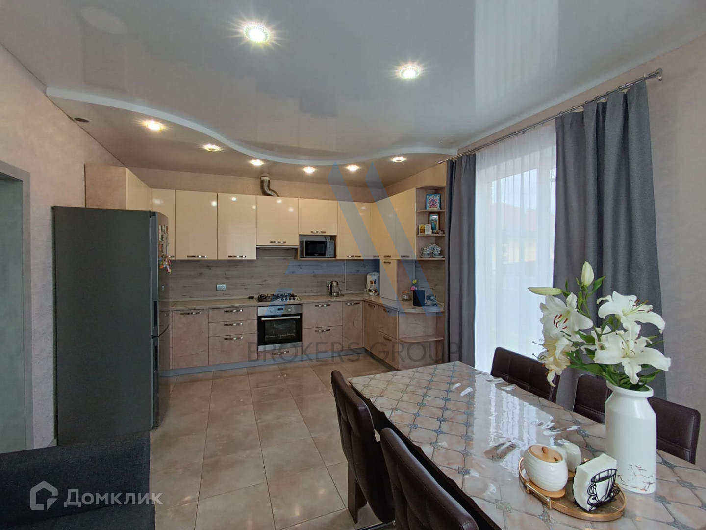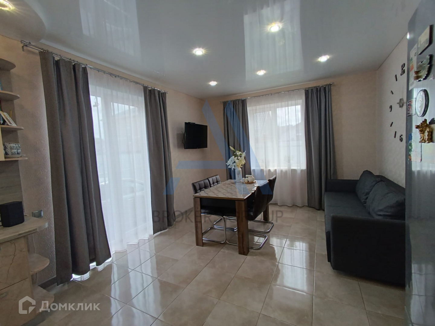 Потолки натяжные, окна пластиковые.