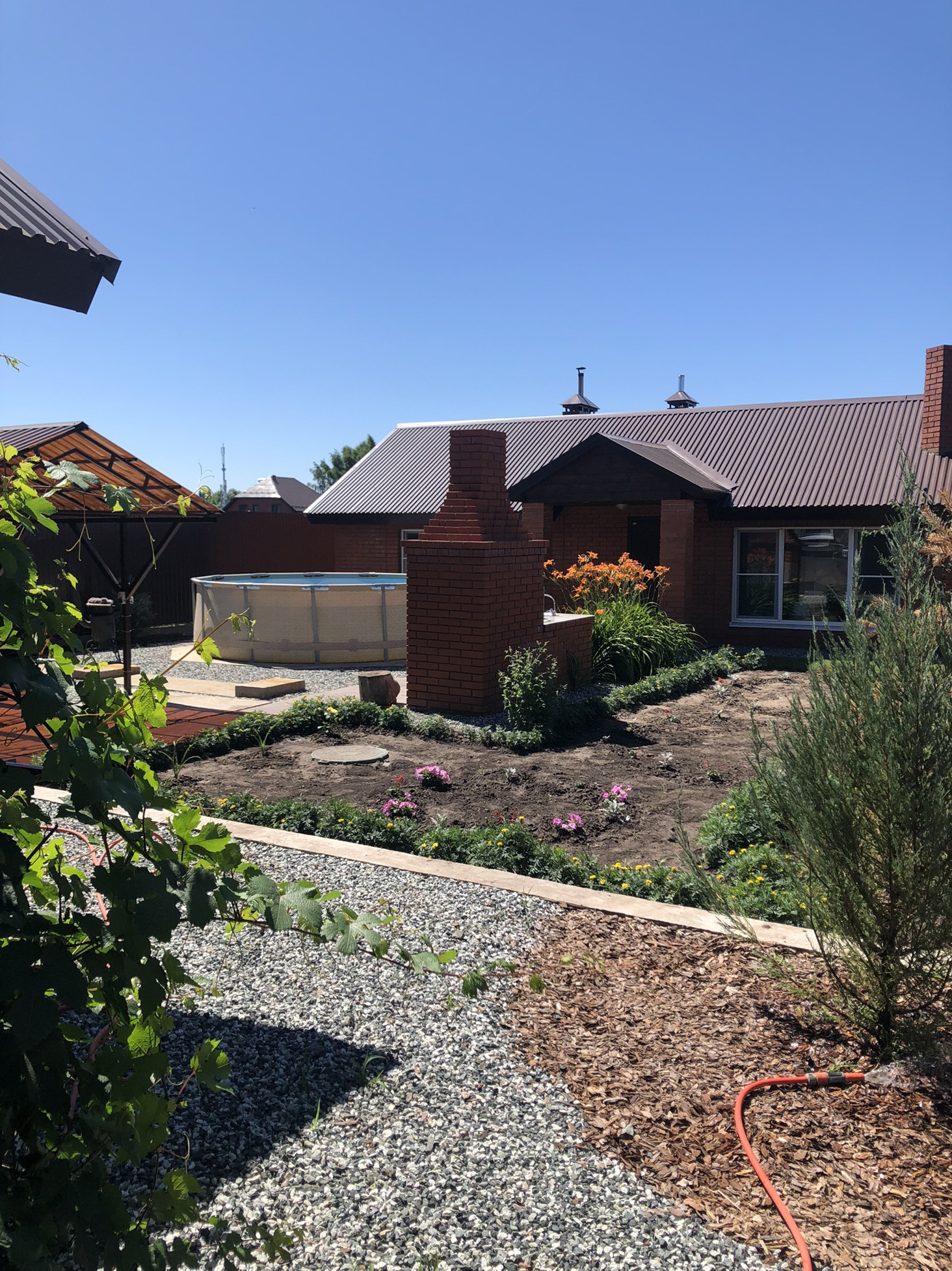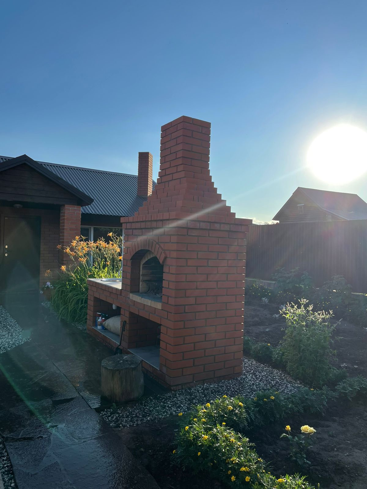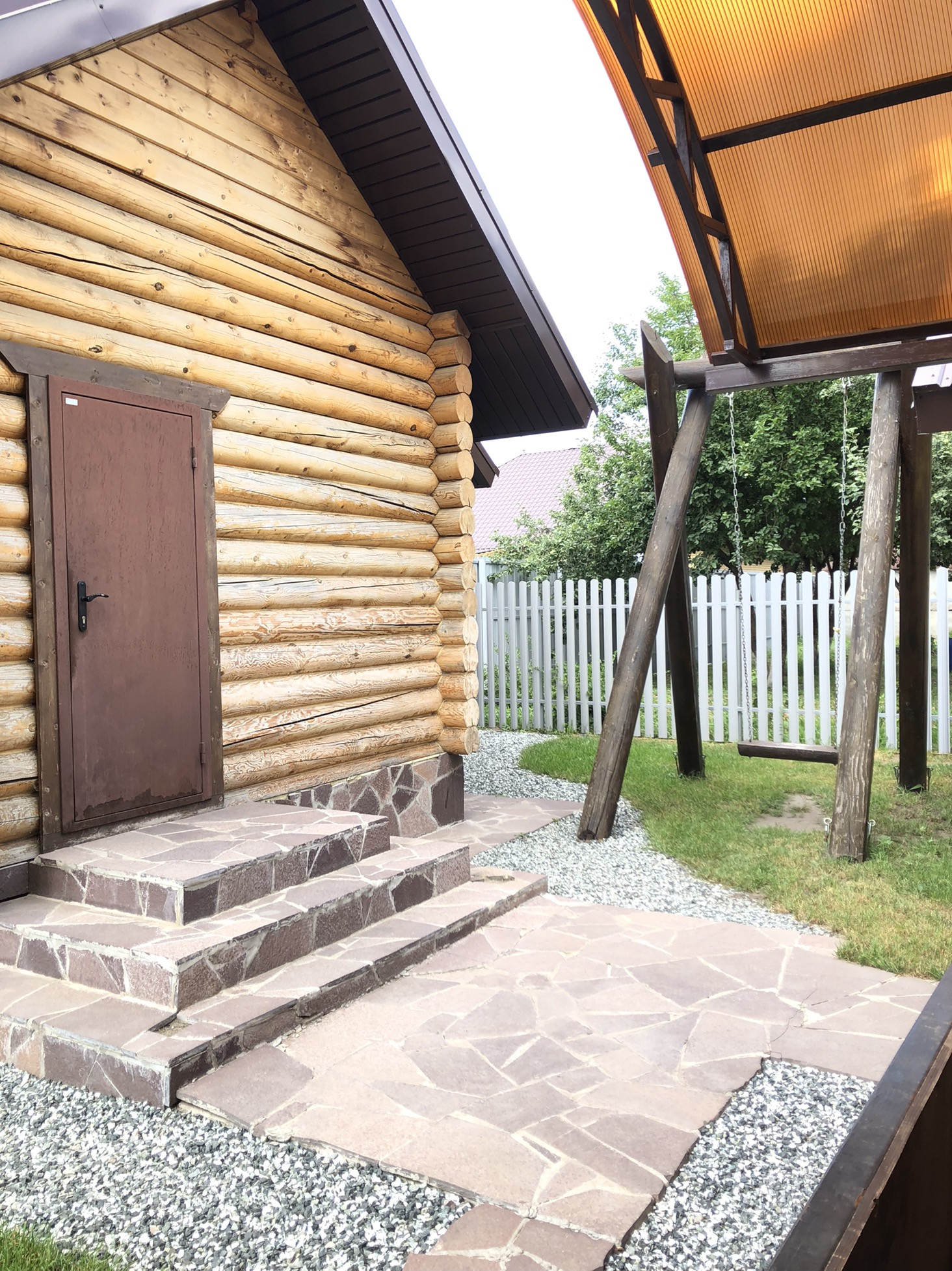 Одноэтажный дом из оцилиндрованного бревна : 2 спальни , зал , кухня ( кирпичная часть дома) , котельная , санузел , веранда , комната для хранения. Тёплые полы. Баня 55 квадратов : комната отдыха с камином , санузел , теплые полы. моечная ,парилка . Во дворе мангальная зона с камином , койка беседка-навес. Кирпичный гараж на одну машину . Так же имеется навес для автомобиля.