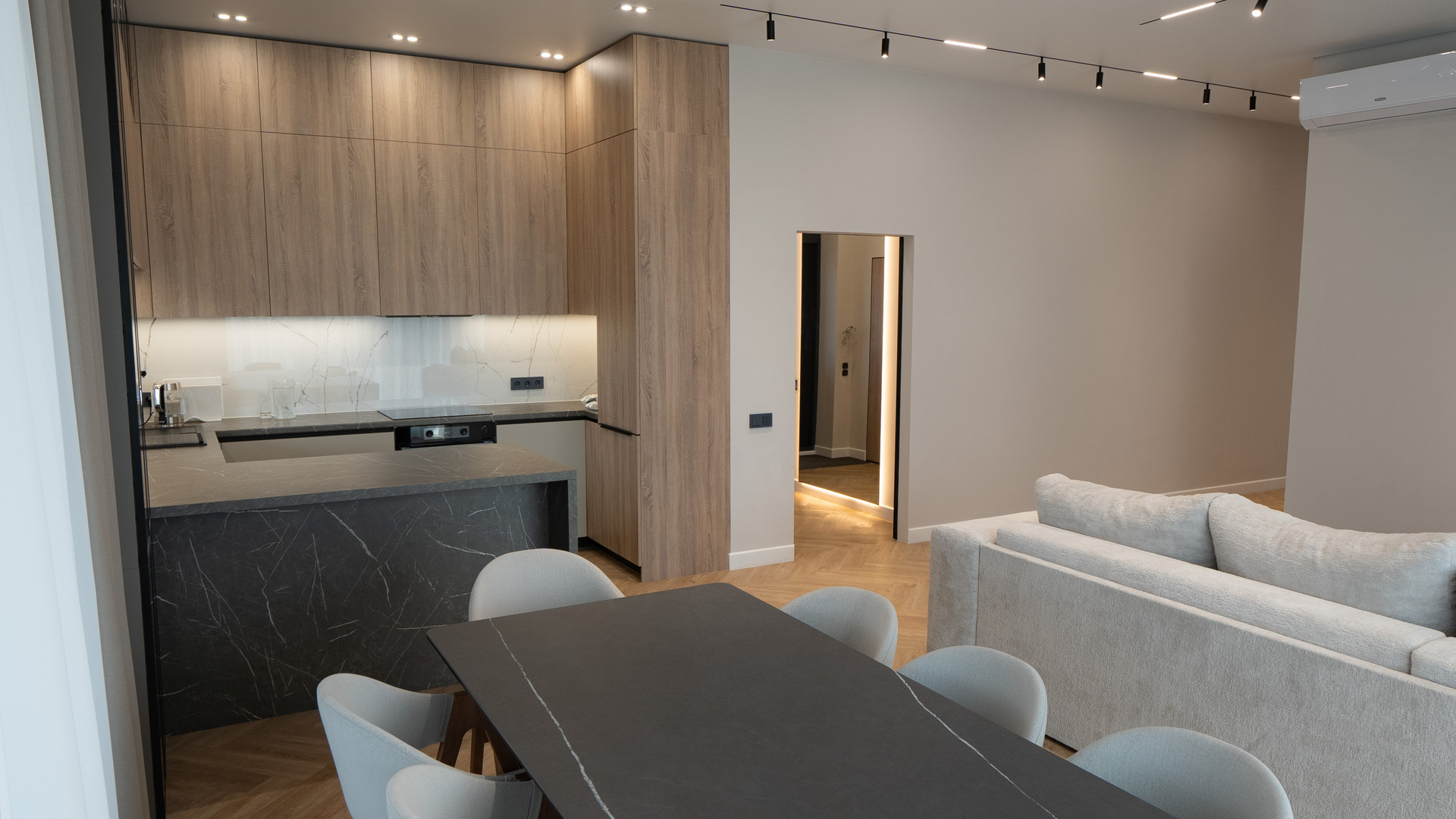Я собственник. В доме есть все, заезжай и живи, строили для себя. Техника вся - стиральная машина с отдельной сушкой, посудомойка, столы и стулья, кондиционеры в зале и мастер спальне. Только продажа.