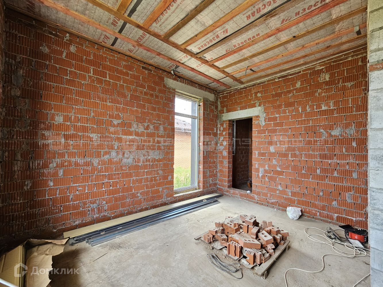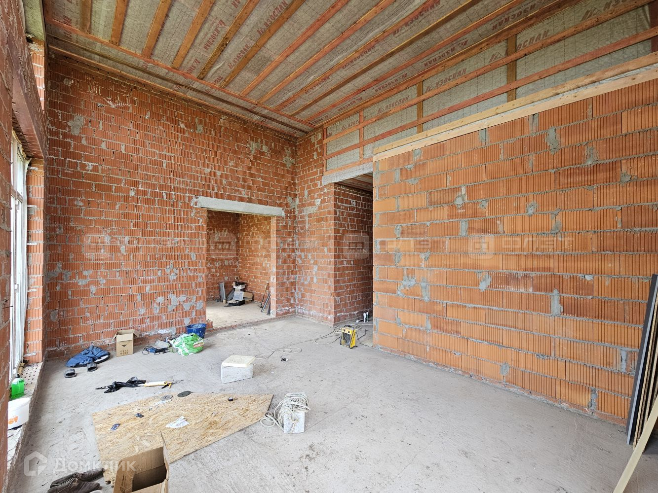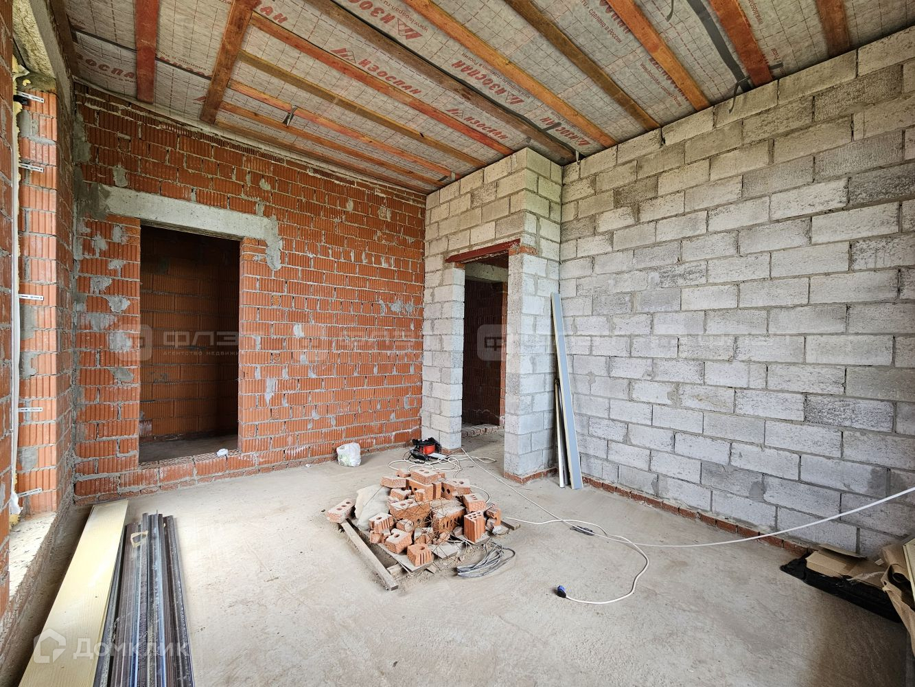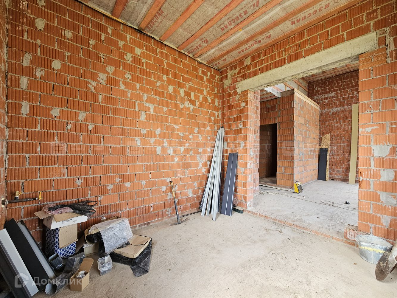 Внутри дом находится в черновой отделке.