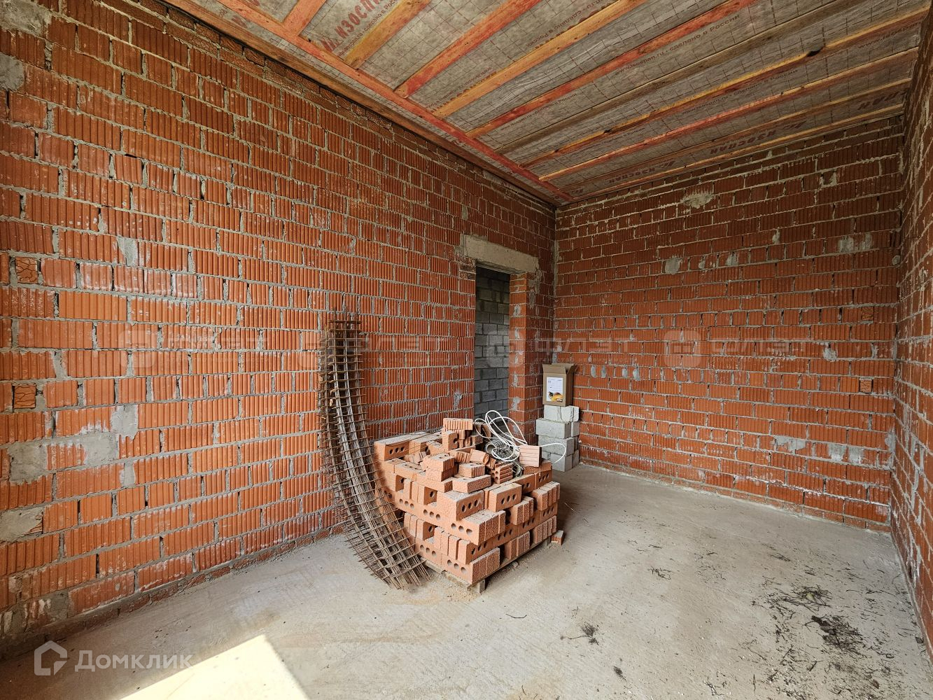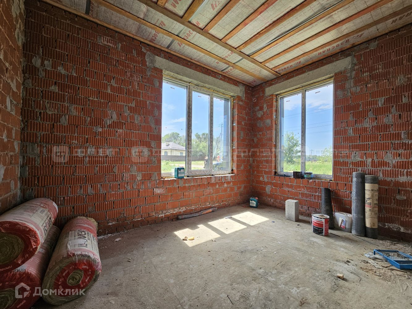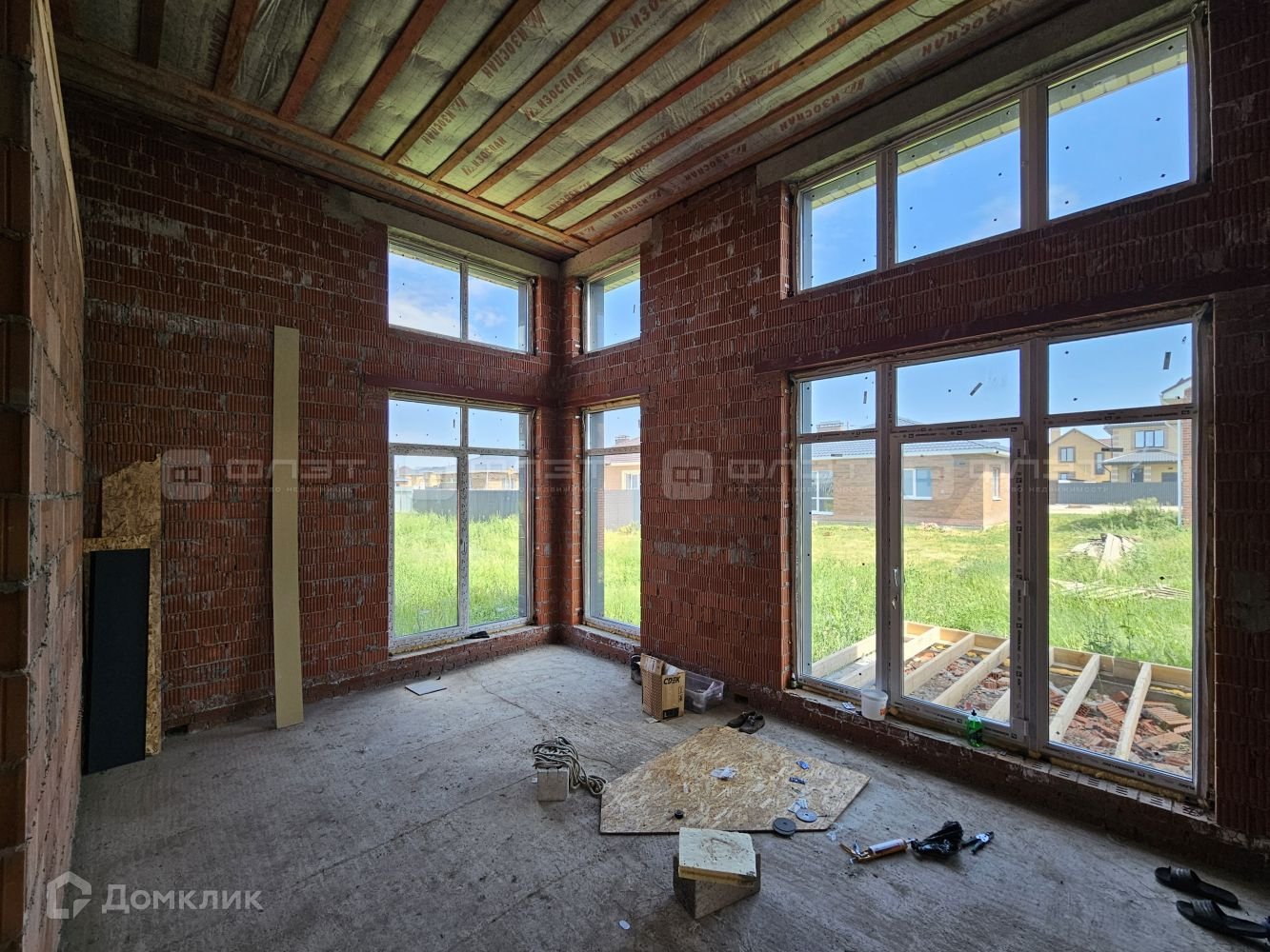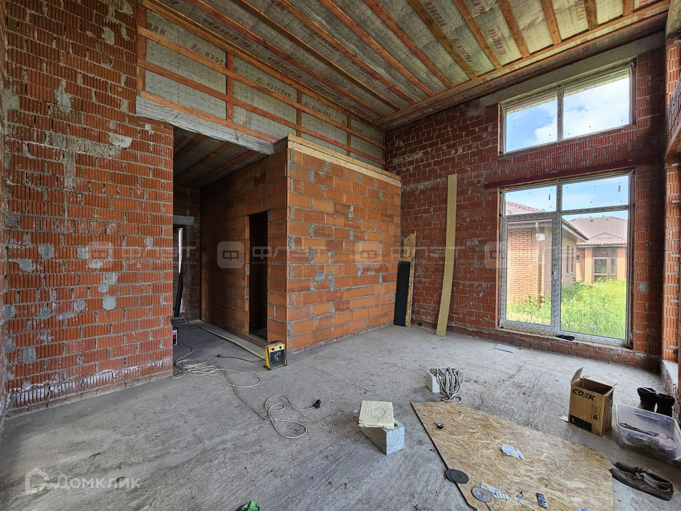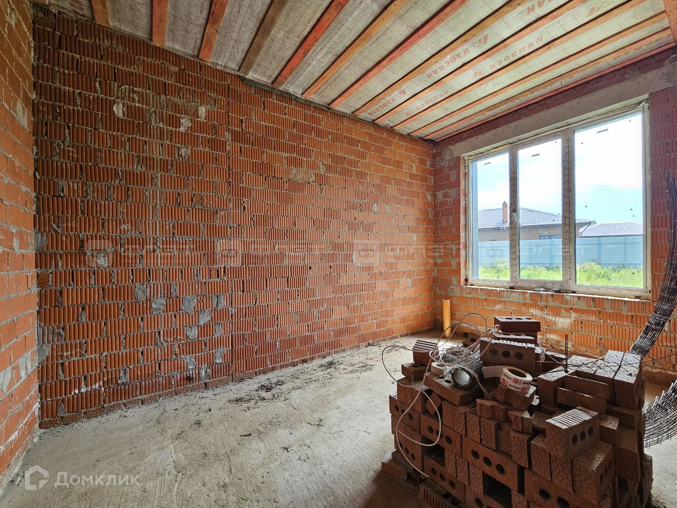 Внутри дом находится в черновой отделке.