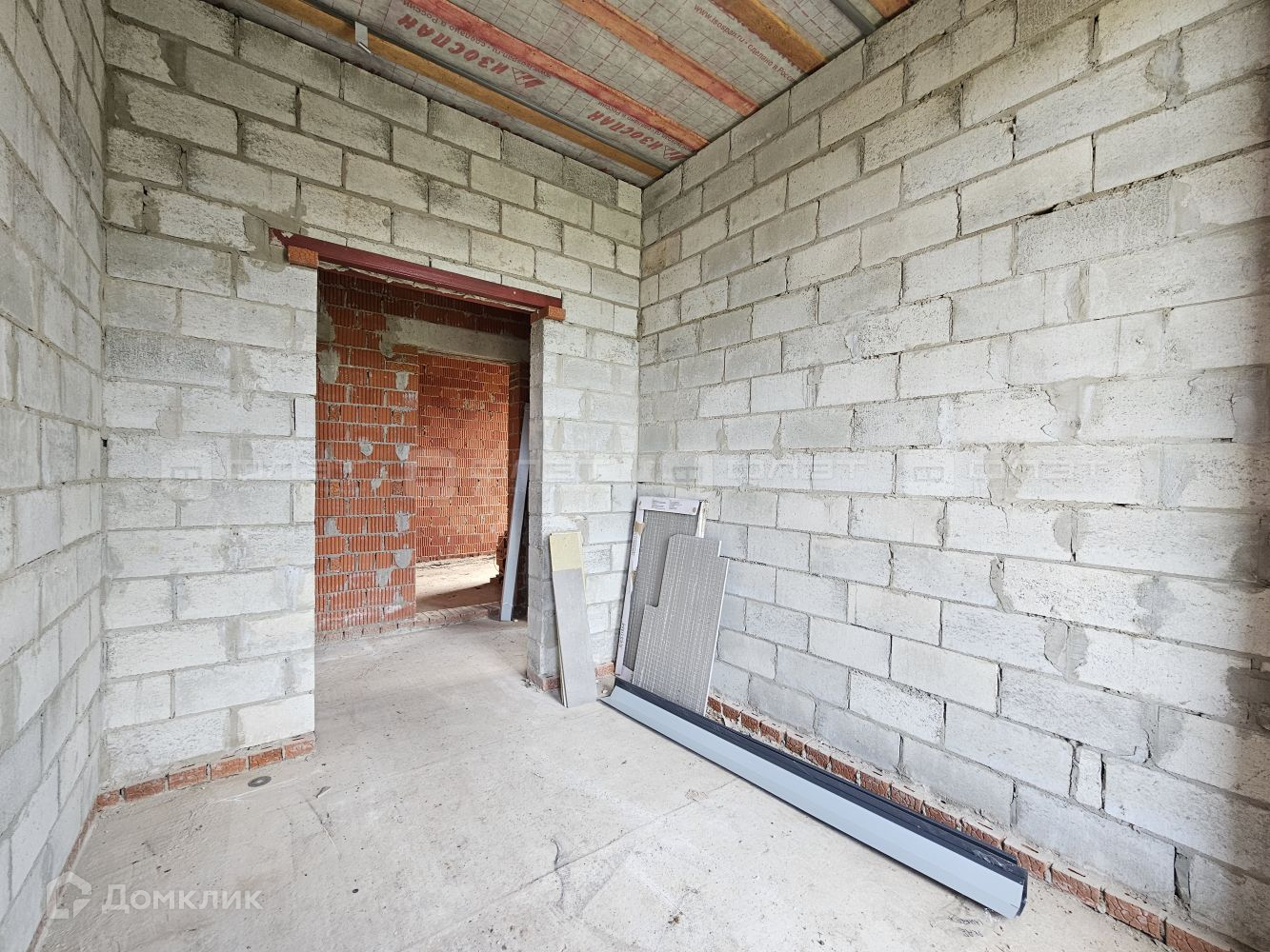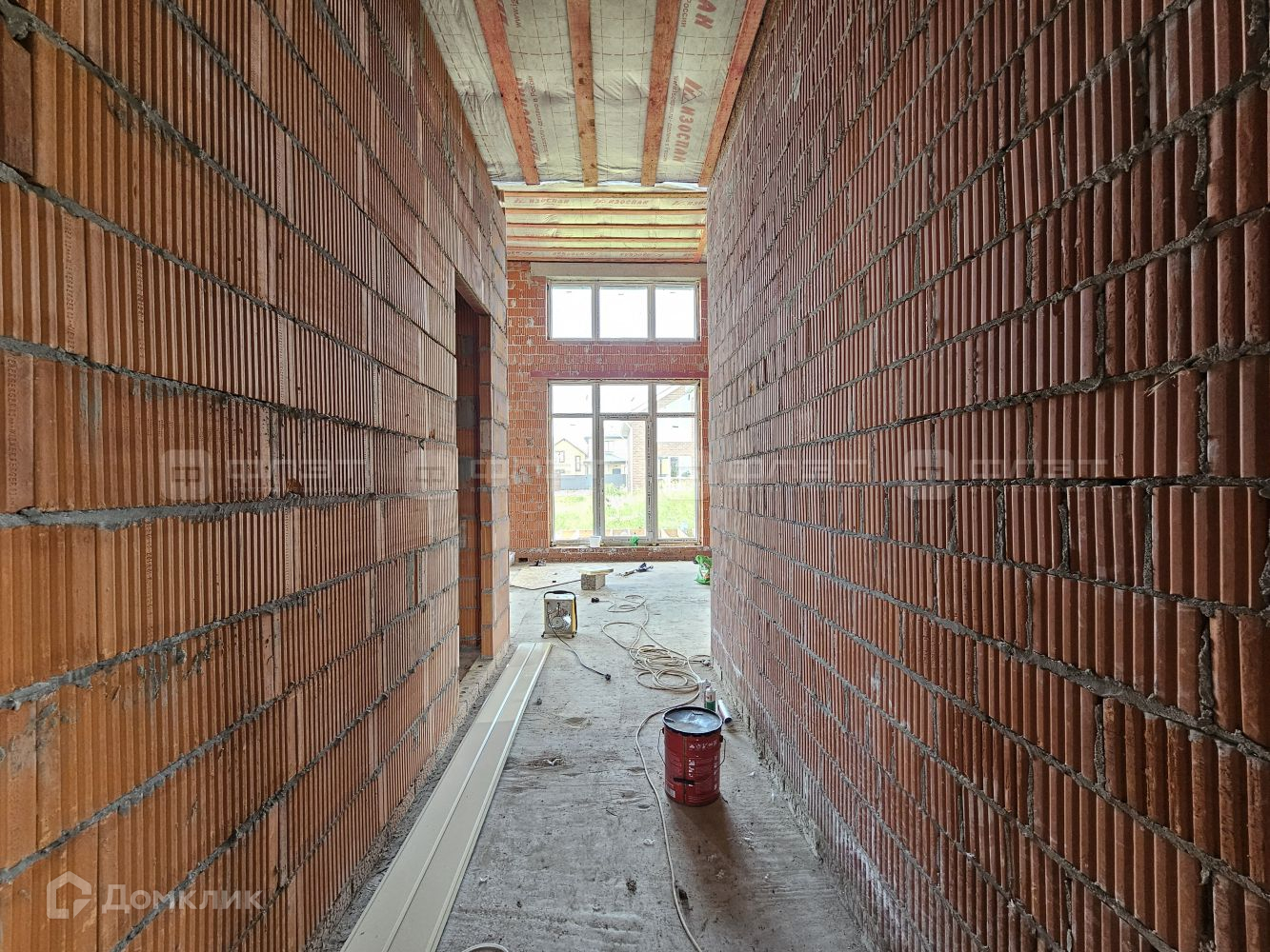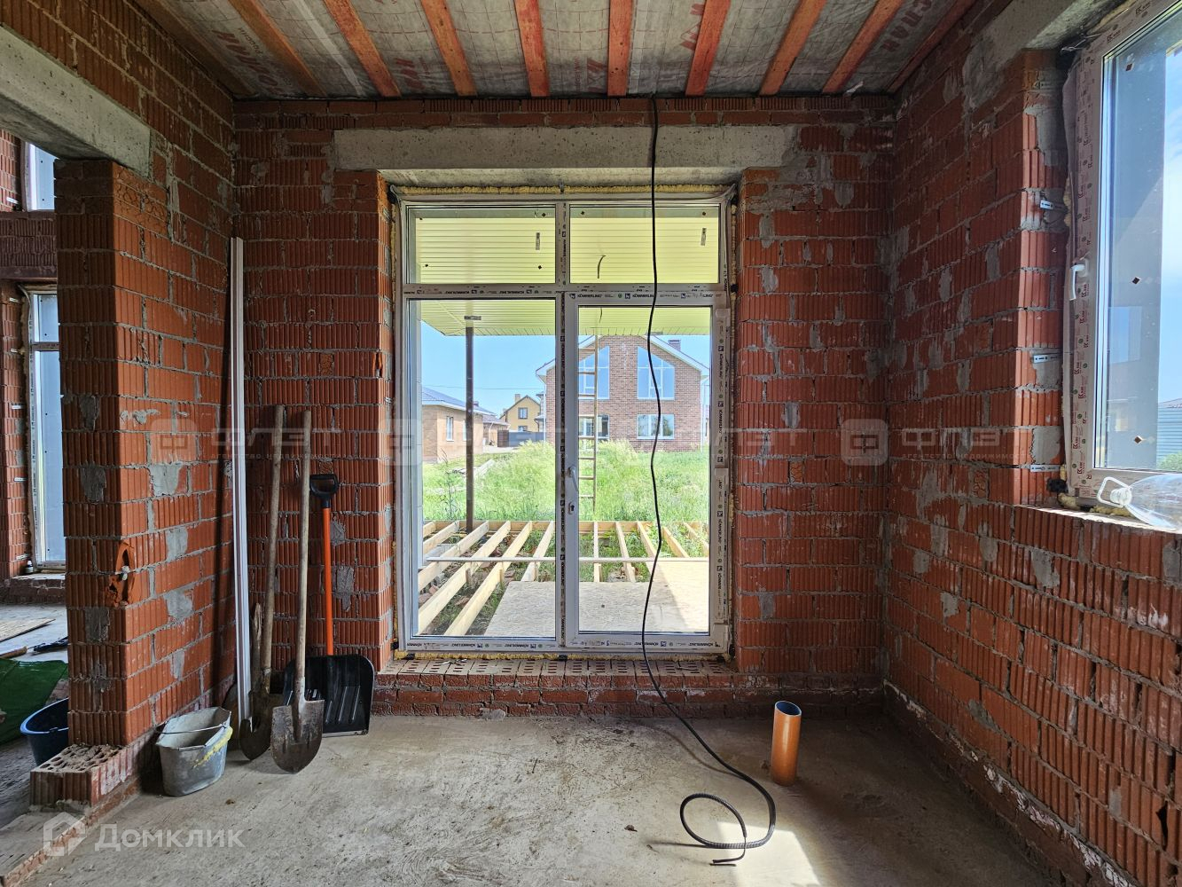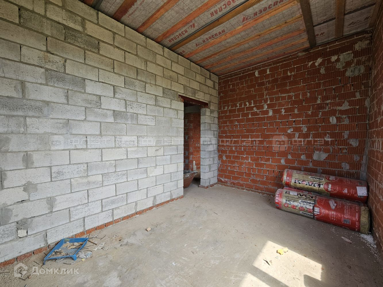 Внутри дом находится в черновой отделке.