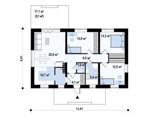 Общая площадь: 61 м2