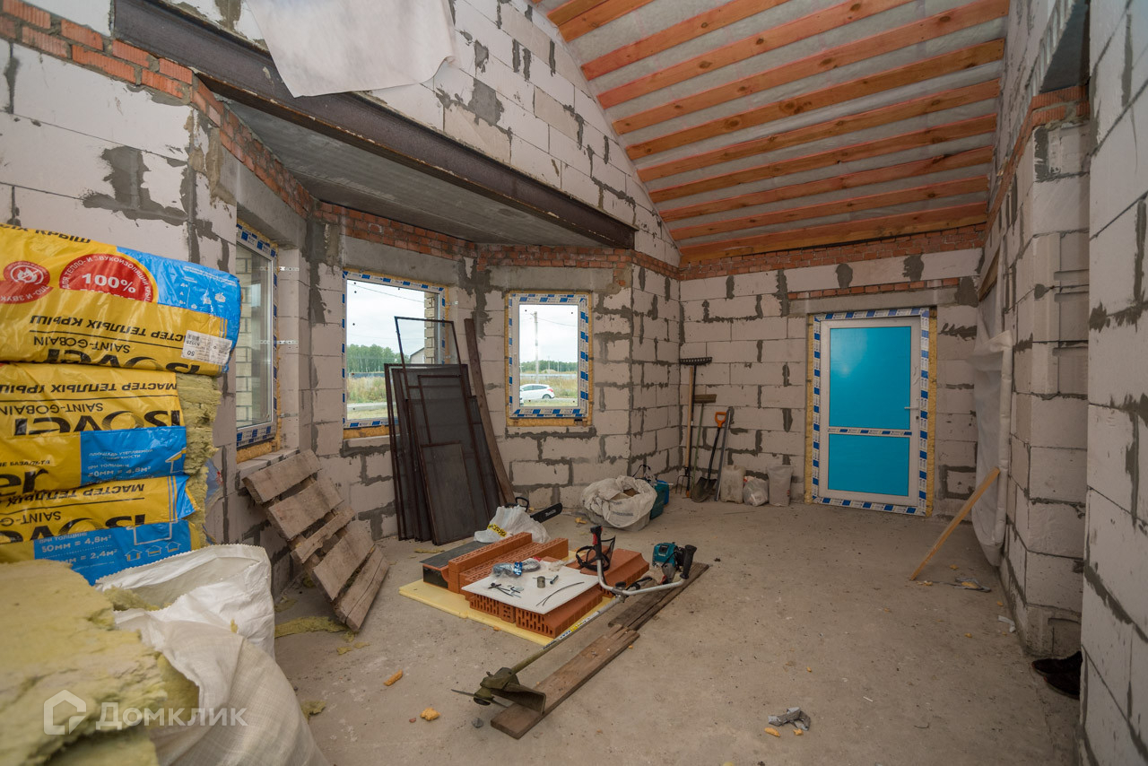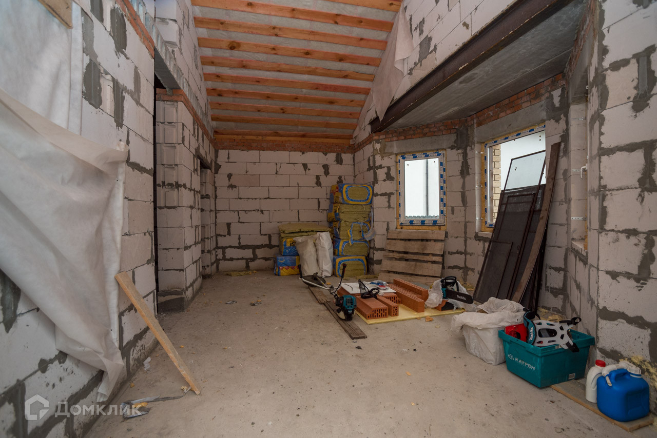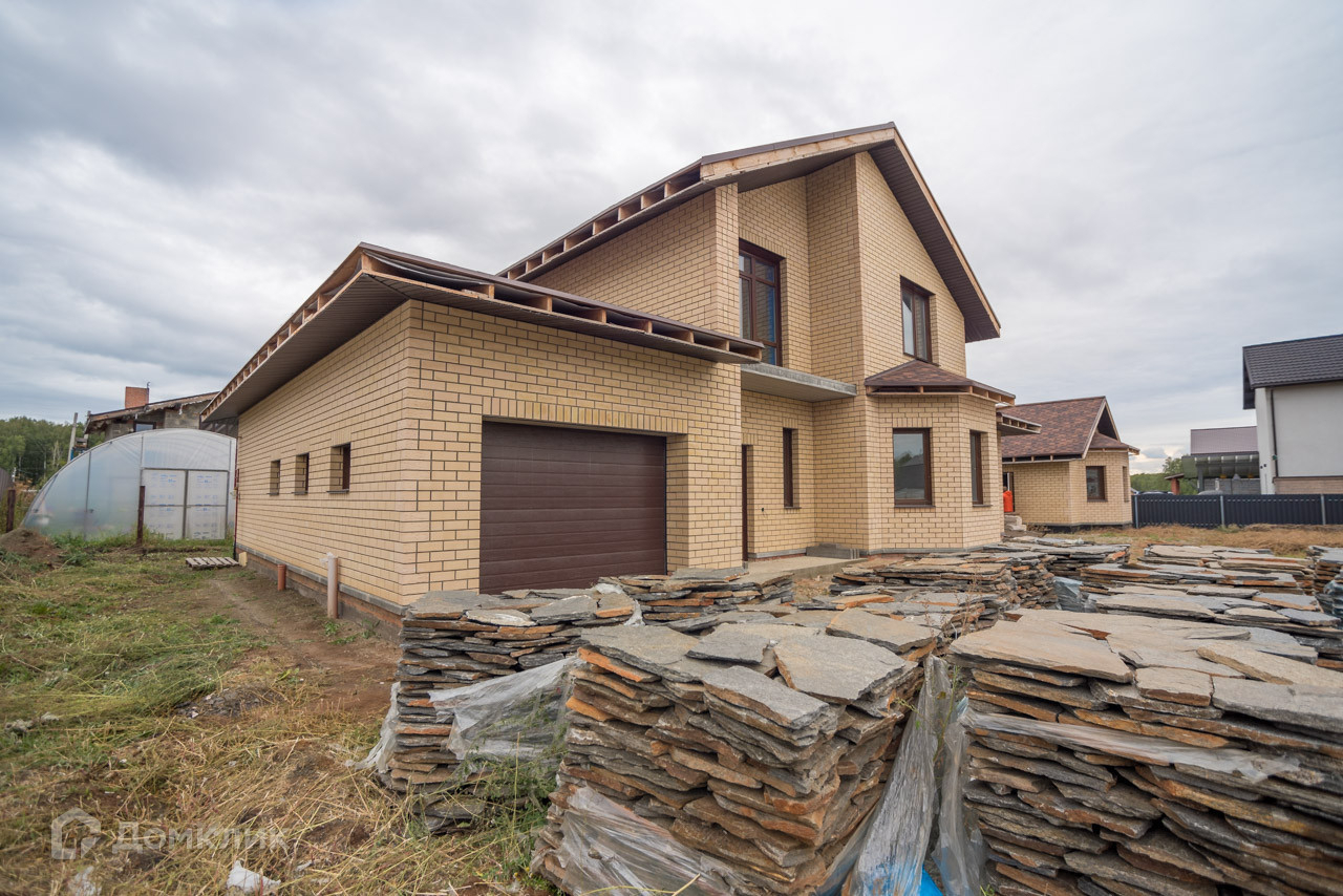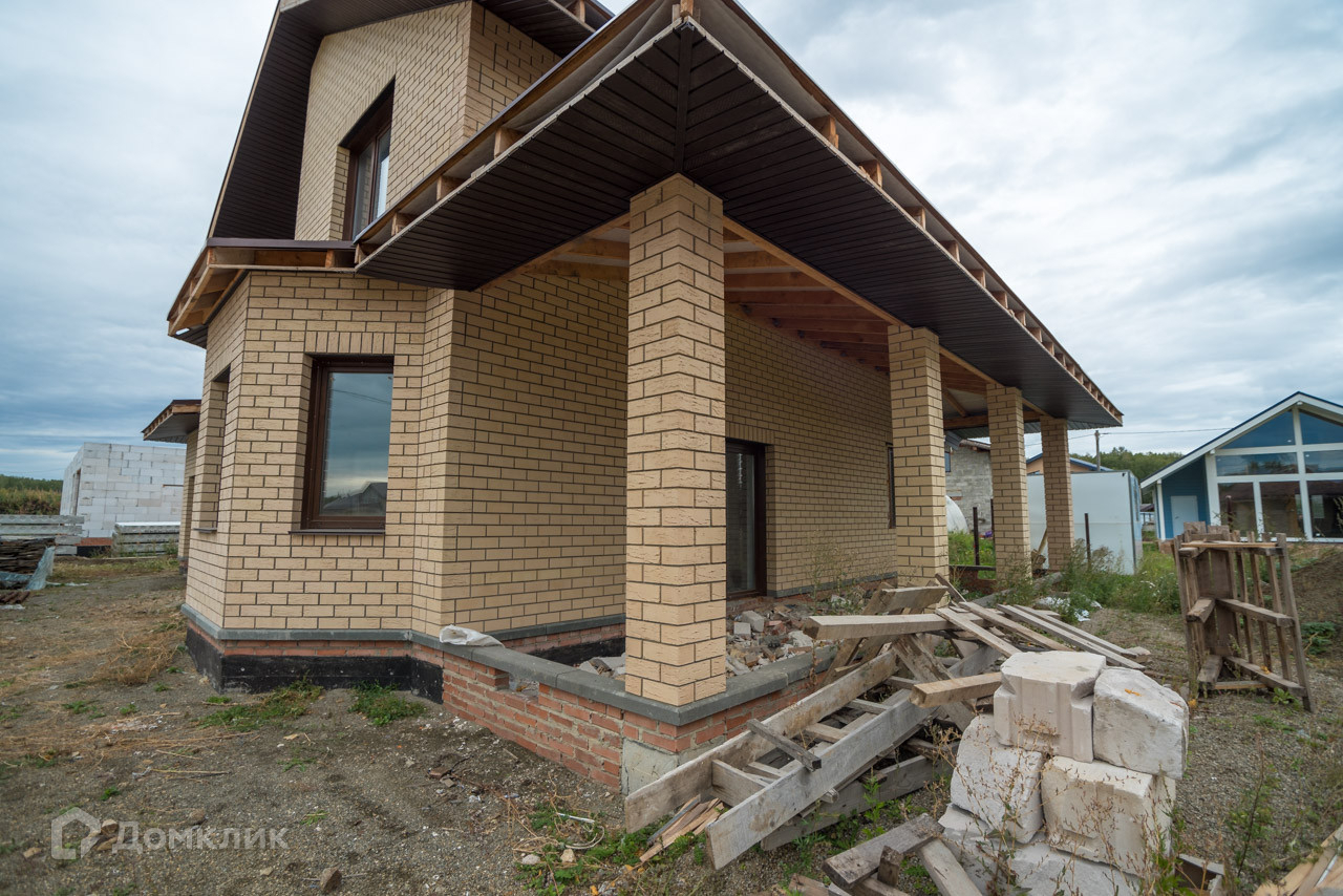 Фундамент: свайно-ленточный Стены: инсиблок. Фасад: кирпич. Утепление: минеральная вата. Кровля: гибкая металлочерепица. Коммуникации: электричество 15 кВ, скважина, септик, водяной тёплый пол по всему дому. ГАЗ