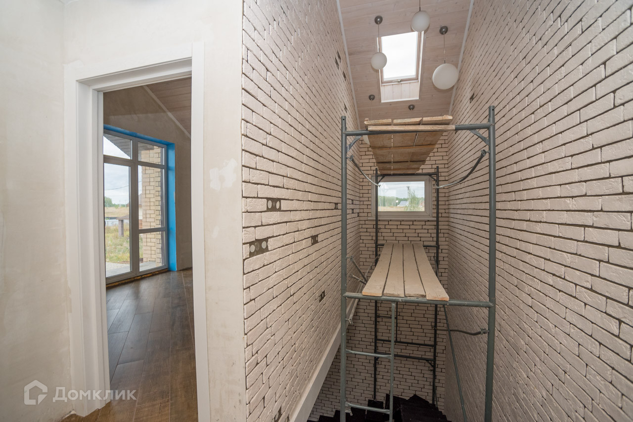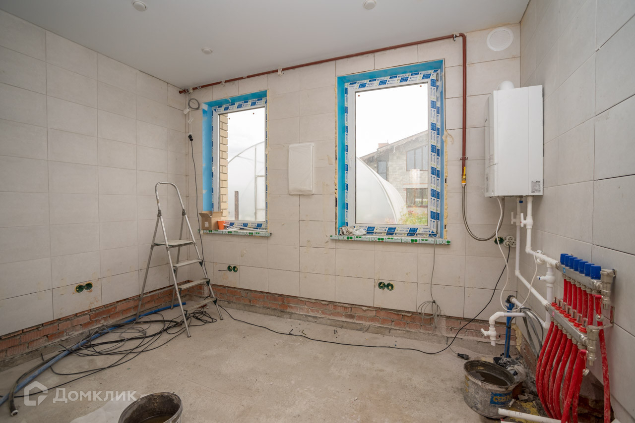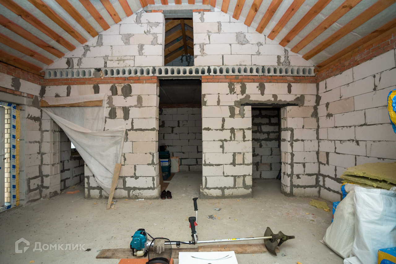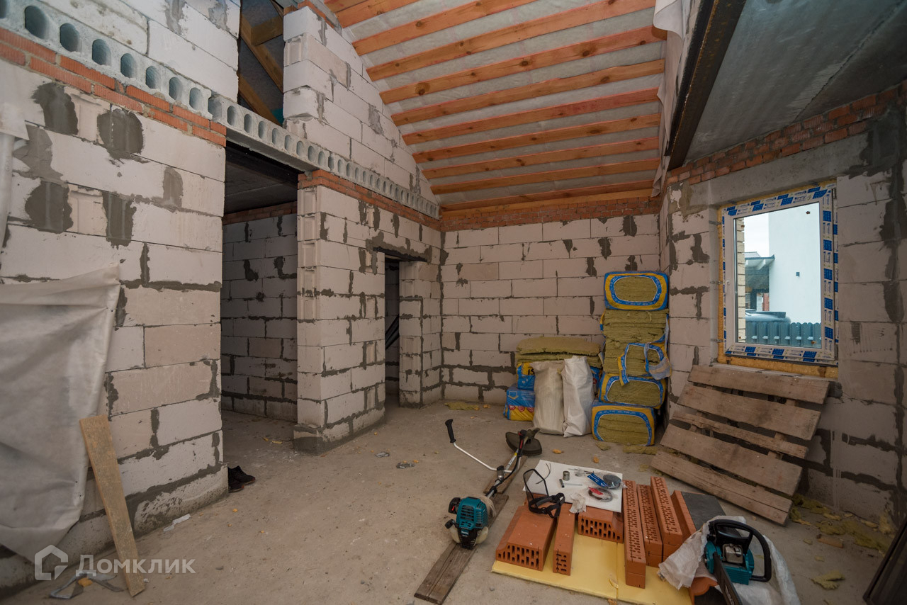 Фундамент: свайно-ленточный Стены: инсиблок. Фасад: кирпич. Утепление: минеральная вата. Кровля: гибкая металлочерепица. Коммуникации: электричество 15 кВ, скважина, септик, водяной тёплый пол по всему дому. ГАЗ