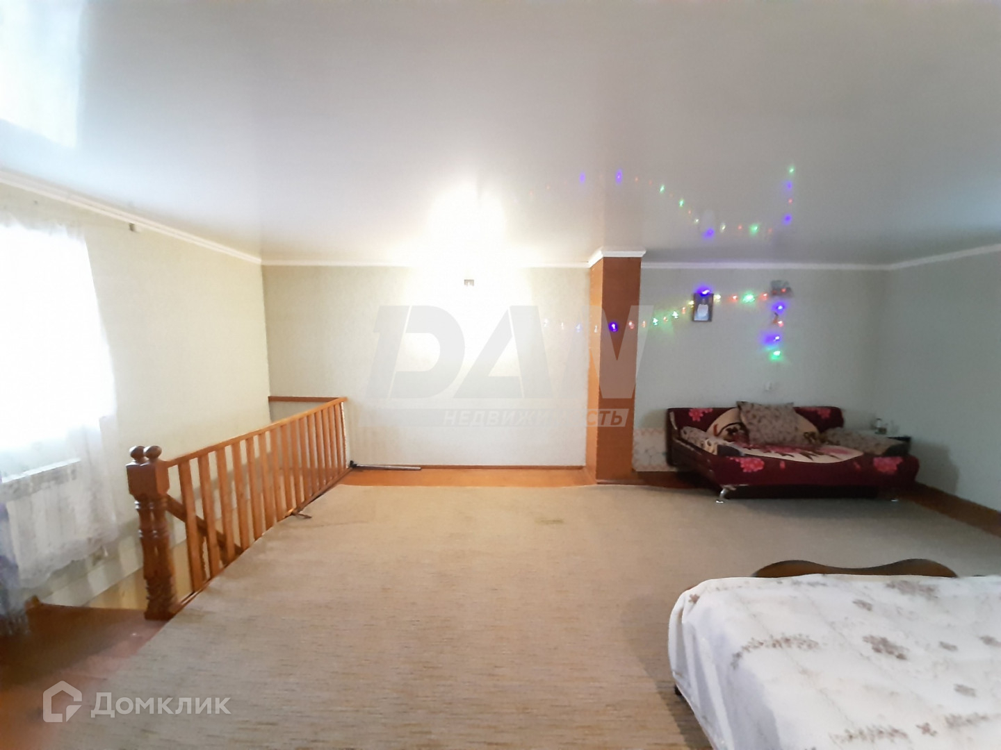 На первом этаже:  кухня-столовая, санузел, комната. На втором этаже: просторная комната с двумя окнами ( возможно перегородить и сделать две комнаты).
