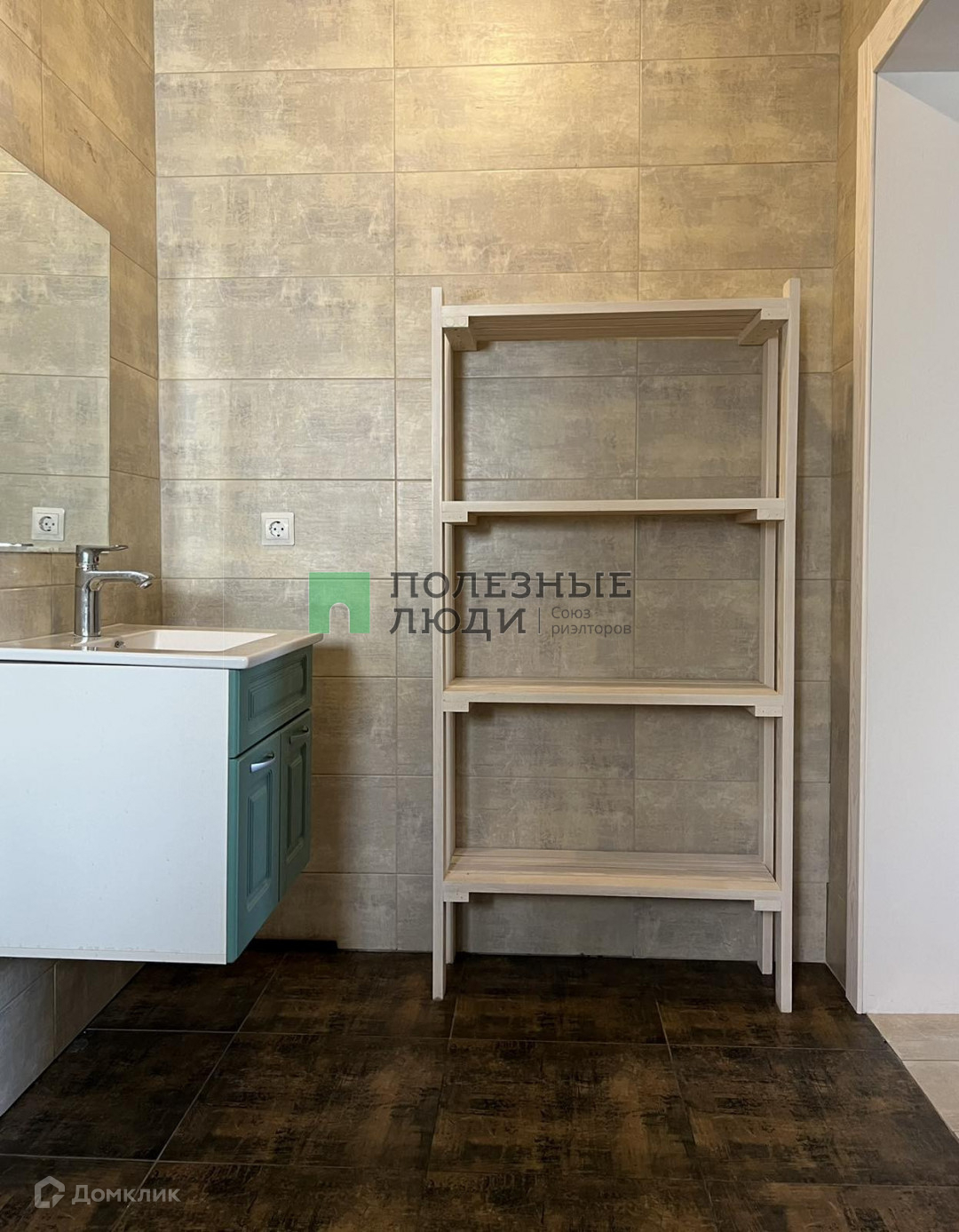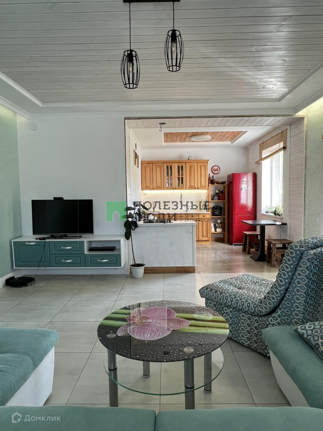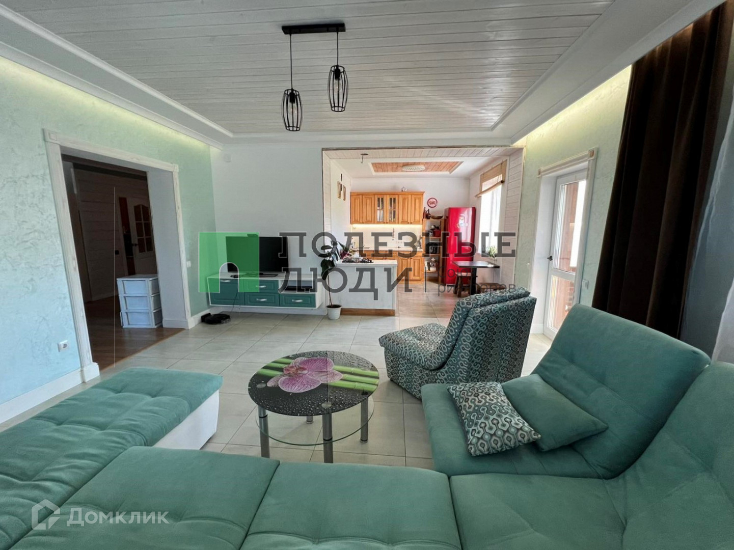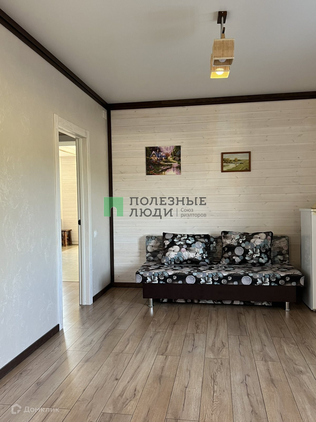 Потолки комбинированные: натяжные матовые+ тонированное дерево. На стенах штукатурка шелкография, на полу в коридоре и спальной комнате ламинат 33 класса, в гостиной и санузле керамогранит.