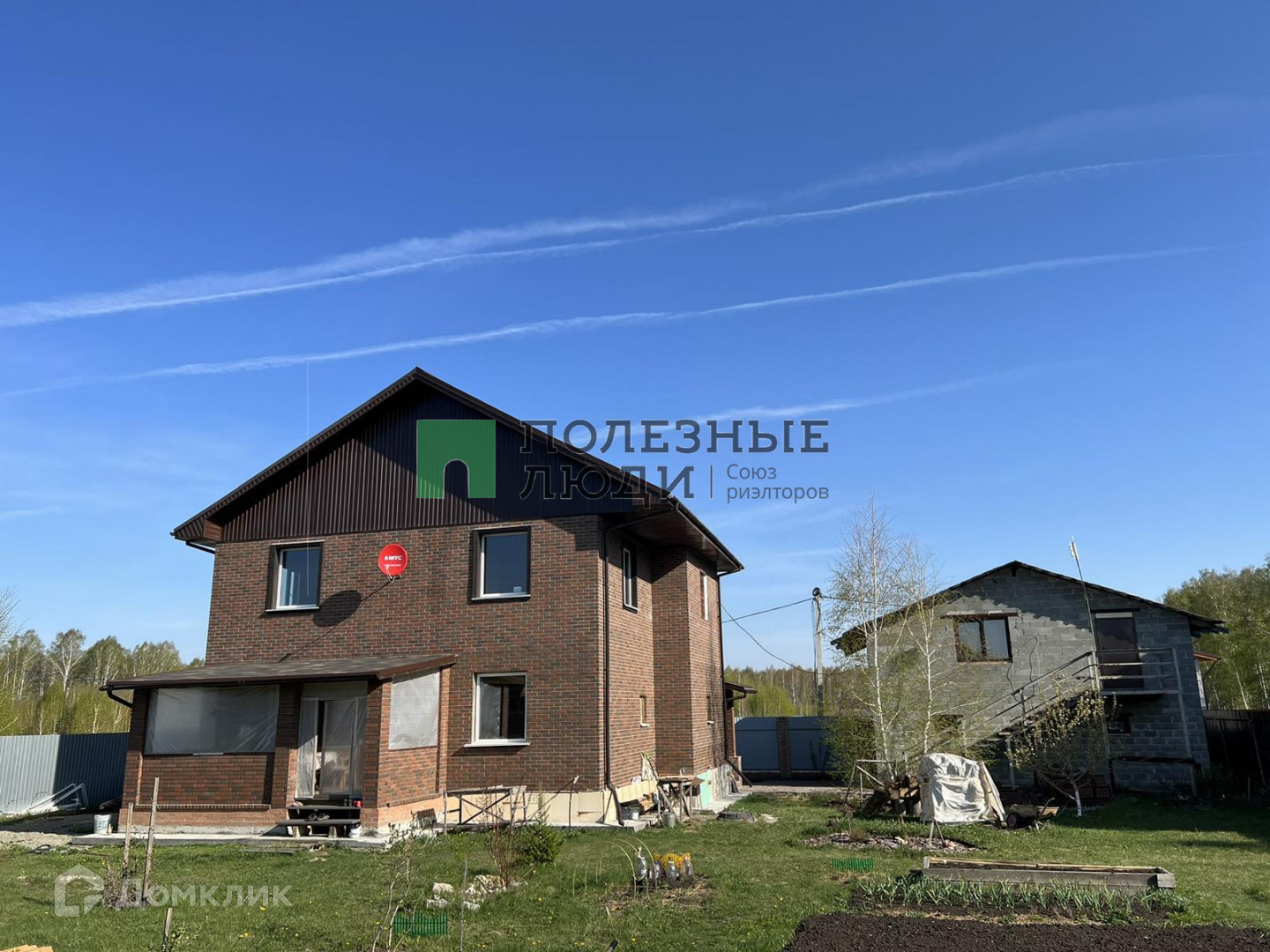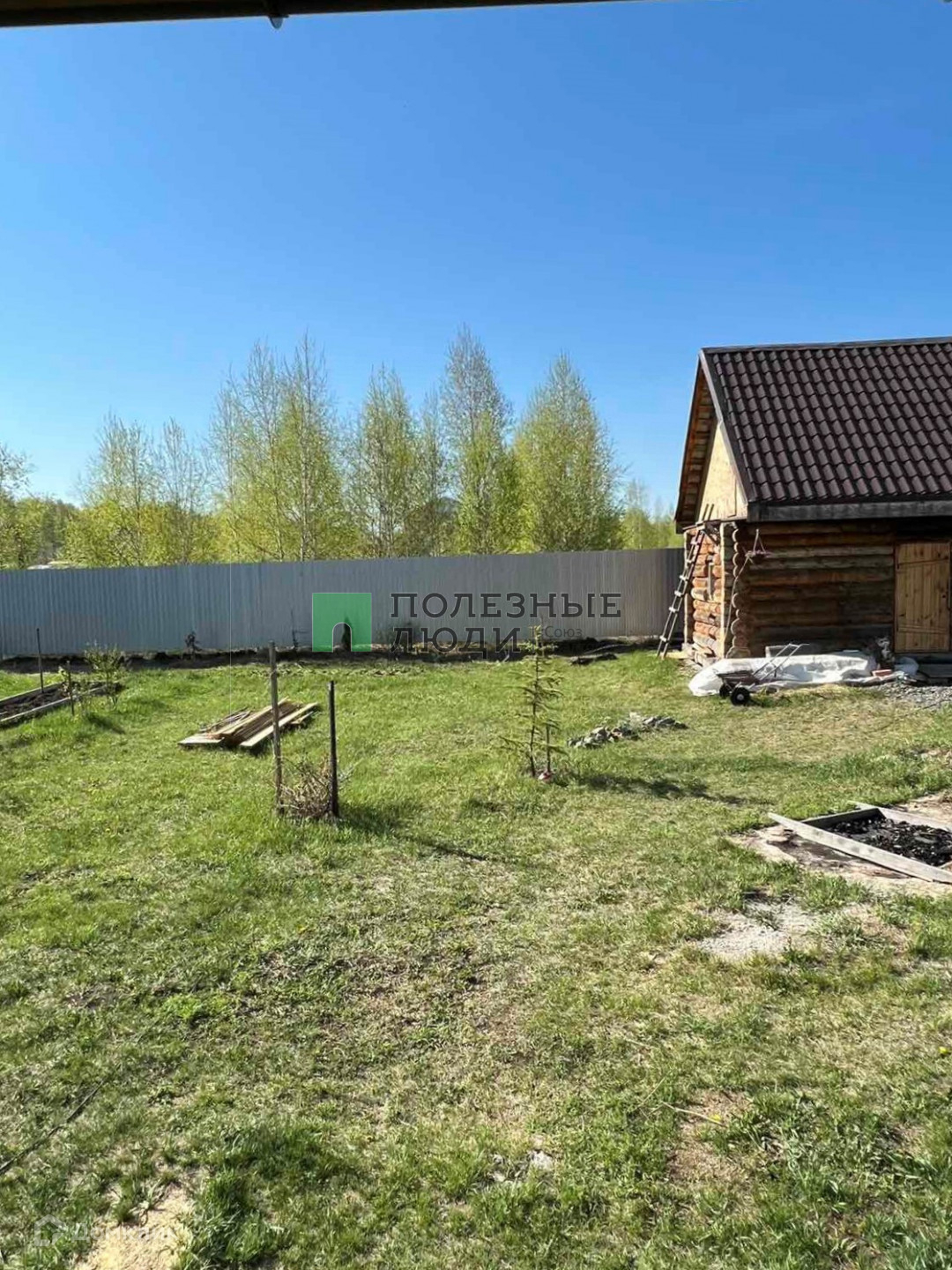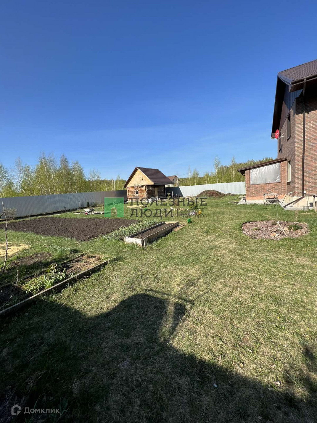 На земельном участке правильной формы имеются постройки: гостевой двухэтажный дом из газоблока 120 кв. м. с гаражом на две машины на 1 этаже, баня из сруба с качественной печью (внутри нет отделки).