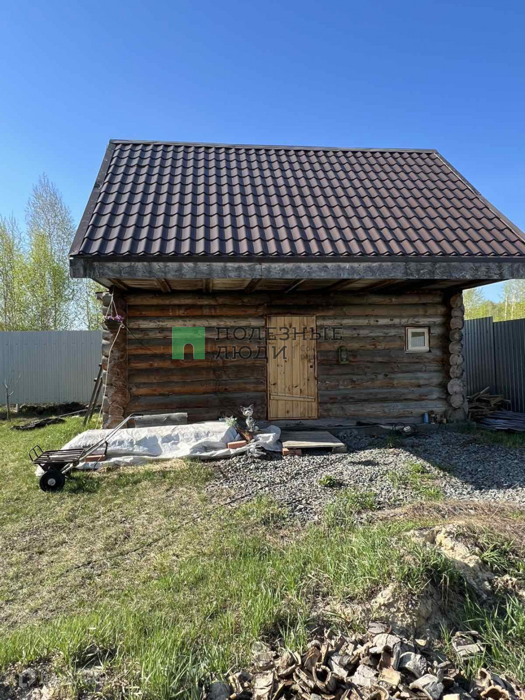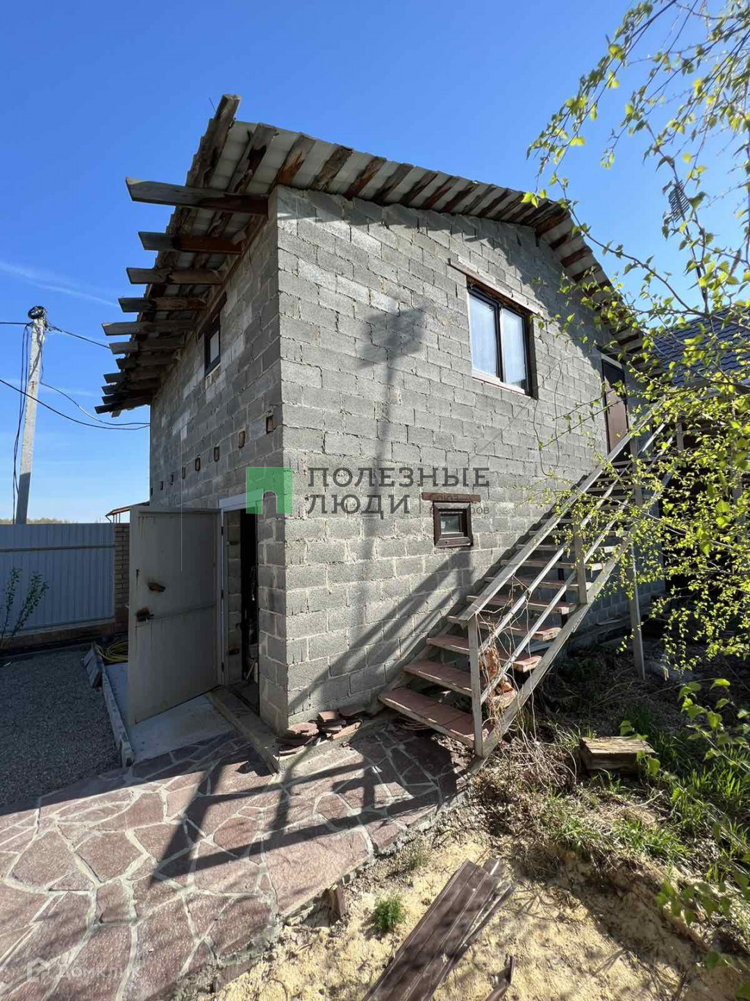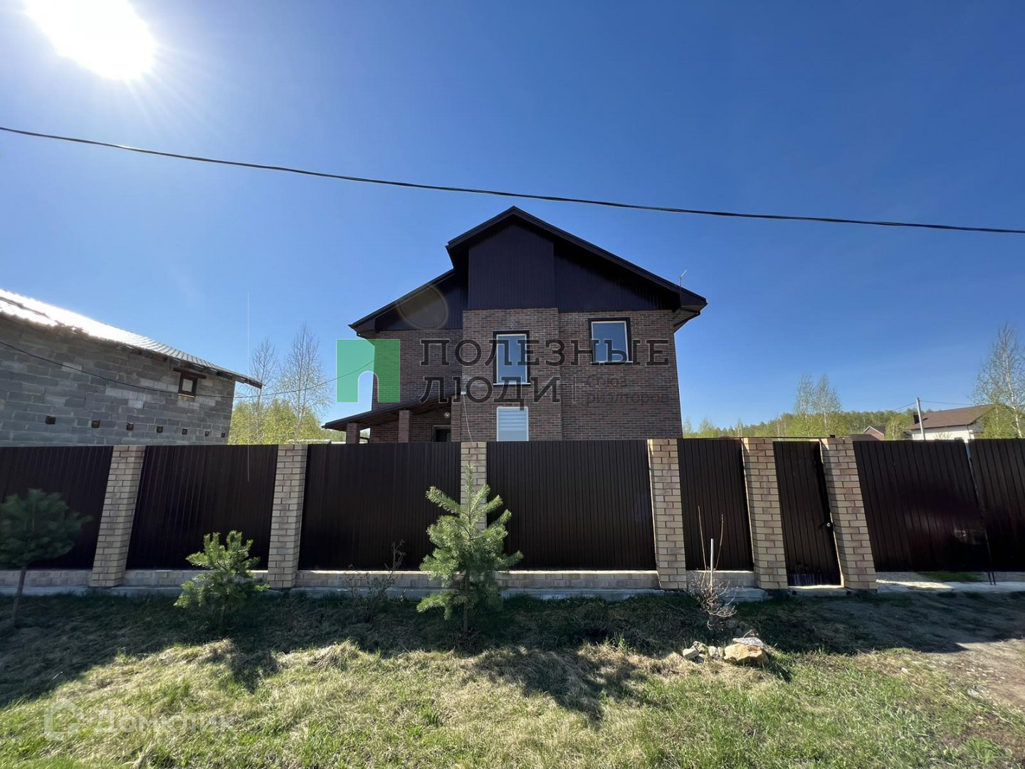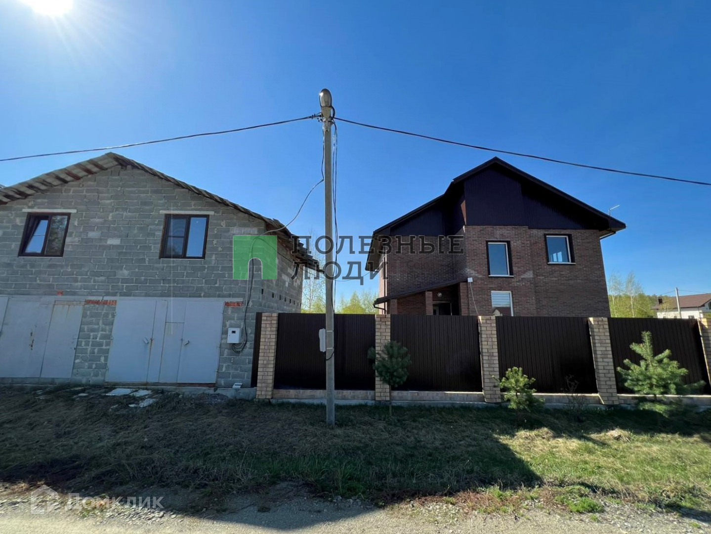 На земельном участке правильной формы имеются постройки: гостевой двухэтажный дом из газоблока 120 кв. м. с гаражом на две машины на 1 этаже, баня из сруба с качественной печью (внутри нет отделки).