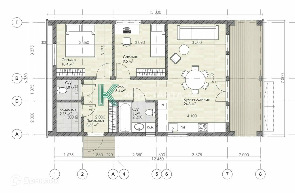 Общая площадь 80 м2