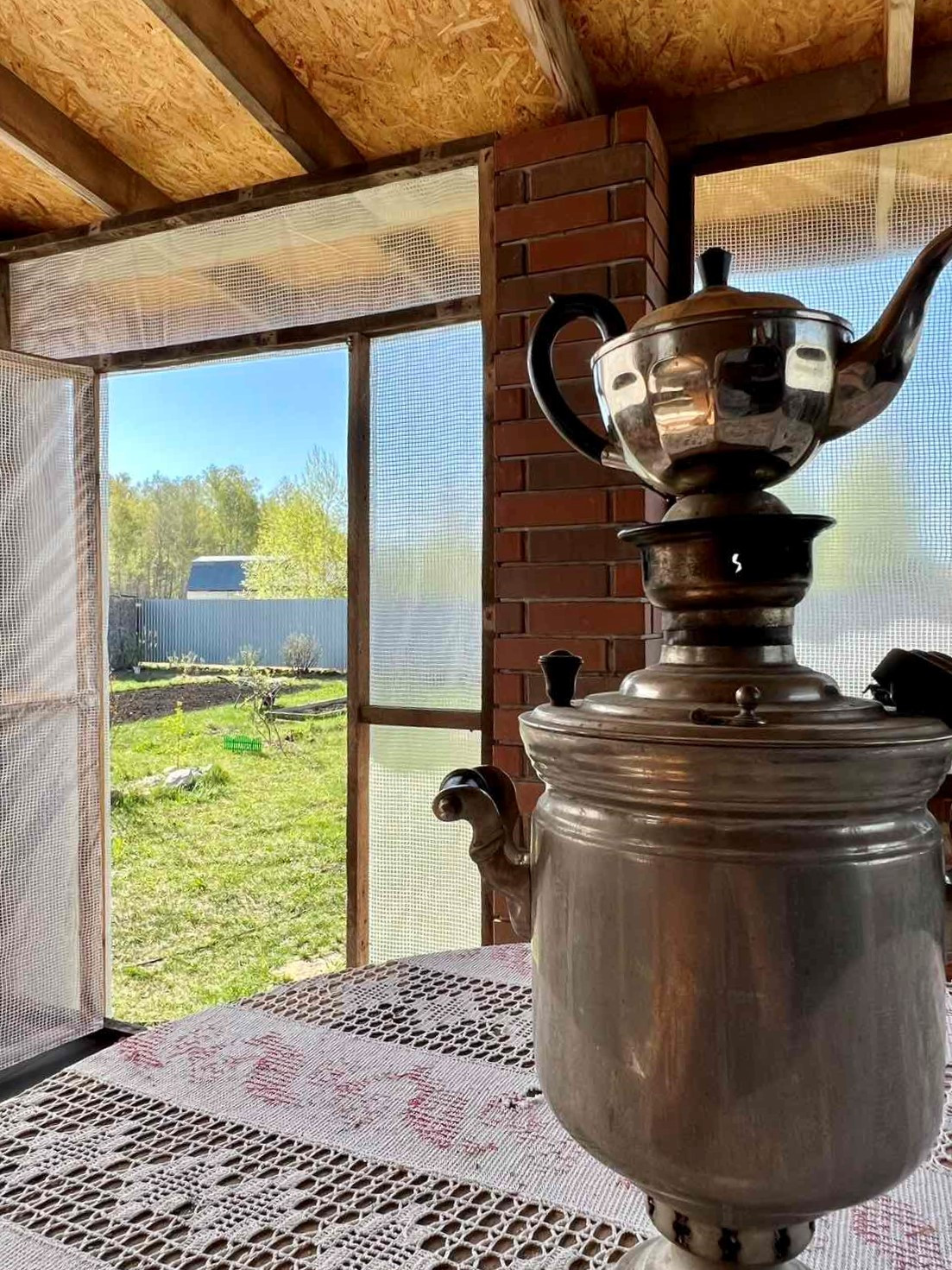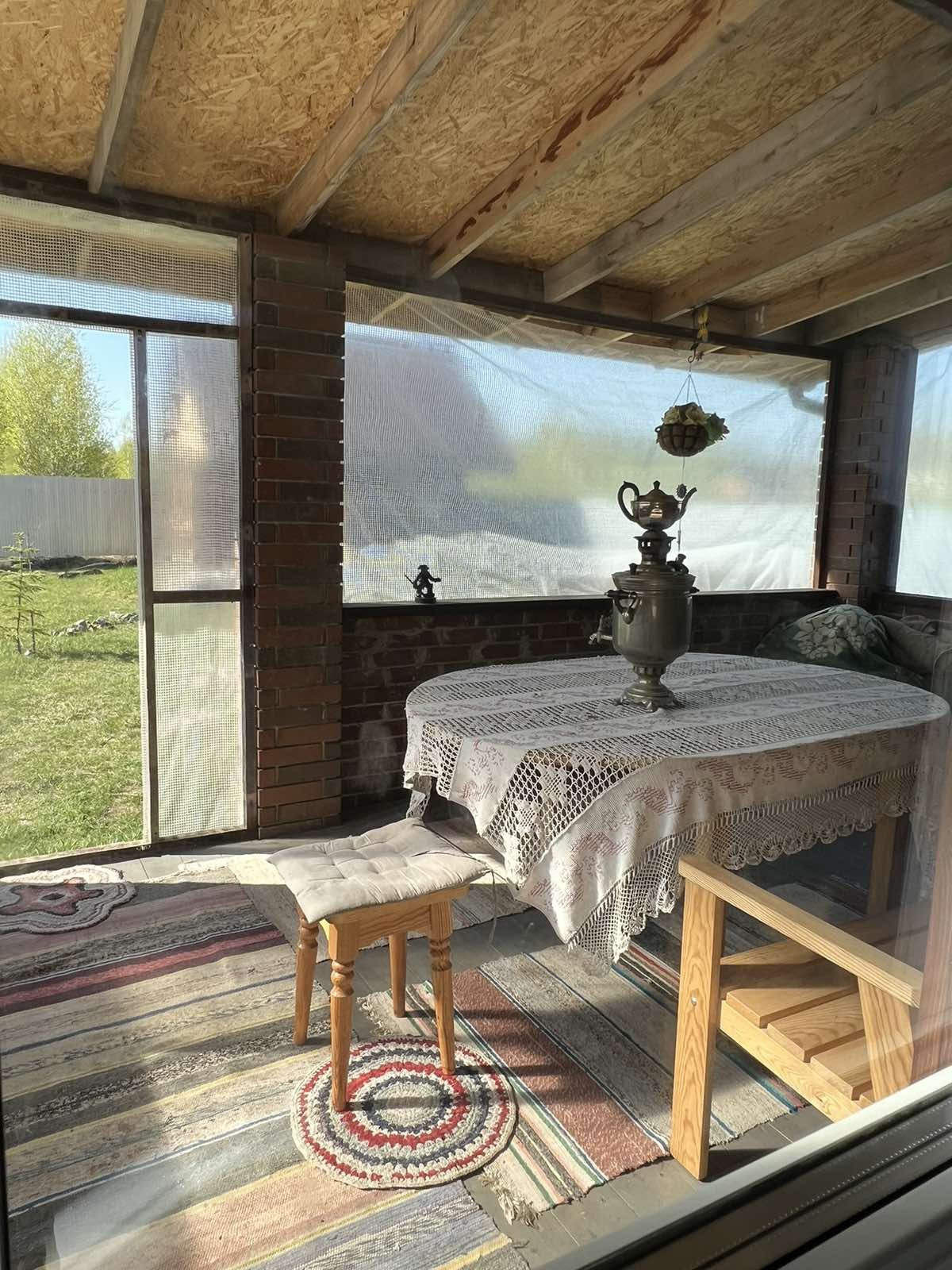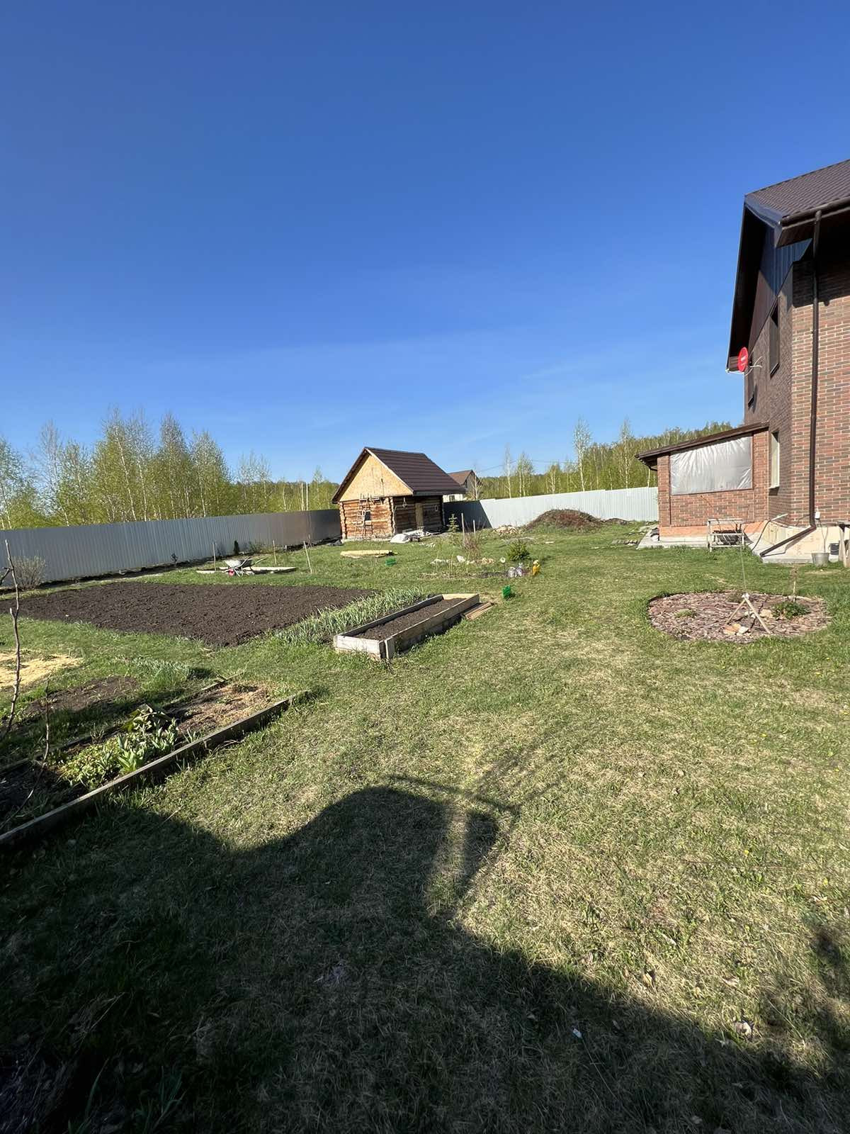 Посажен сад, имеются декоративные и фруктовые плодоносящие деревья- яблоня, груша, вишня, слива, ягодники-смородина, крыжовник, жимолость, клубника. В настоящее время укладываются дорожки в саду.