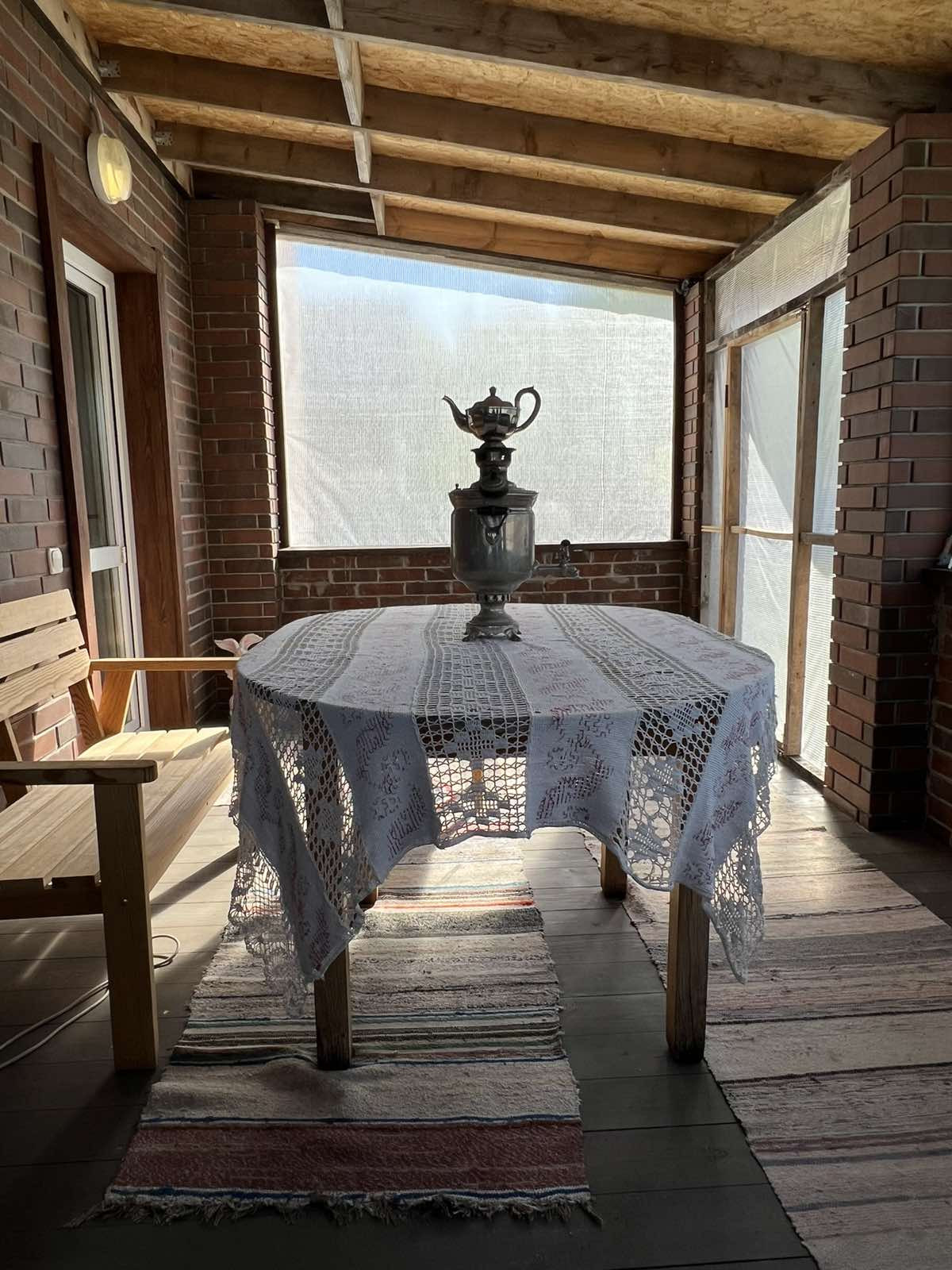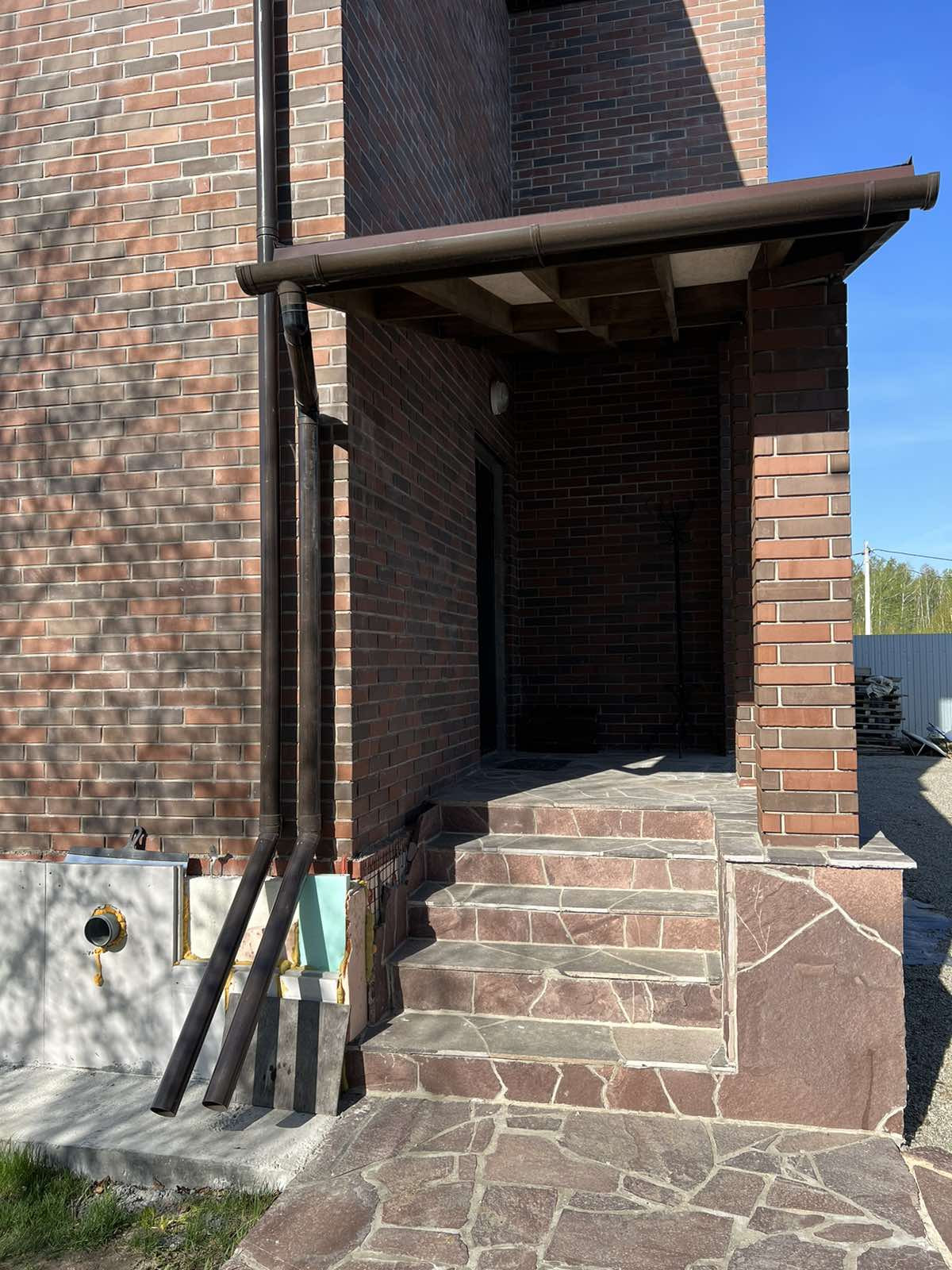 Дом выполнен из бруса, облицован кирпичом (стиль «Бавария»), фундамент утеплен.