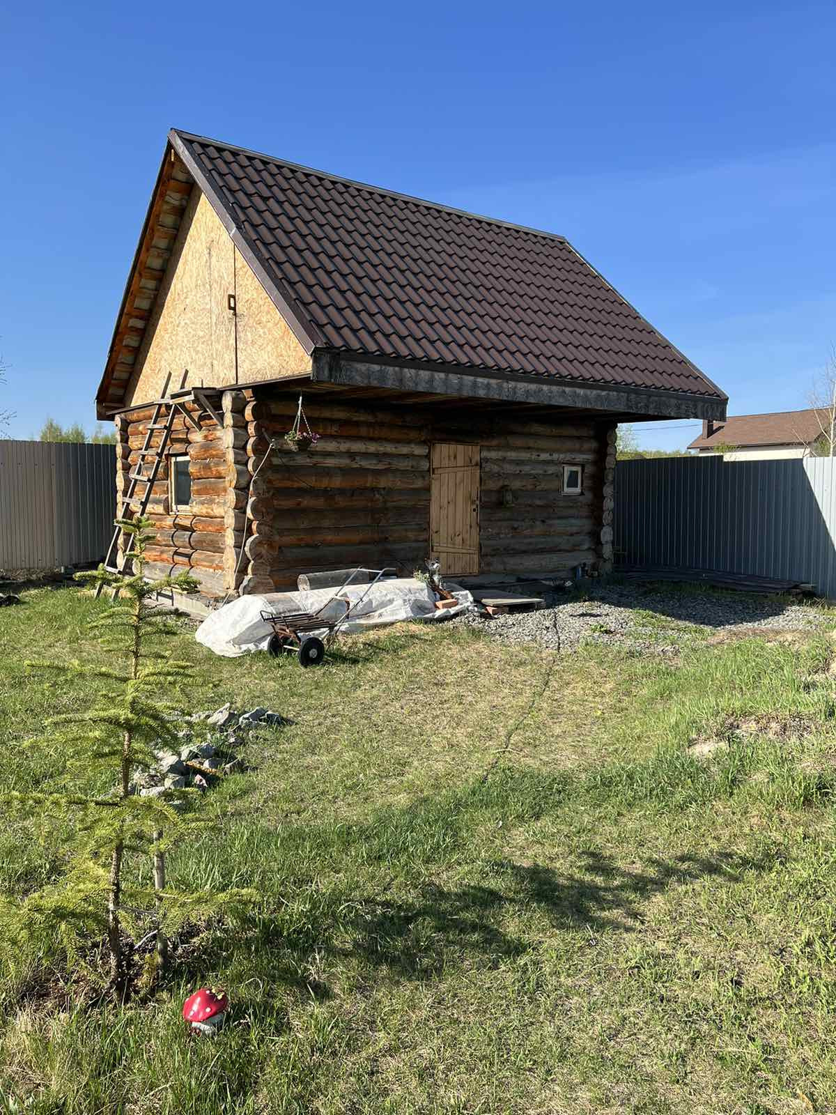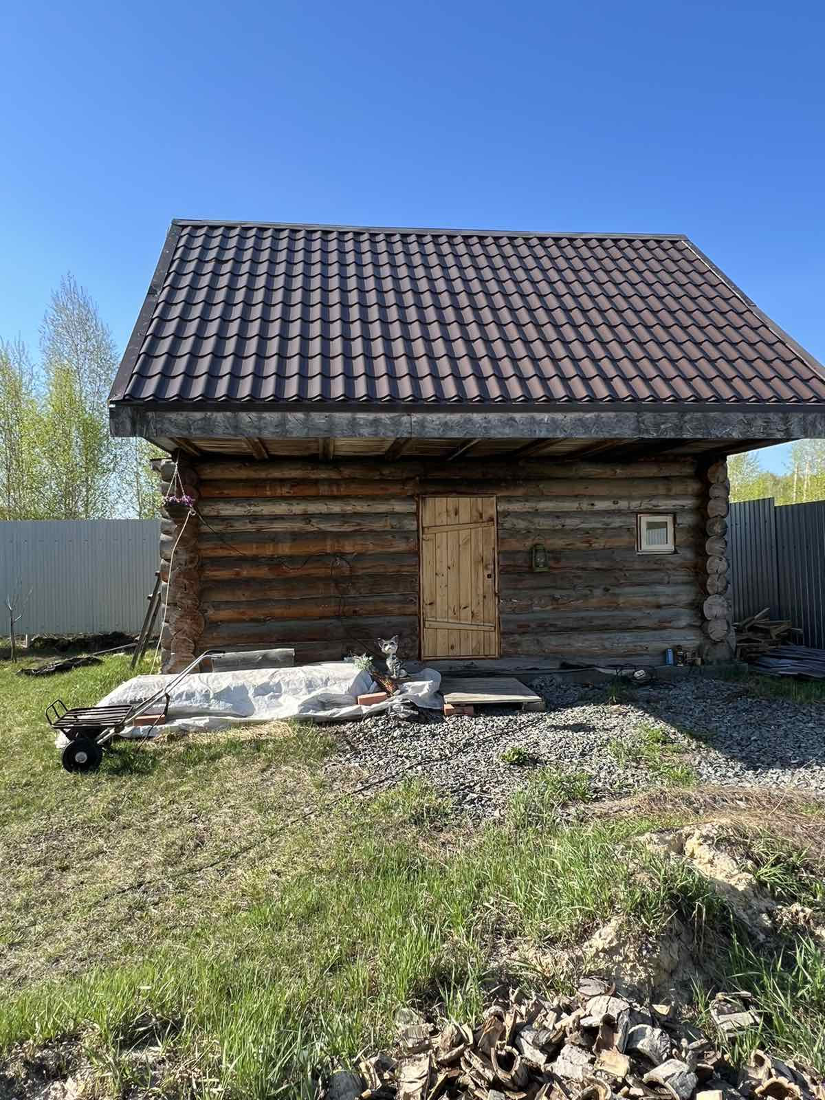 На земельном участке правильной формы имеются постройки: гостевой двухэтажный дом из газоблока 120 кв. м. с гаражом на две машины на 1 этаже, баня из сруба с качественной печью (внутри нет отделки).