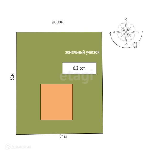 Площадь участка 6.2 сот.
