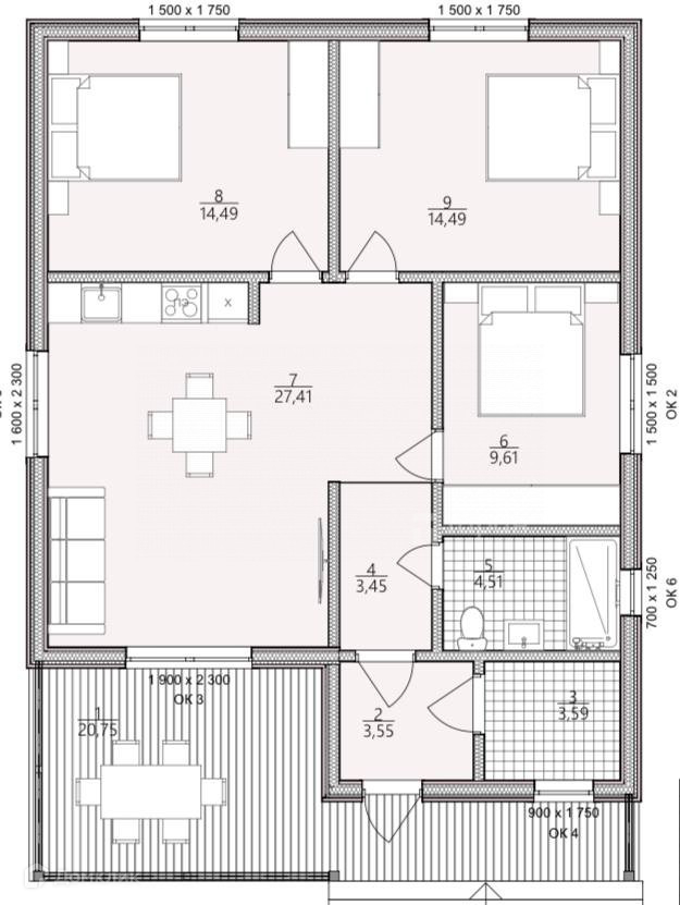 Площадь кухни 27.41 м2