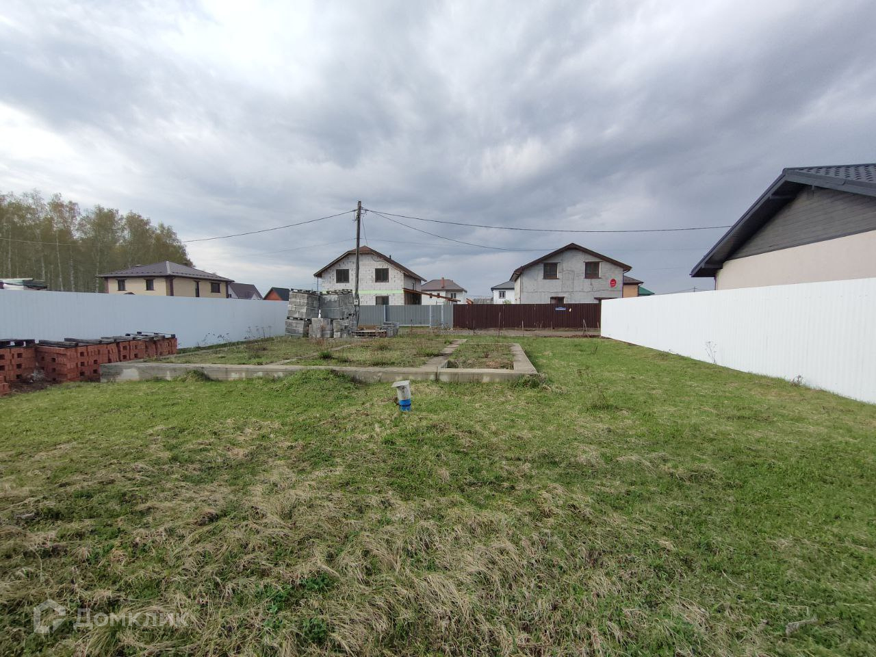 Подключено электричество 15 кВт со счётчиком, но не заведено в дом. Имеется скважина, глубиной 42 метра. Участок по бокам огорожен забором из профнастила, спереди рабица.