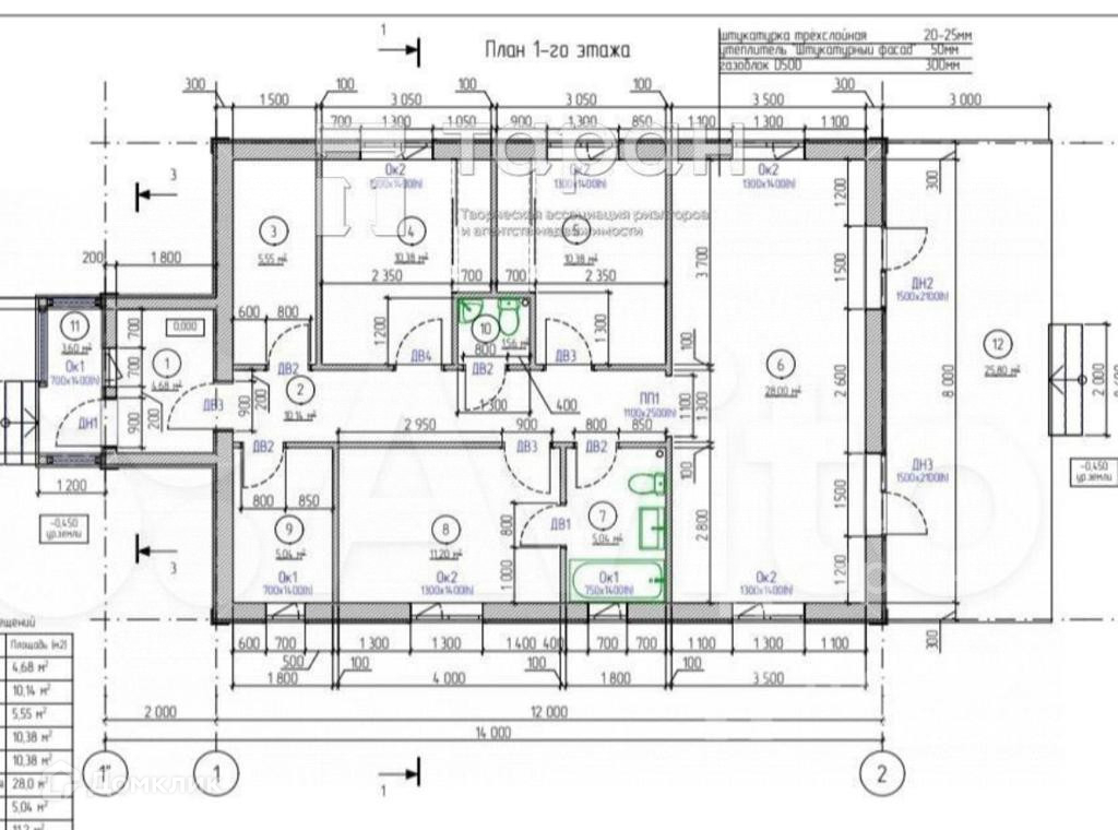 2.Стены. Инсиблок 300 мм . Внутренние перегородки Газоблок 100 мм