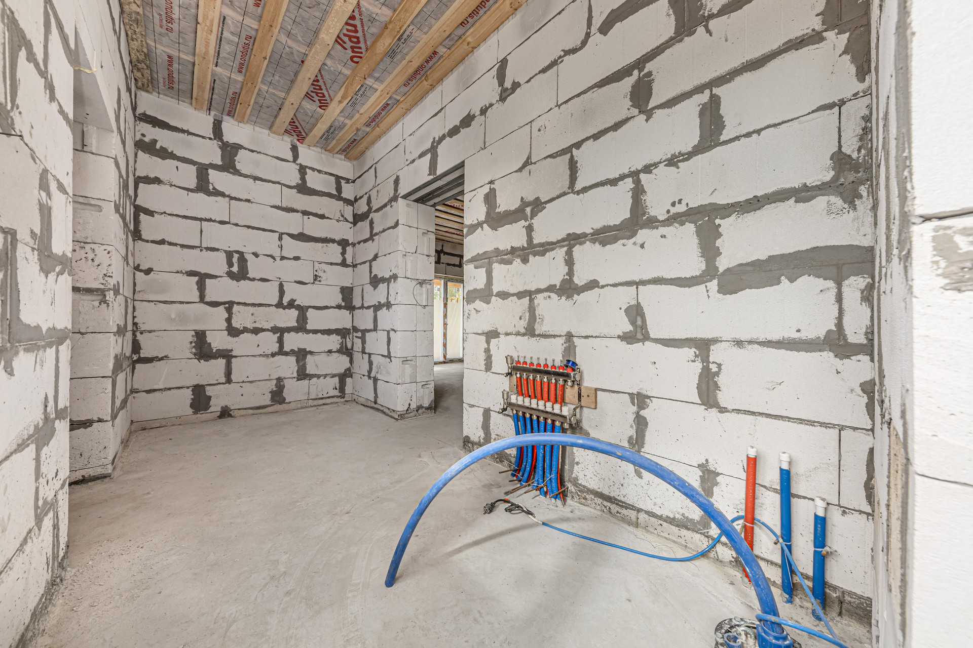 * Отопление: Тёплый пол в кухне-гостиной. Труба из сшитого полиэтилена РЕХ диаметром 16 х 2,0 мм уложена с шагом 15 см.
