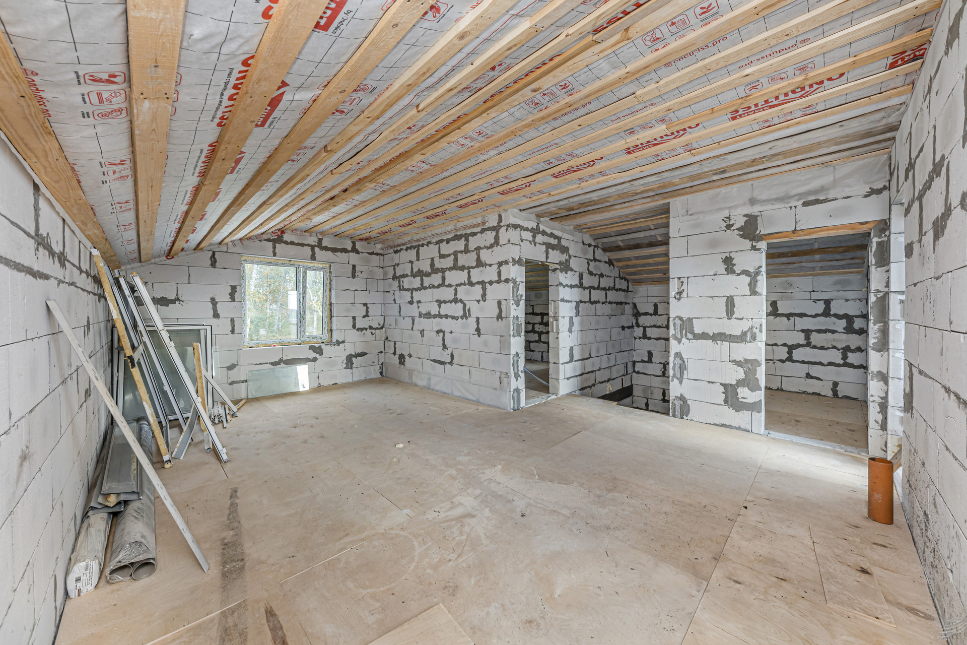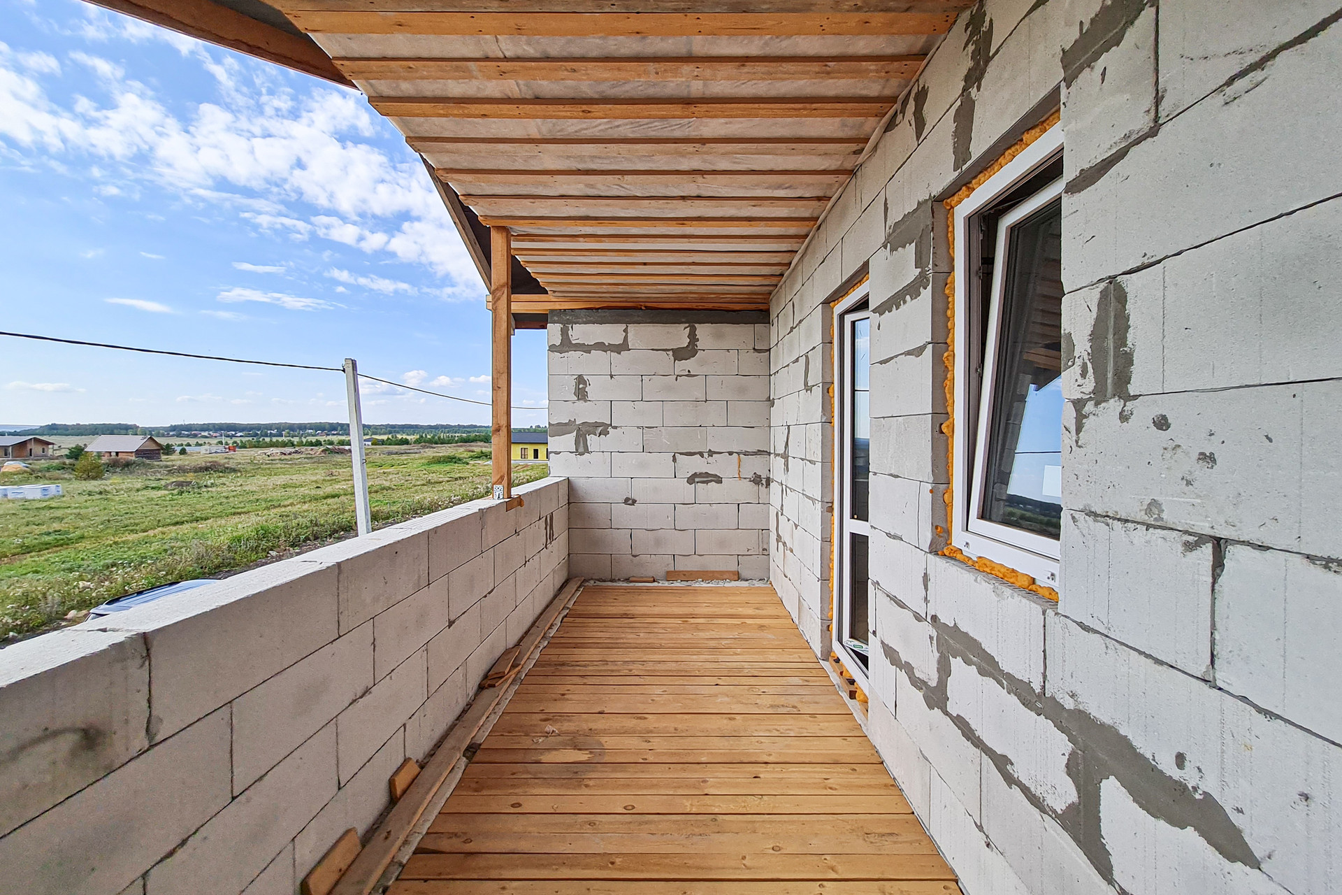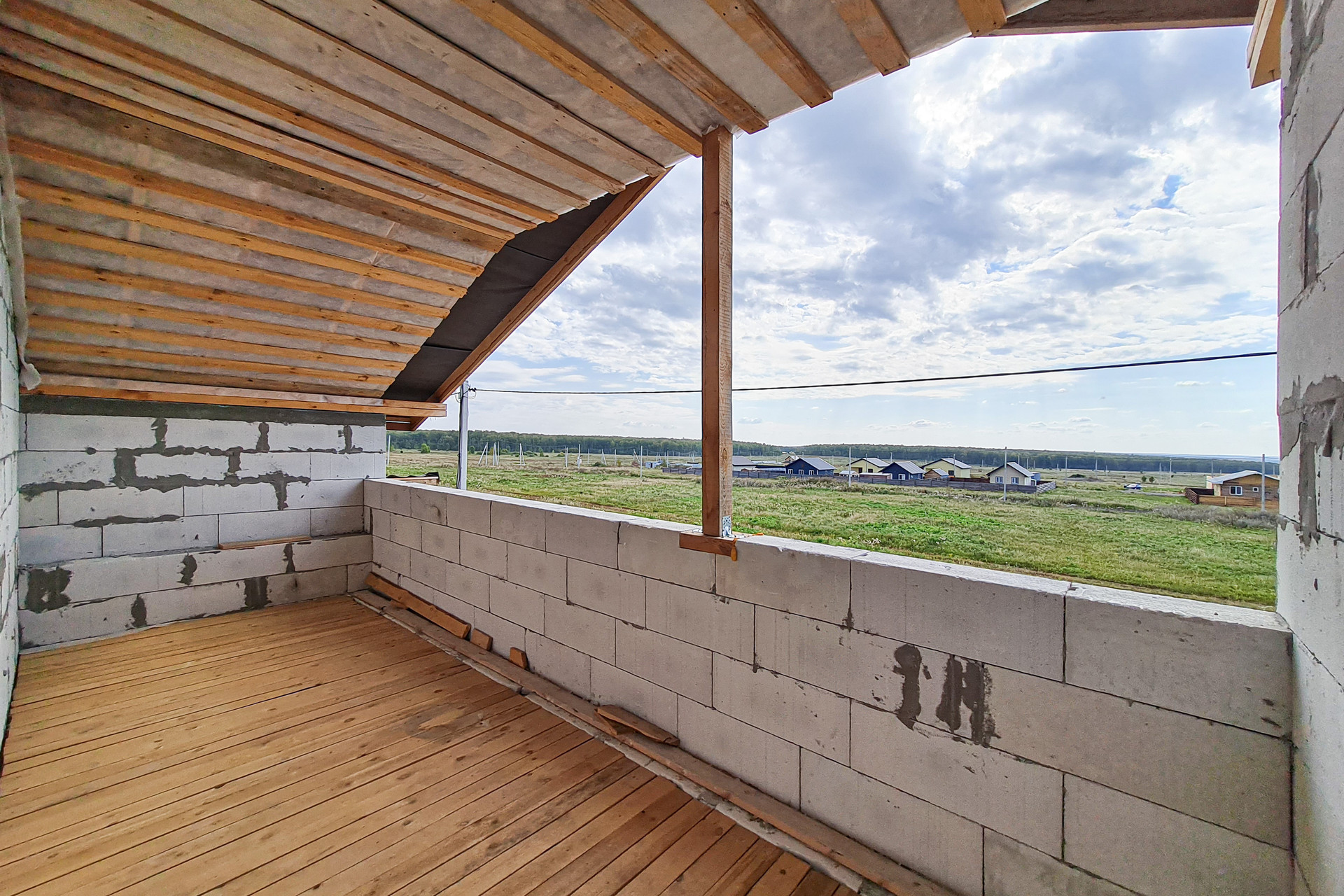 На втором этаже расположены две спальни, место для большой гардеробной, санузел и большая широкая лоджия.