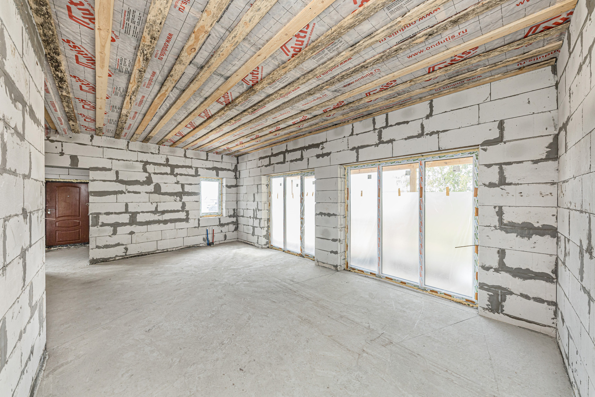 Окна в доме мультифункциональные с наружной ламинацией. Производитель стеклопакета — Воронежский Оконный Завод. Профиль премиум-класса Dесеuninck имеет толщину 76 мм и три контура уплотнения. Стеклопакет двухкамерный, толщиной 42 мм, с заполнением аргоном. Энергоэффективное напыление из серебра и других цветных металлов обеспечивает высокую тепло- и звукоизоляцию. Фурнитура — Roto с тремя противовзломными прижимами.
