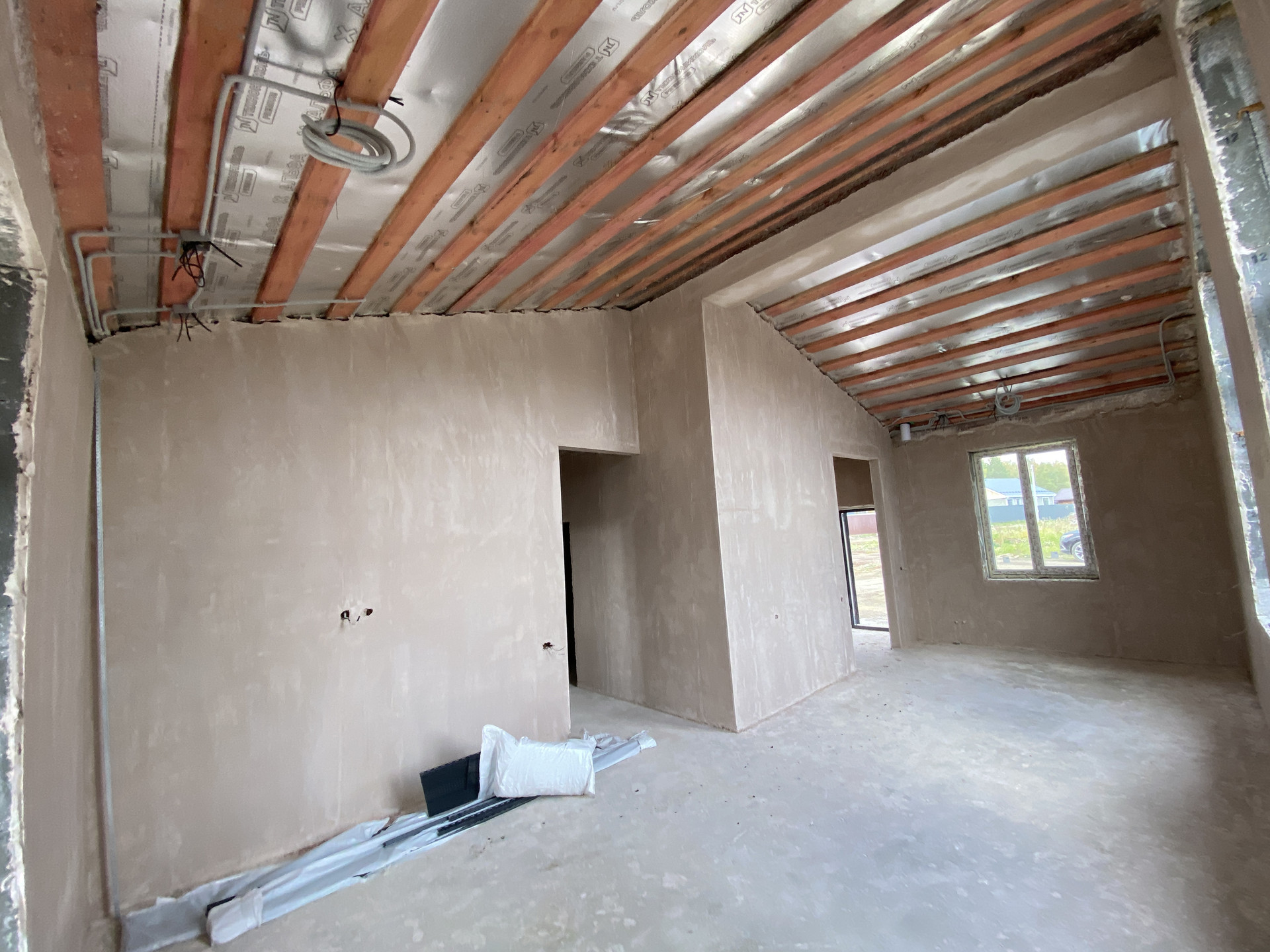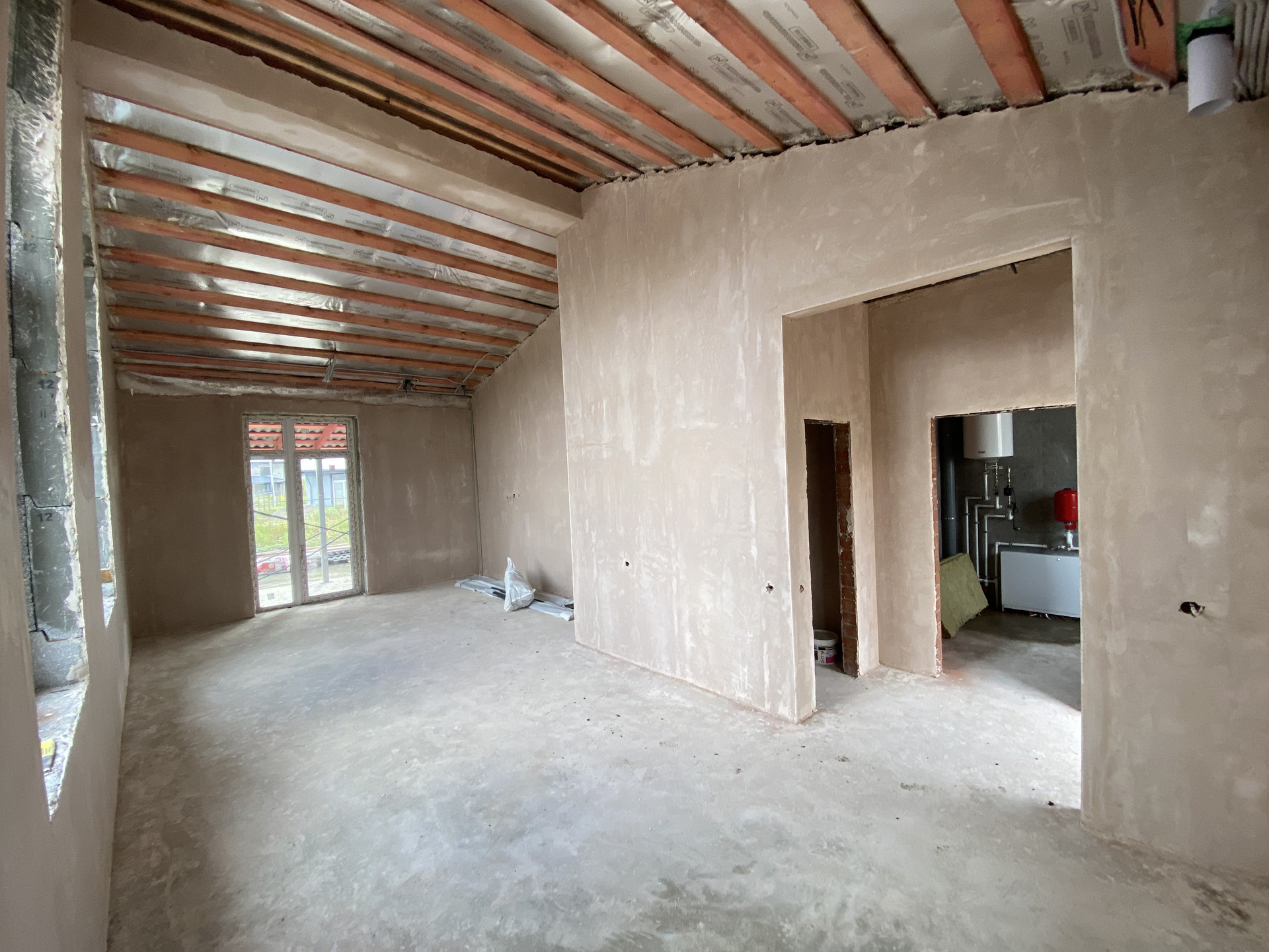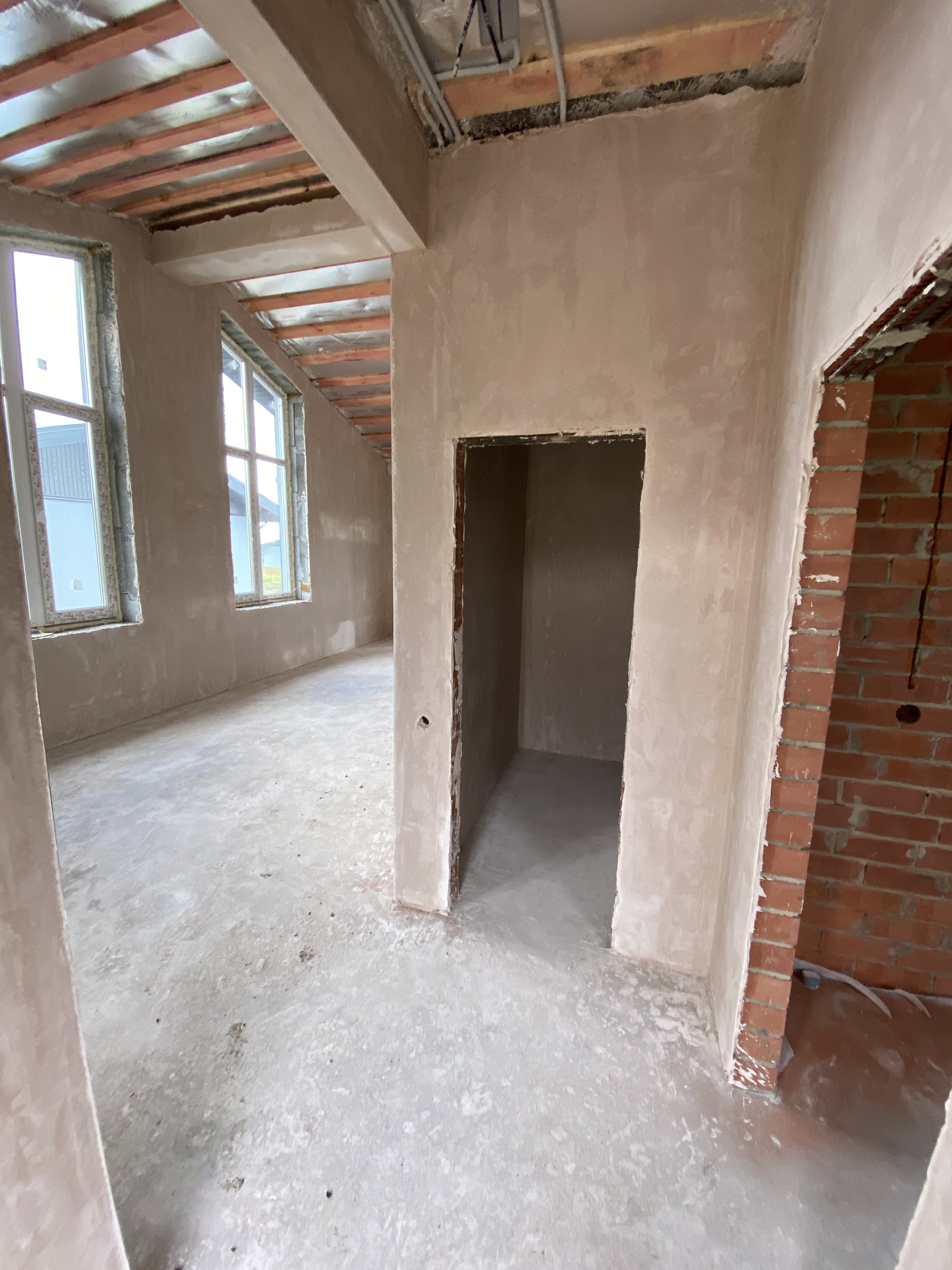 Данный дом по указанной цене предлагается в предчистовой отделке, выполнены все грязные этапы работ: электрическое водяное отопление (установлен индивидуальный настенный эл.котел отопления с разводкой  тёплых полов по всему дому с регулировкой по контурам, бойлер для нагрева воды); разводка проводки под освещение, розетки и TV, по помещениям (согласно проекта); глубинный насос с подводкой воды к мокрым точкам (все выводы под водоснабжения и канализацию); стены оштукатурены по маякам с армирующей сеткой (под оклейку обоев); предчистовая финишная полусухая стяжка пола (готова под укладку напольного покрытия).