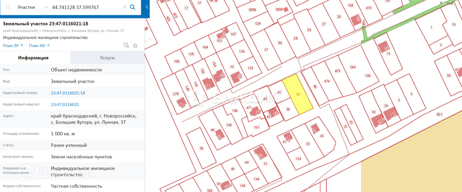 ● Кадастровый номер – 23:47:0116021:18
