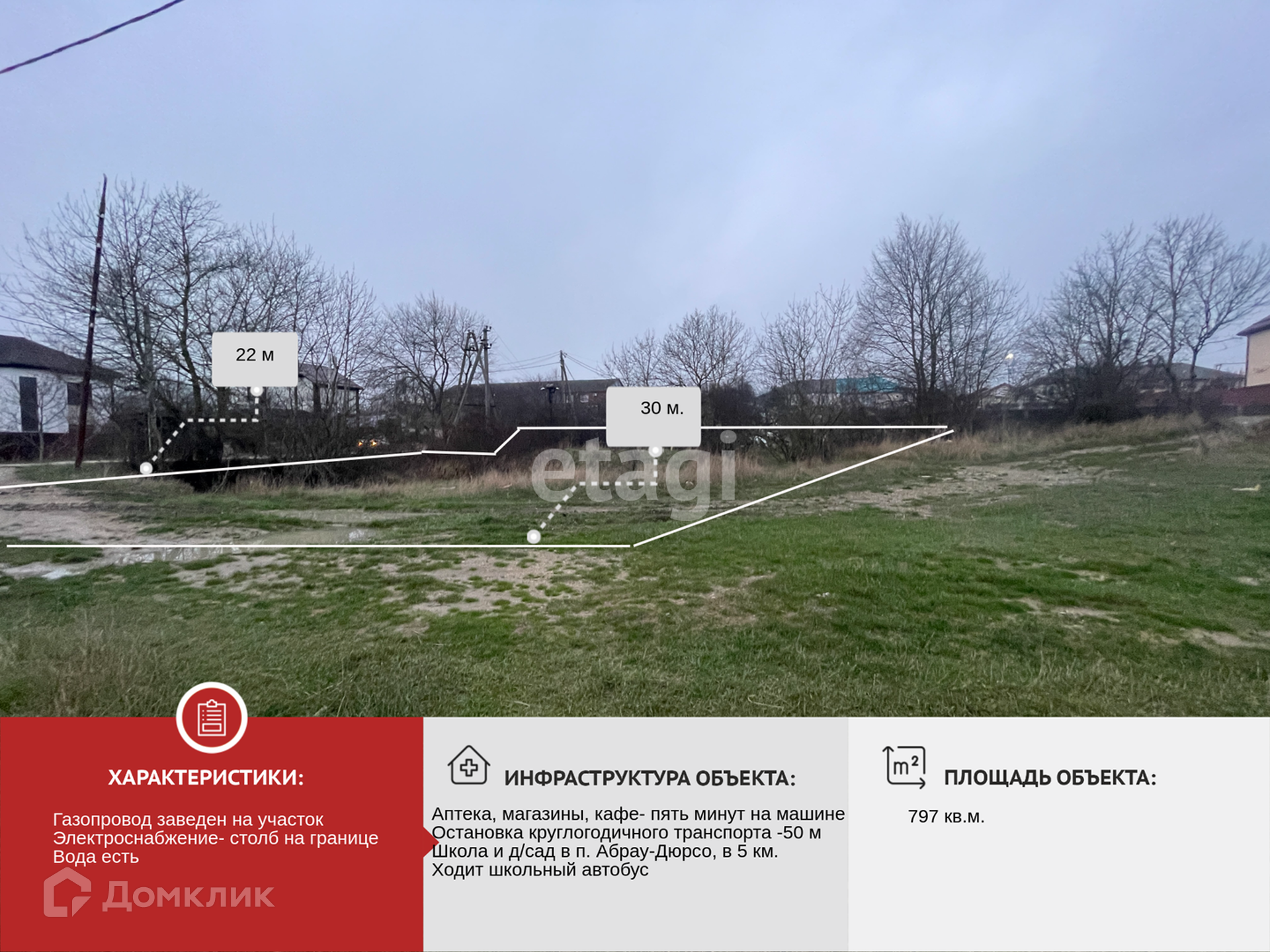 Газоснабжение и электроснабжение, по границе участка.