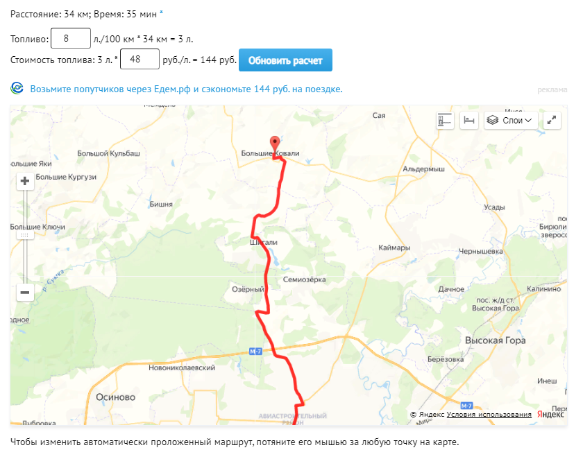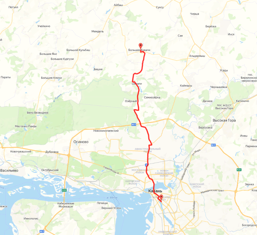 Расстояние Казань Большие Ковали на машине