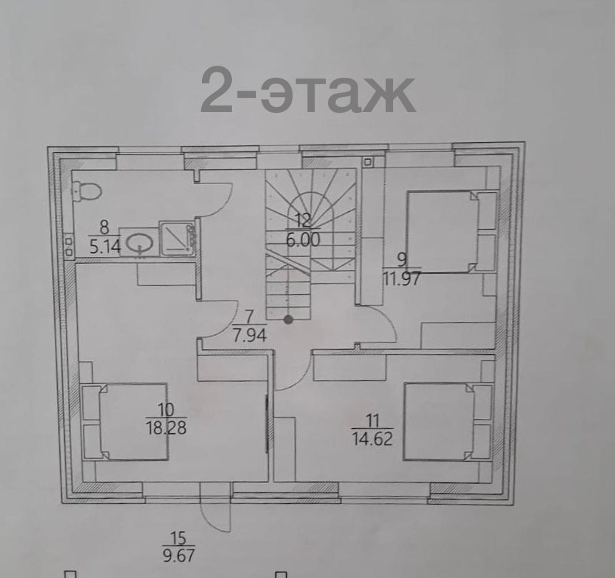 На втором этаже расположены: холл, ванная комната, три спальни-18/14,6/12 кв.м.