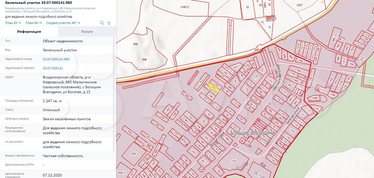 Участок под ИЖС, 12.52 сот. на продажу в селе Большие Всегодичи, Центральная улица