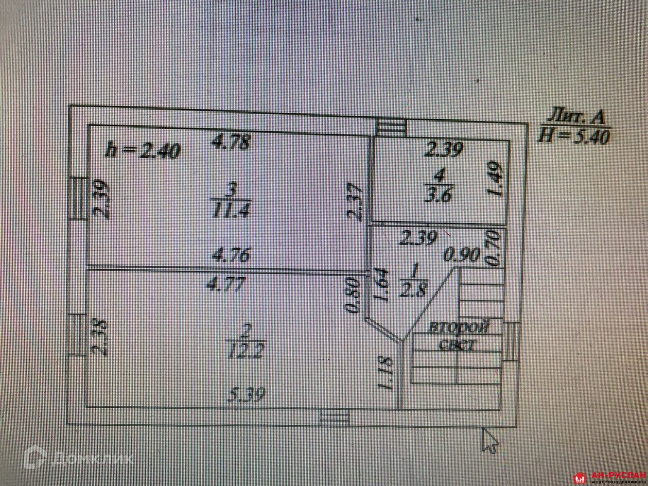 2 спальни (размеры см. фото с техпаспорта), сан.узел с душевой кабиной, вместительная кладовка для хранения вещей - расположенные на 1,2-м этаже.