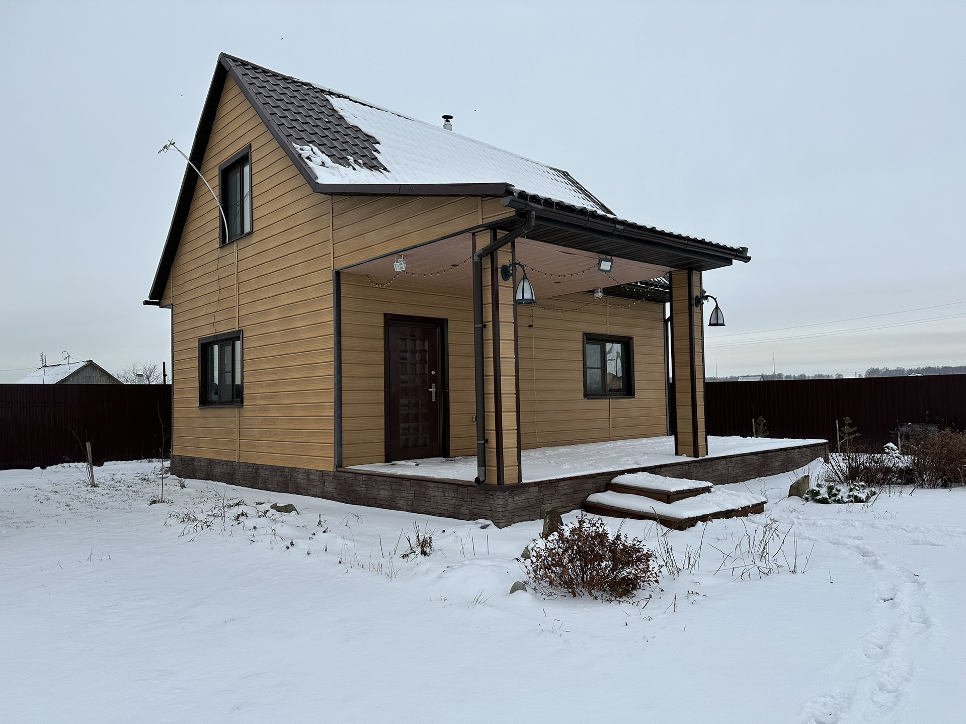 Продам дом с баней, рассчитанный на круглогодичное проживание, на участке 22 сотки. На первом этаже кухня-гостиная, баня, комната и санузел. На втором этаже жилая зона с возможностью выделения на две отдельные комнаты. Терраса 25 м2. Вода и канализация подведены в дом. На участке скважина с кессоном и септик. Инженерные коммуникации строились с расчетом на большой дом. Туалет в доме и на улице. Газ проведен до участка. На участке растут сливы, абрикосы, яблони, груши, малина, жимолость, вишня, теплица 6*3 метра, посажены сосны. На территории участка выведены две летние колонки для полива. Парковка на 5 машин. Есть место для постройки основного дома и создания костровой зоны. В поселке есть детский сад, школа и магазины, маршрутка из города до поселка, карьер для купания, лес и красивая природа. На машине до города 20 минут.
