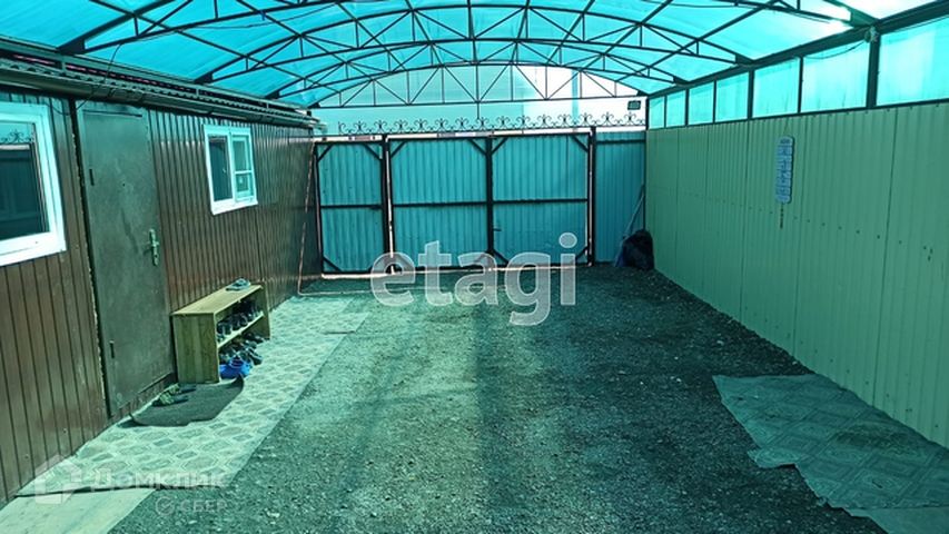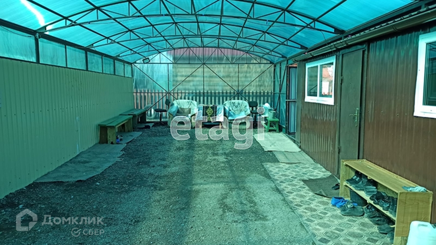 Участок занимает площадь 18,37 соток. Территория огорожена профлистами, так же пресутствует деревянные ограждения. Построен навес под машины, покрыт поликорбанатом. Баня, в которую проведено водоснабжение, курятник, дровеник, теплица.