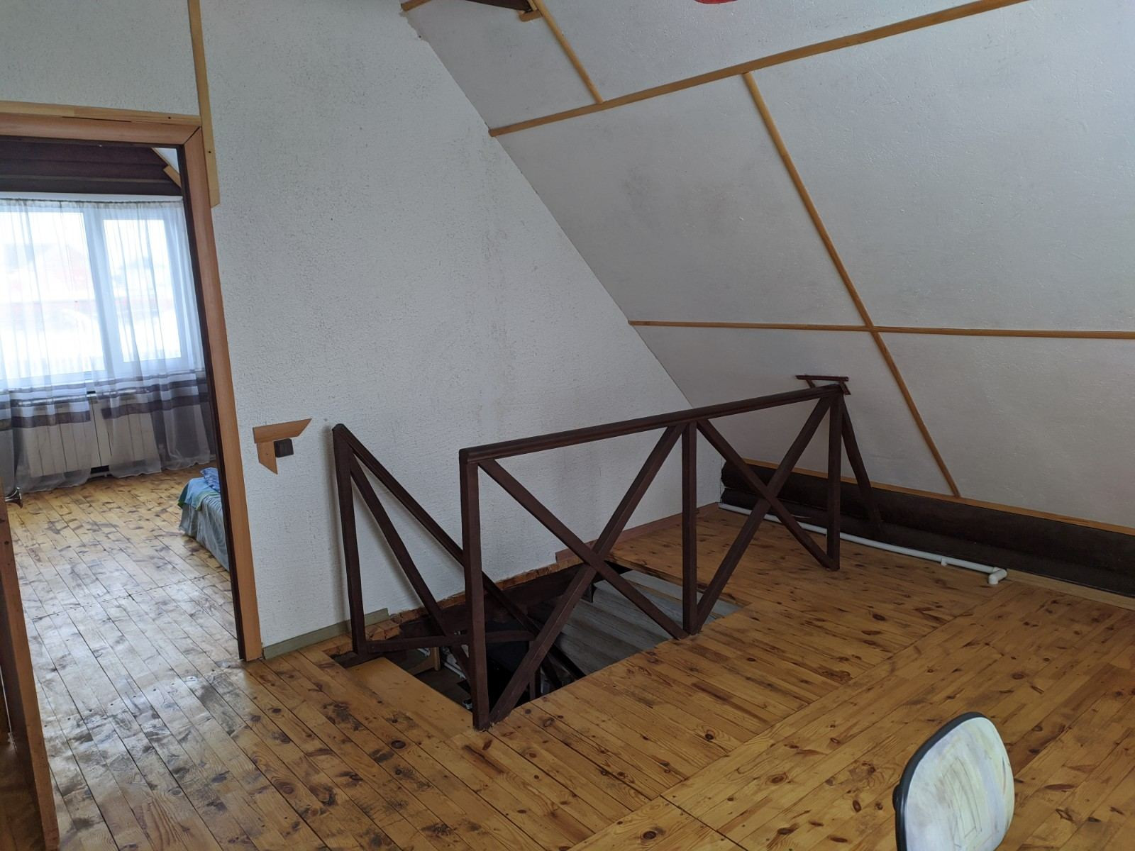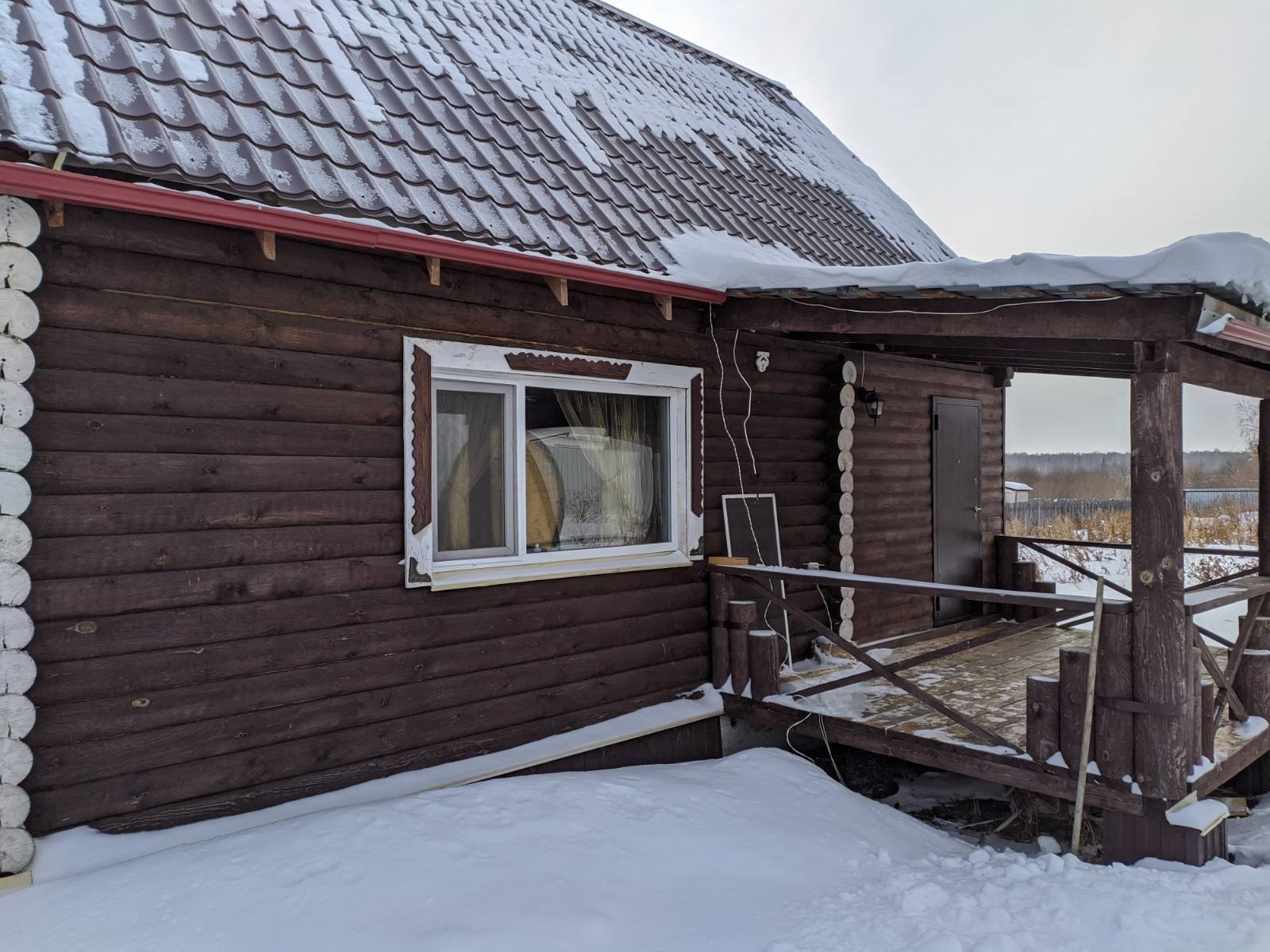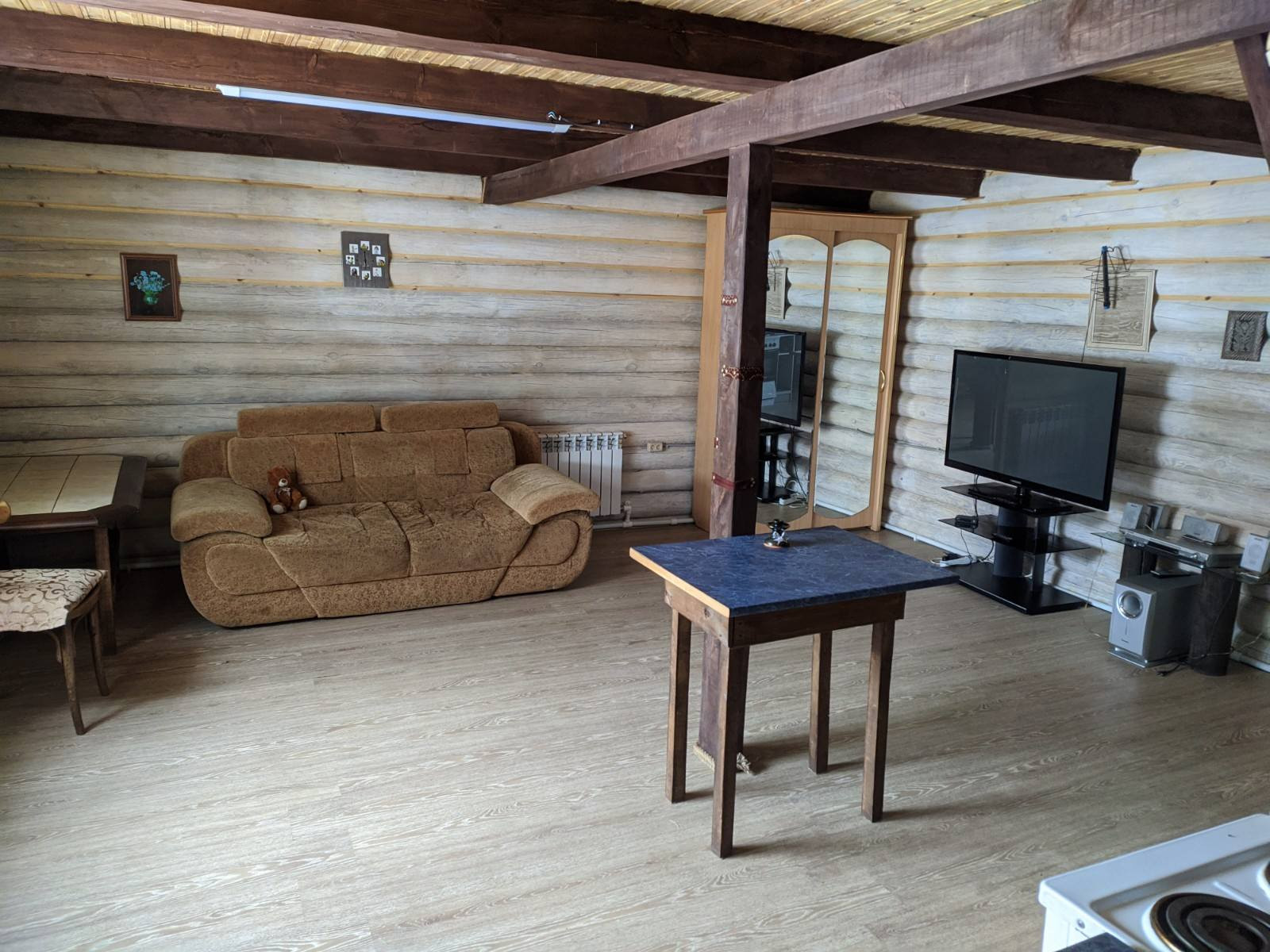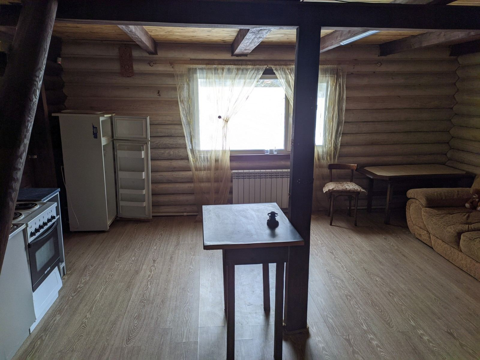 Продается благоустроенный двухэтажный дом из оцилиндрованного бревна. Две спальни и большая кухня-гостинная. Хорошее месторасположение.