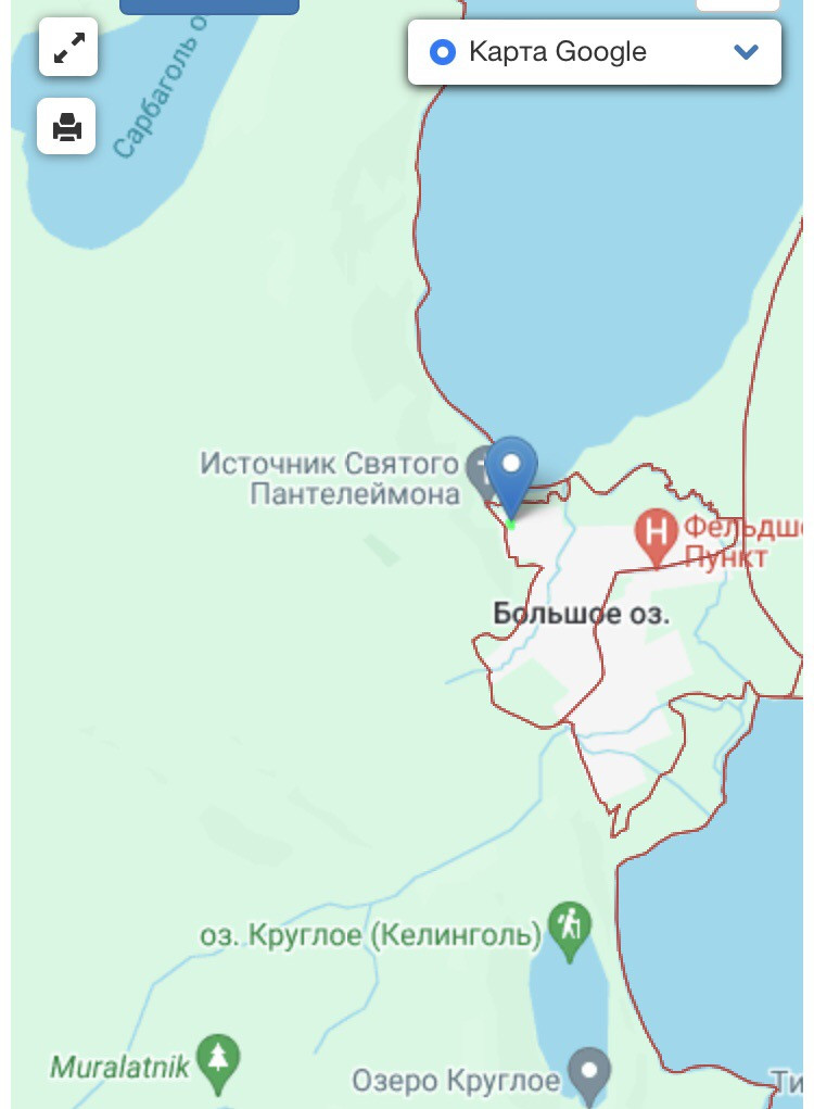 расположен в центре туристического маршрута озер Круглое, Сарбаголь, Большое, Малое рядом с Источником Святого Пантелеймона.
