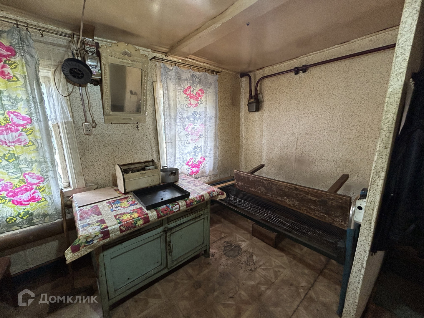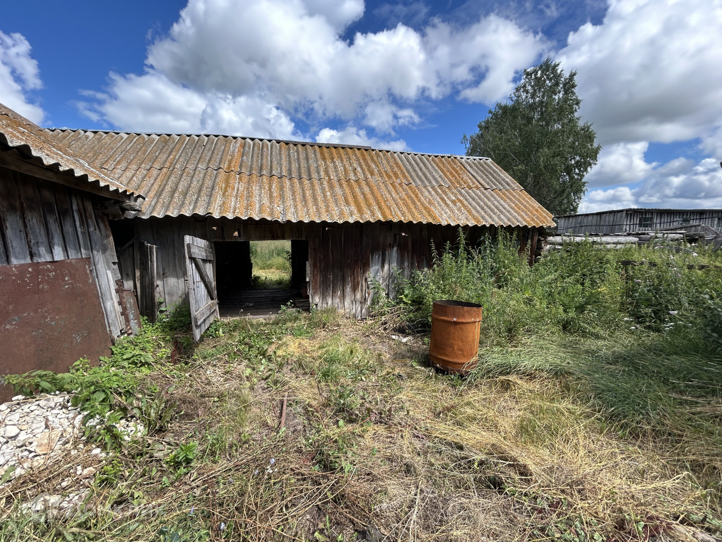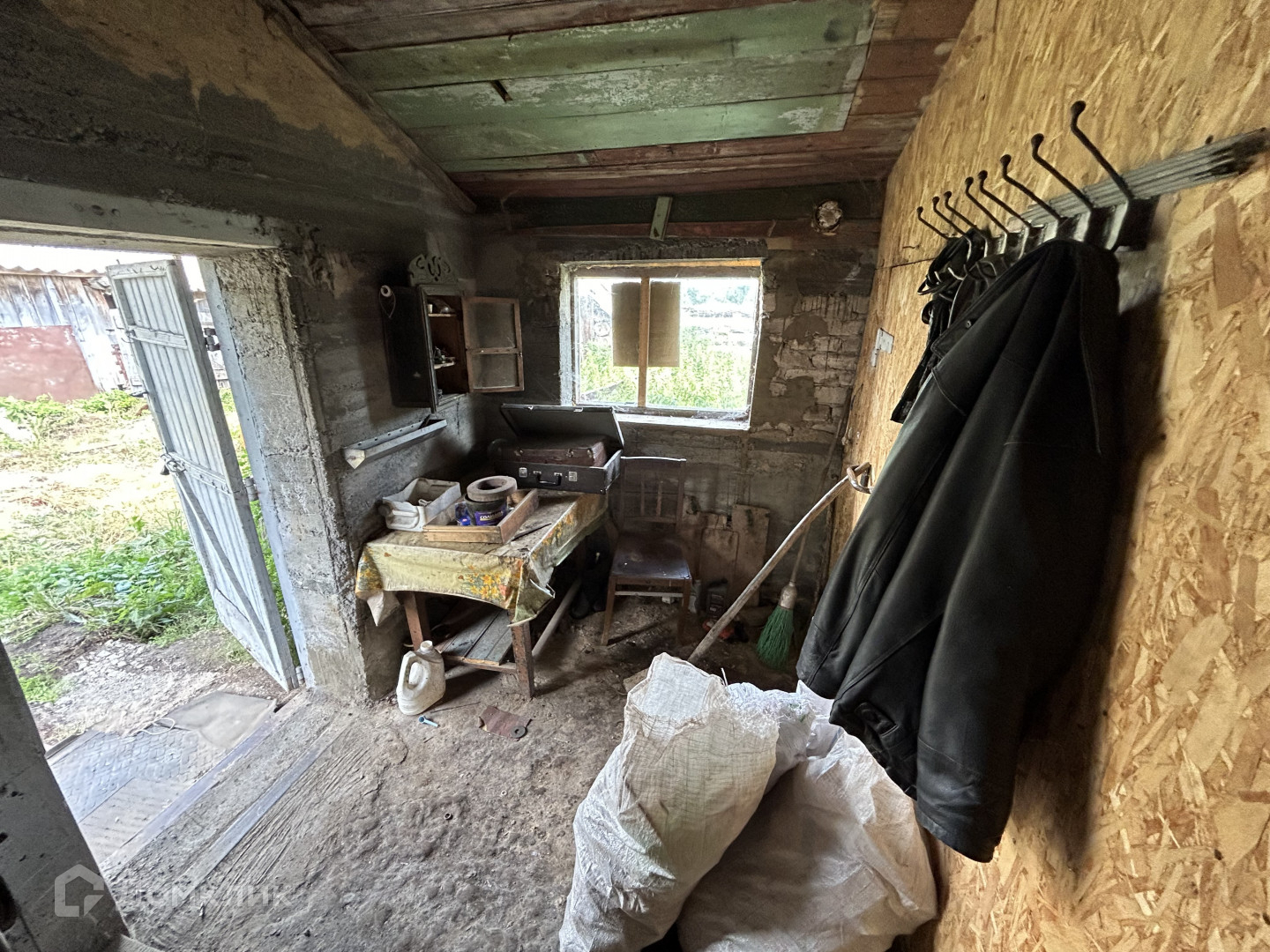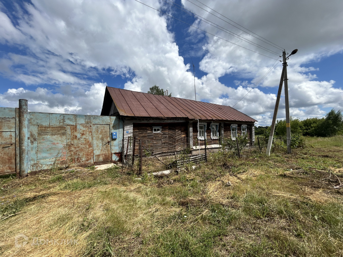 Дом площадью 43 квадратных метра оснащен всеми необходимыми коммуникациями: газом, светом и водопроводом. Также в комплекте имеется баня для приятного времяпрепровождения. На участке также расположены строение для содержания скота и гараж, что делает это место идеальным для любителей загородной жизни.