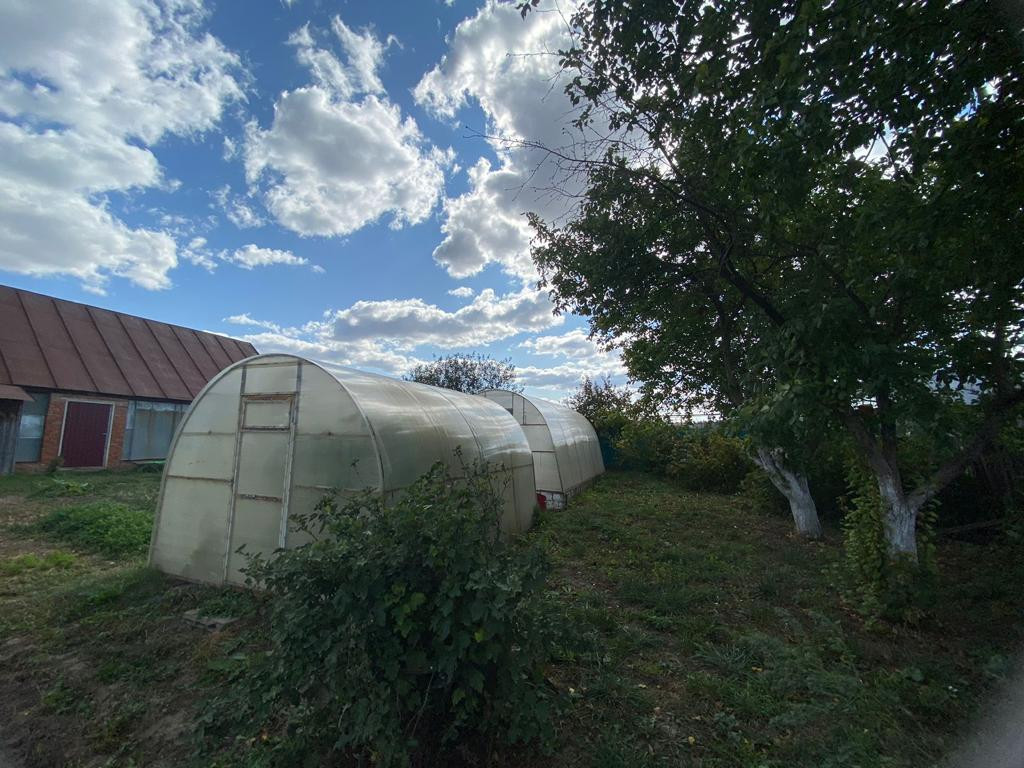 Участок ровной, правильной формы . На участке: гараж, беседка, хоз. постройки, установлены 2 теплицы, растут плодоносящие деревья.