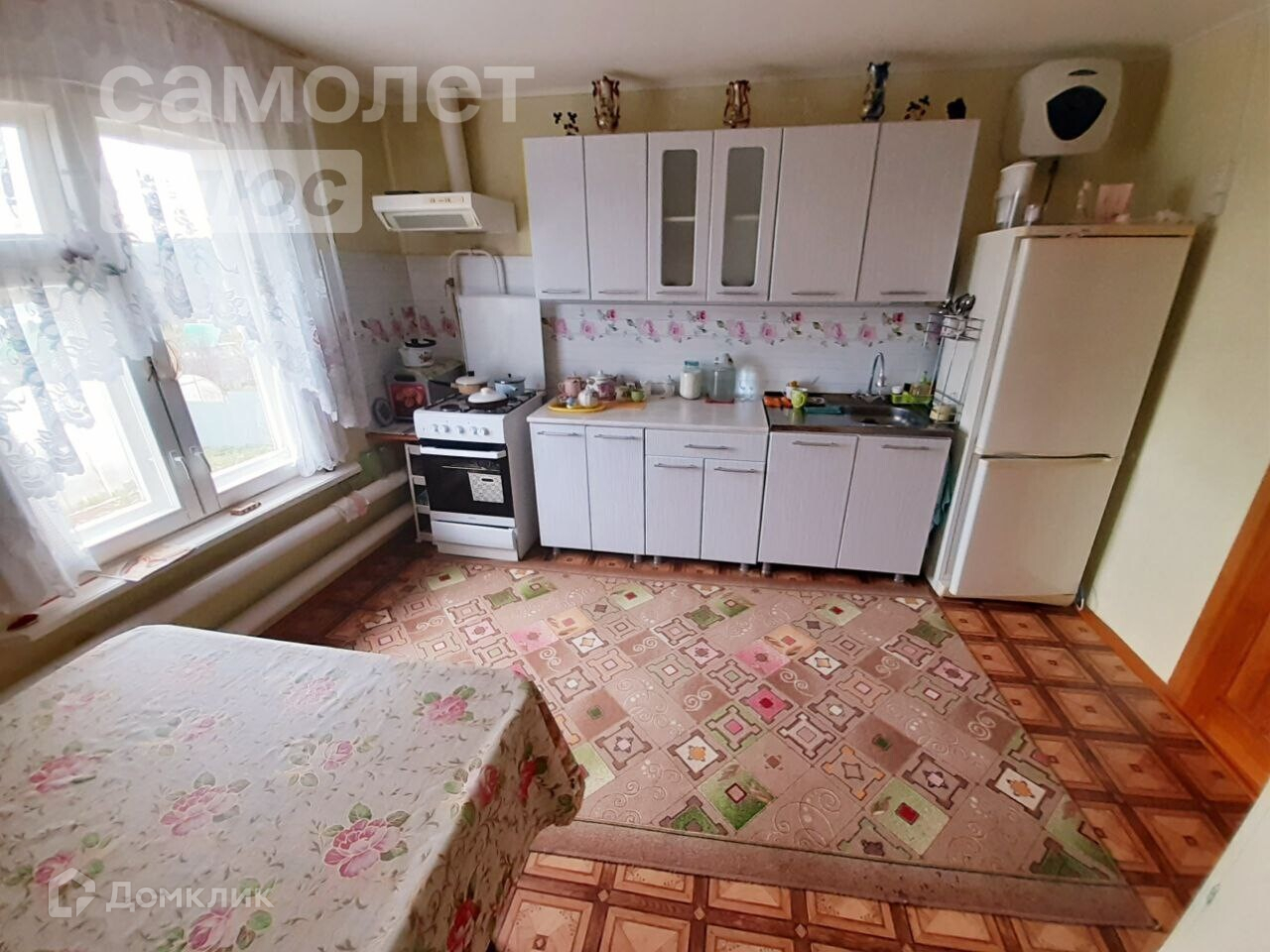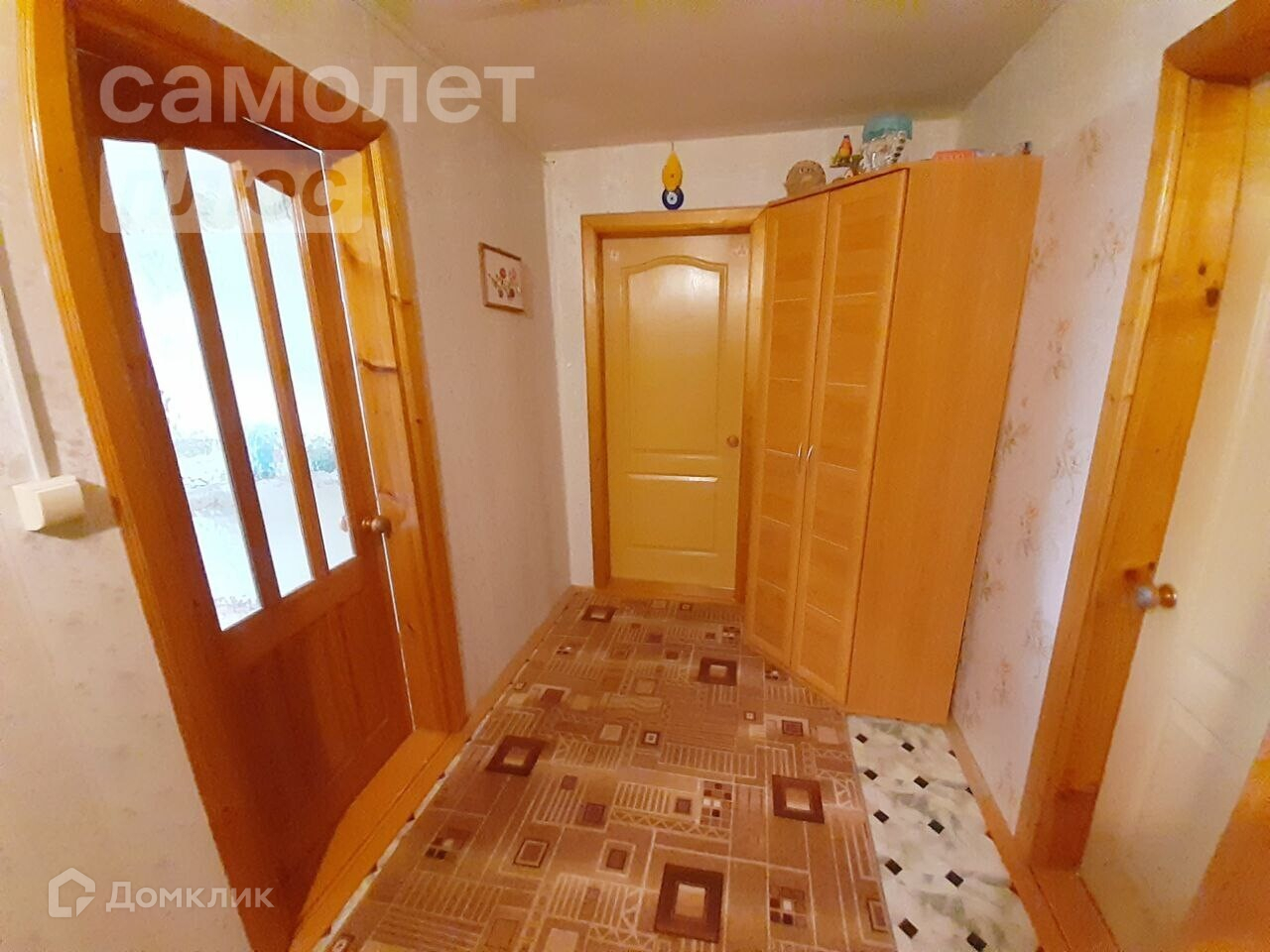 - На полу в кухне линолеум, в комнатах оргалит