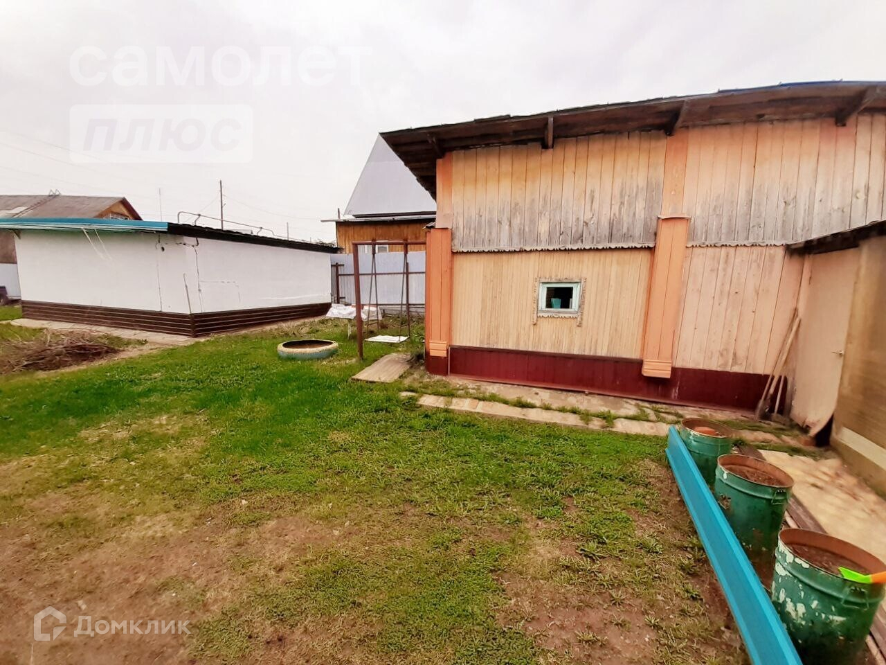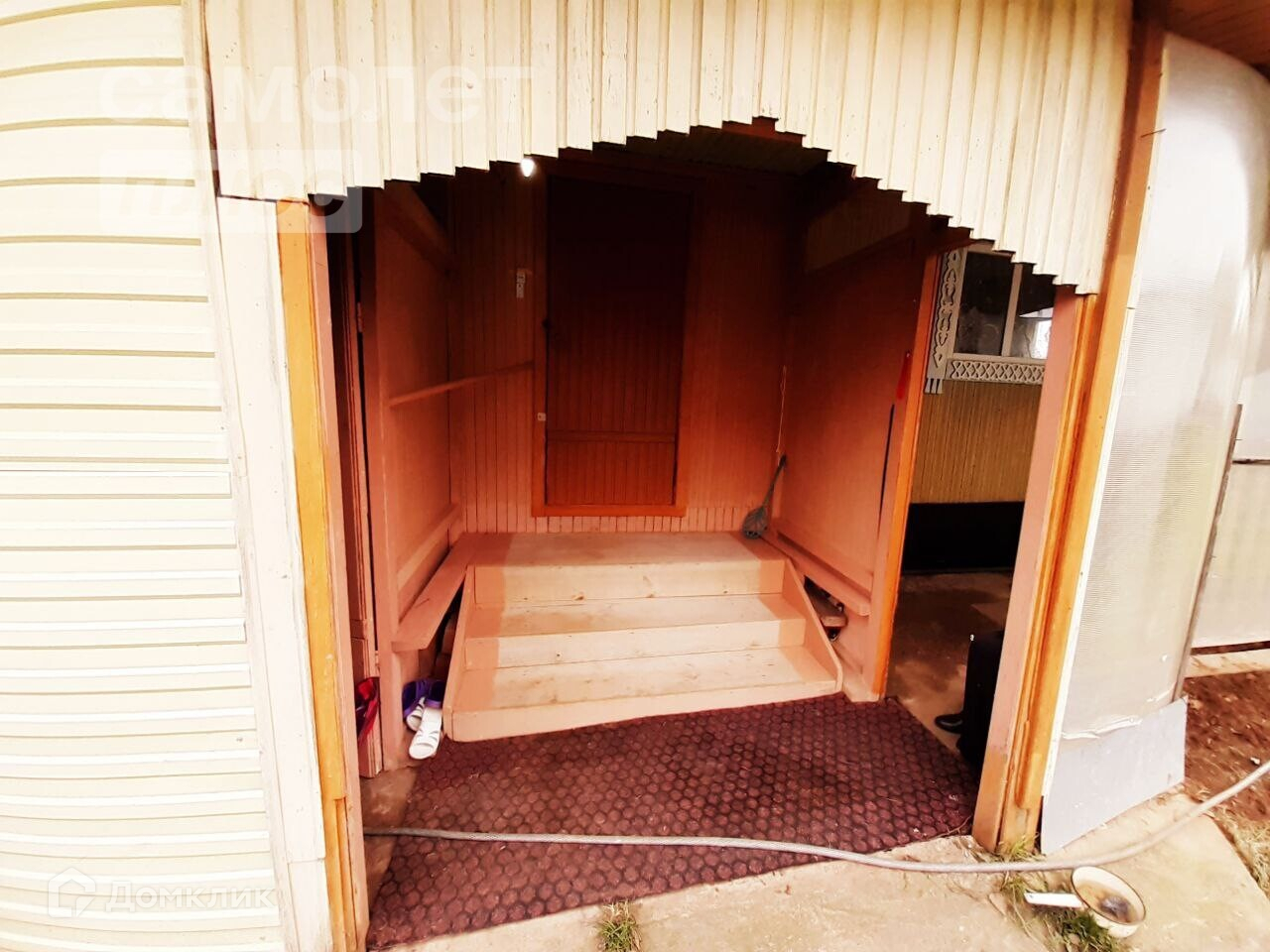 - Дом построен из бруса и обшит деревом и металлопрофилем